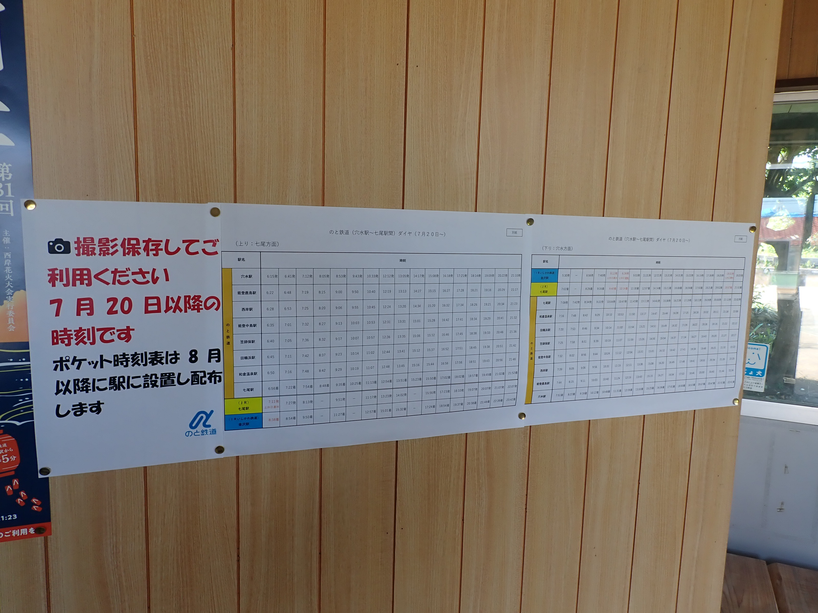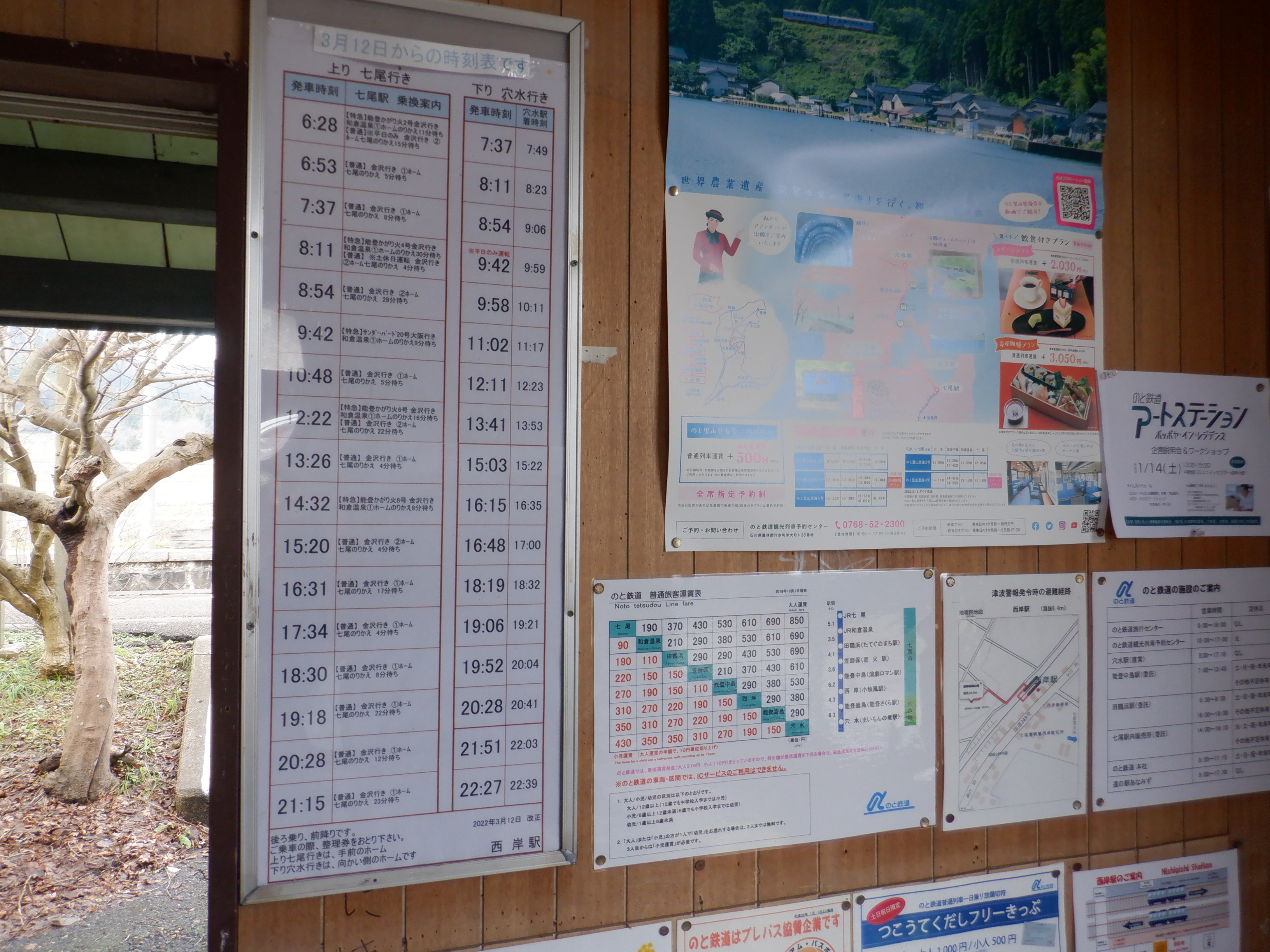 西岸駅の2023年・2024年の様子で、奇しくも能登半島地震前後の様子となってしまいました。2024年8月は震災直後ではなく、少し復旧してからの様子となります。