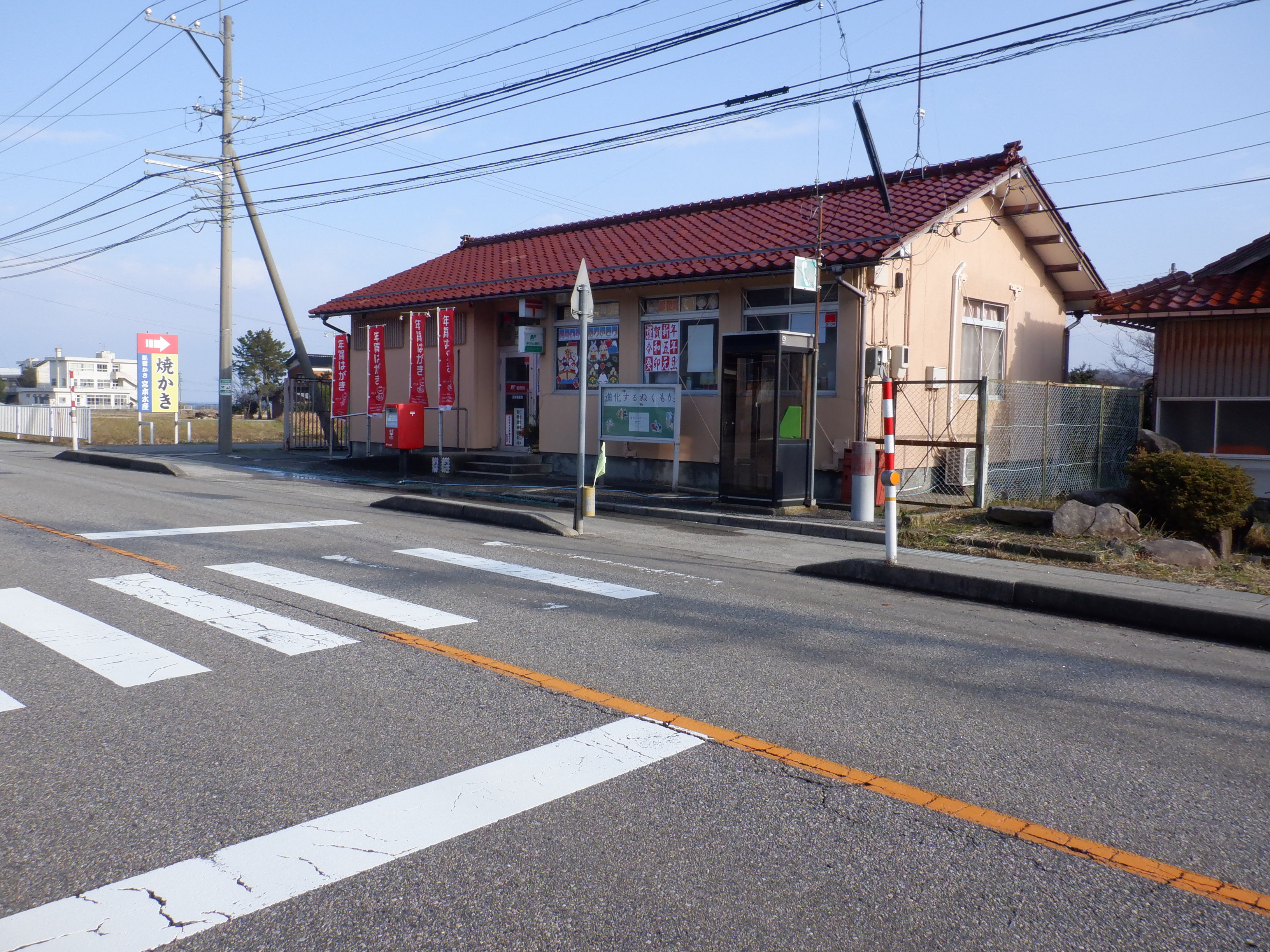 向かいにある西岸郵便局。一時閉鎖中です。
