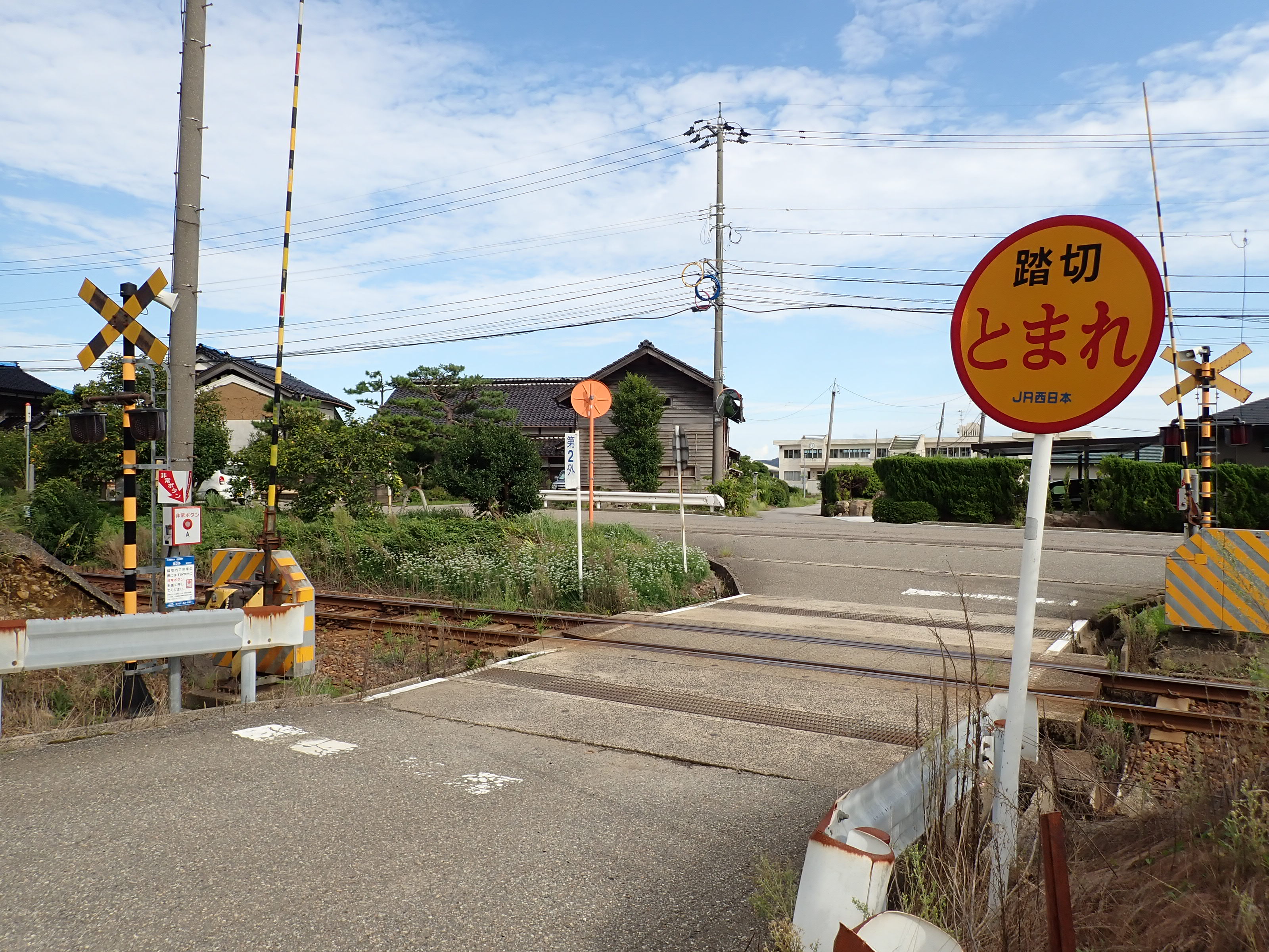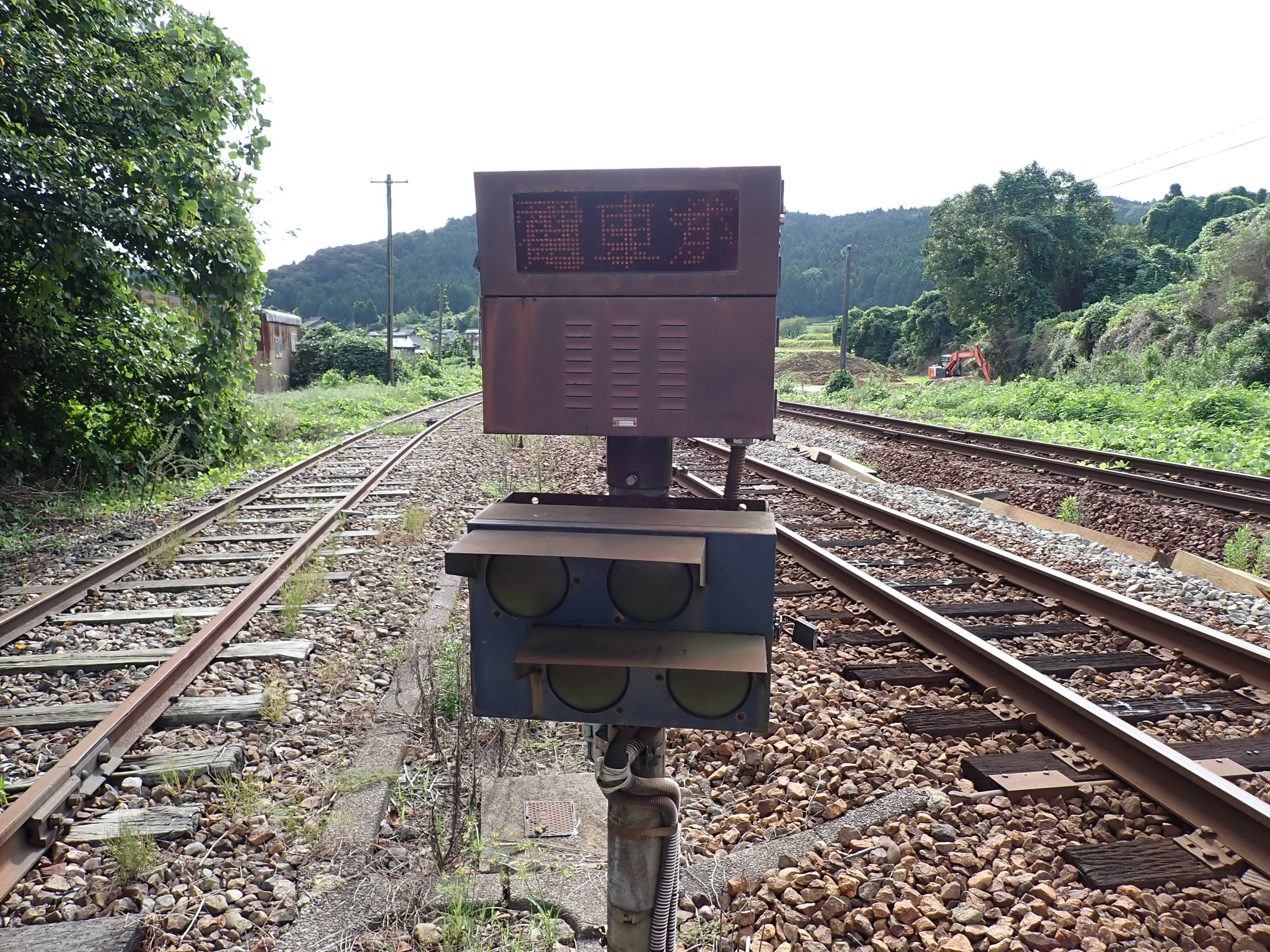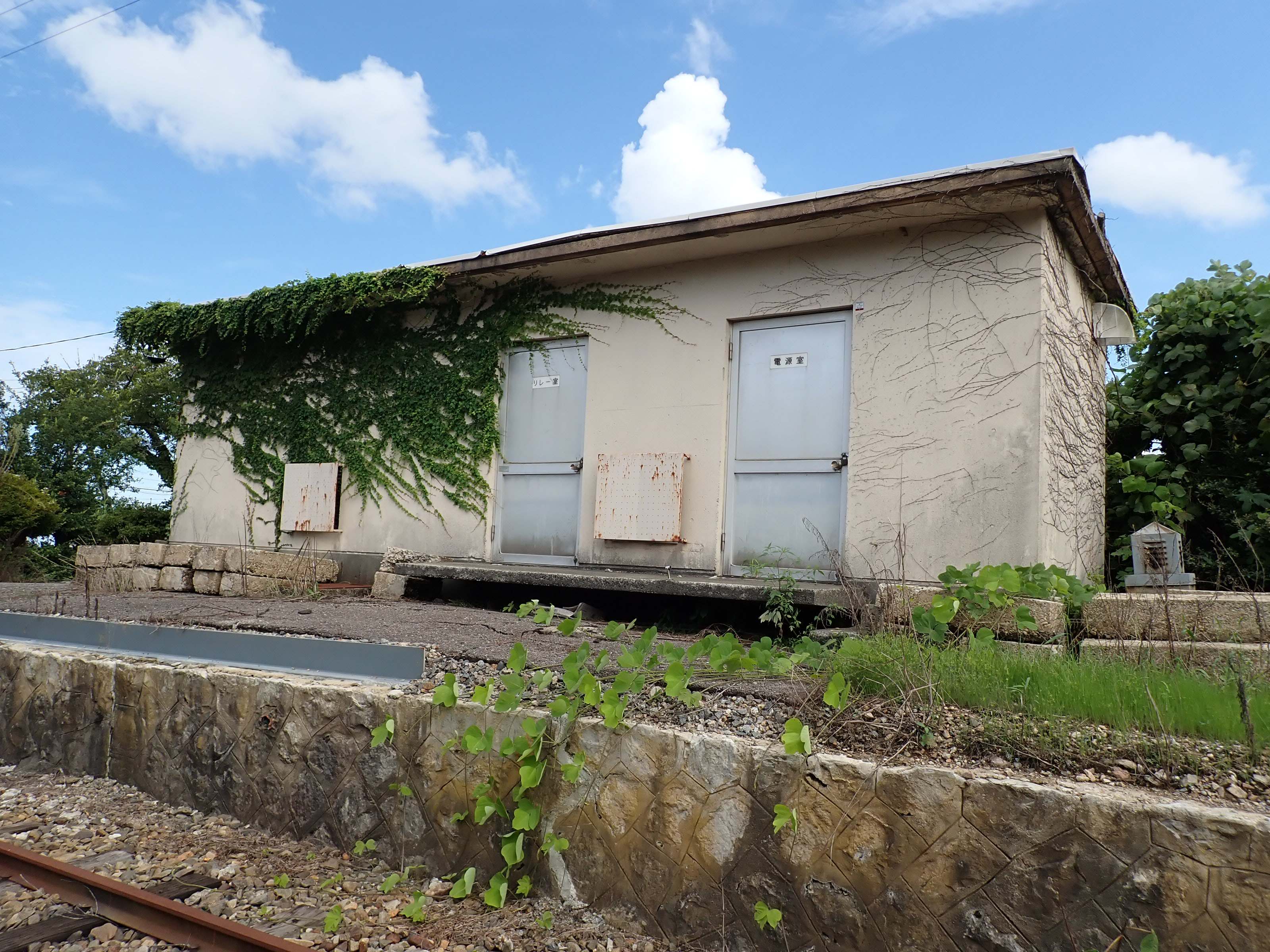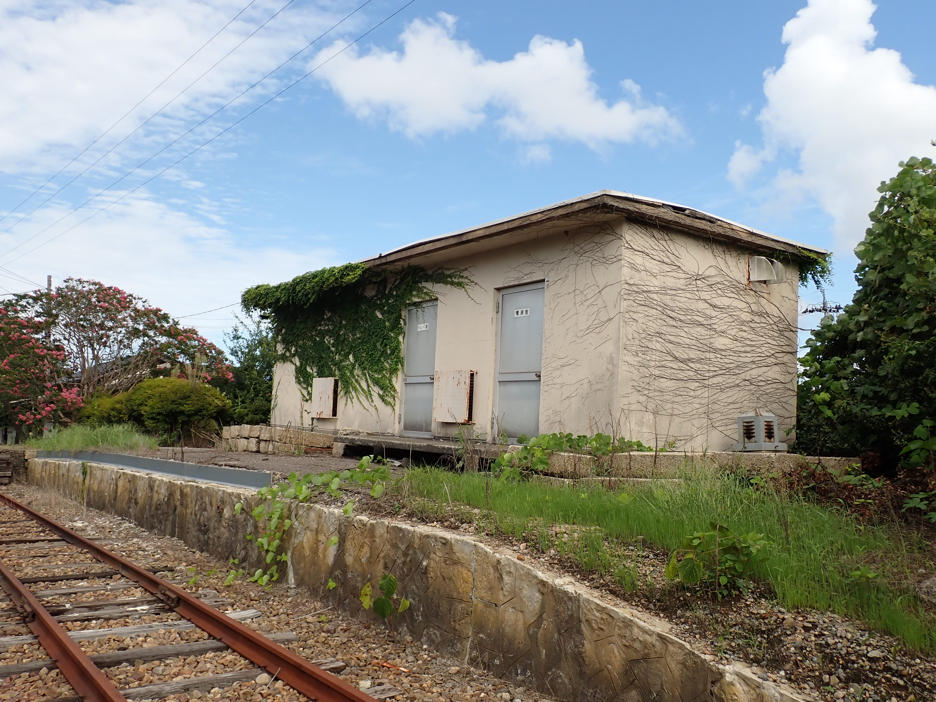 構内踏切の近くに設置されている信号継電器室。震災の影響からか少し斜めになっているような気がします。