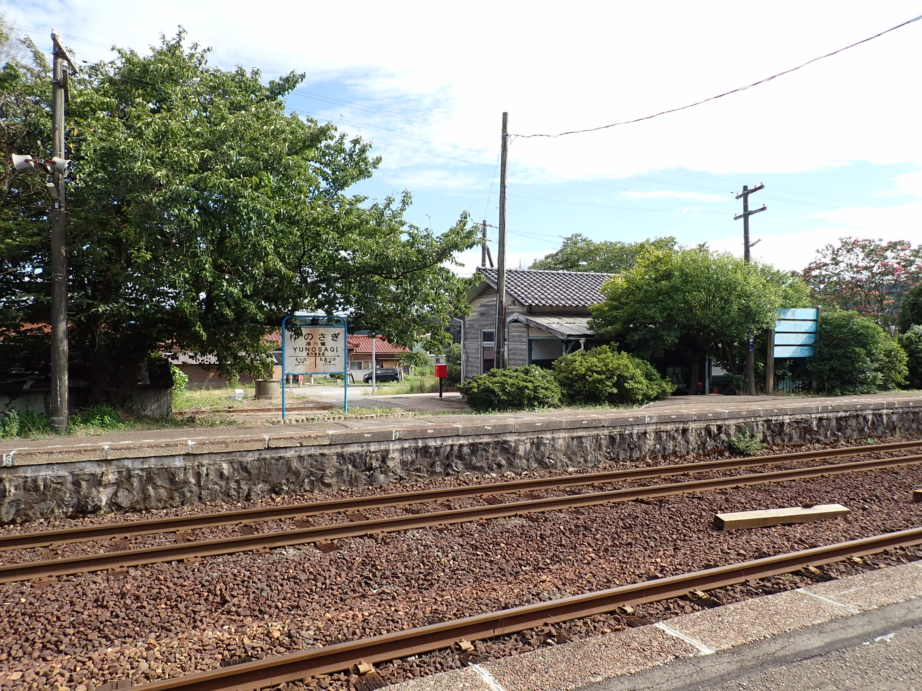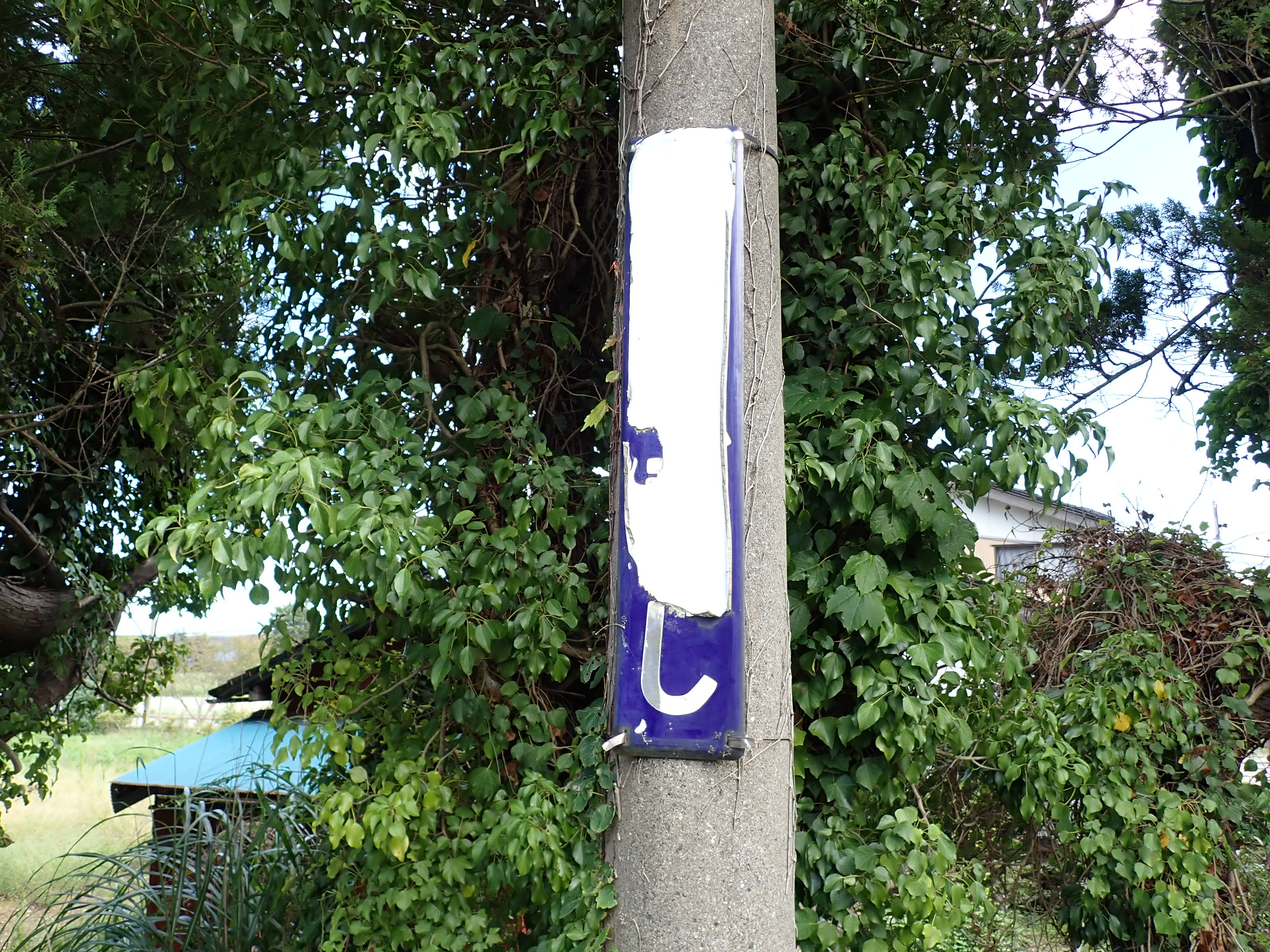 「ゆのさぎ」の縦型駅名標は、シールの部分が白くなり、一番下はすでに元の「し」になっています。