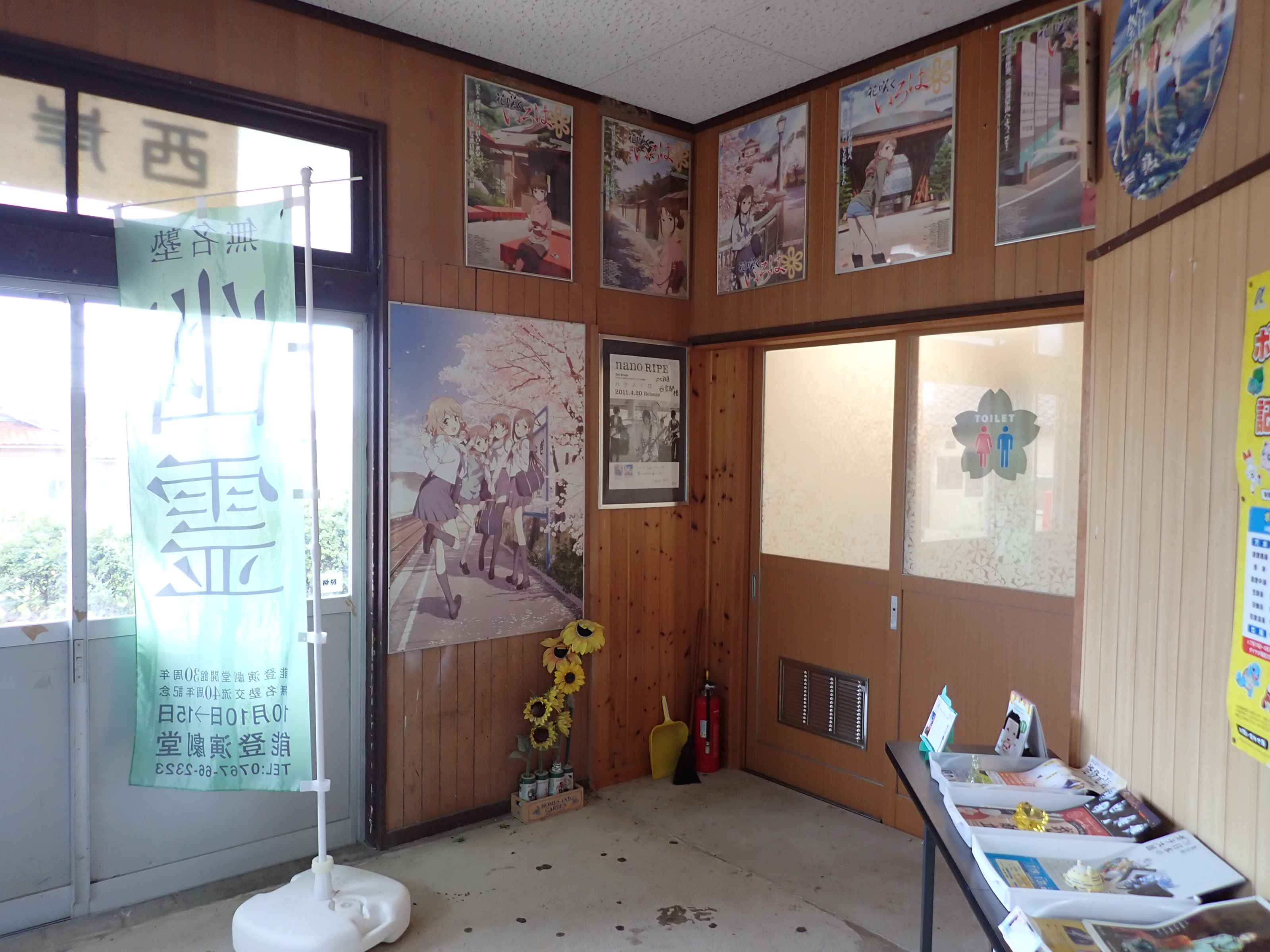 駅舎のホーム側。駅名標は元のところに戻っていませんが、右側に置かれています。