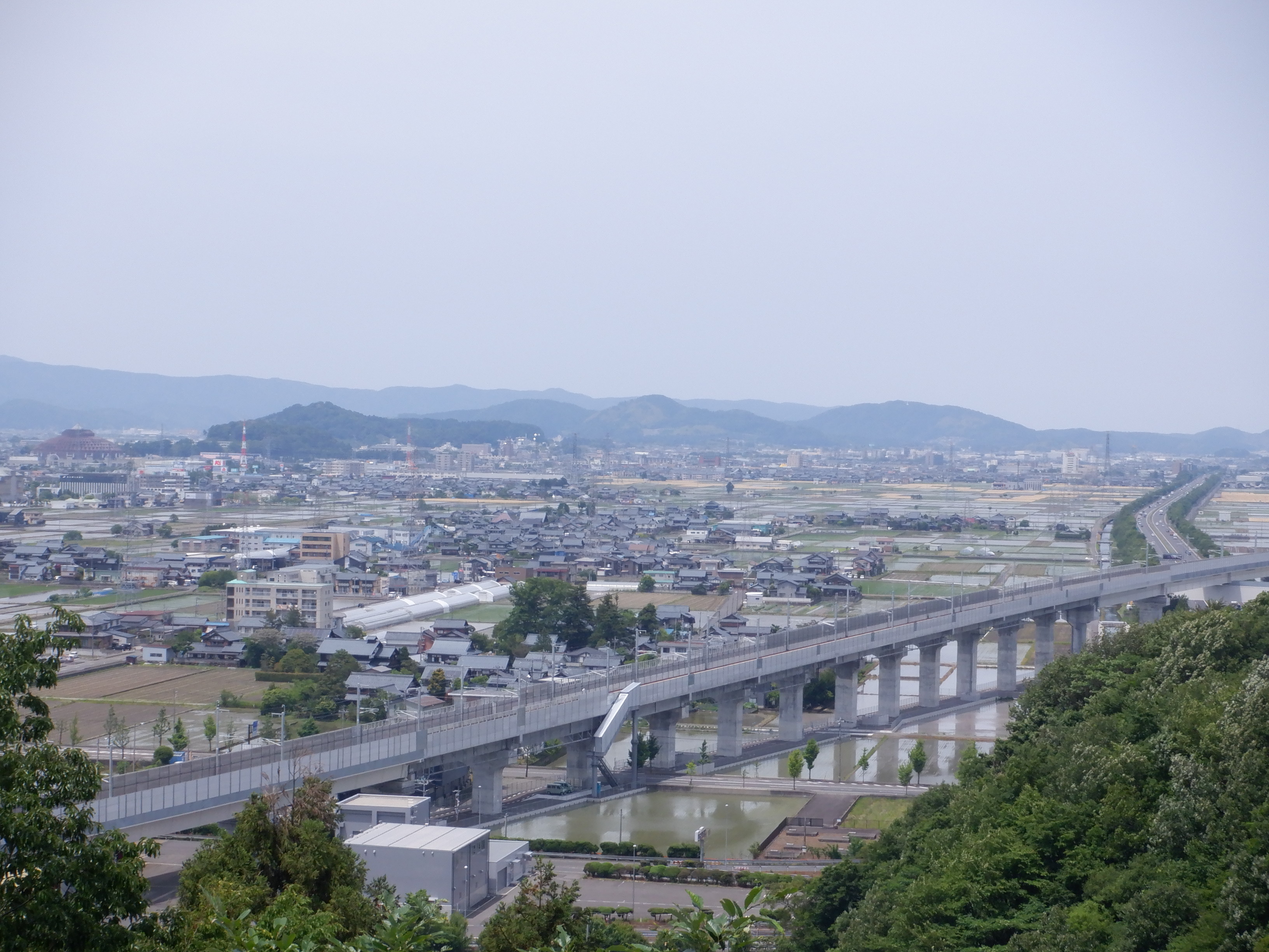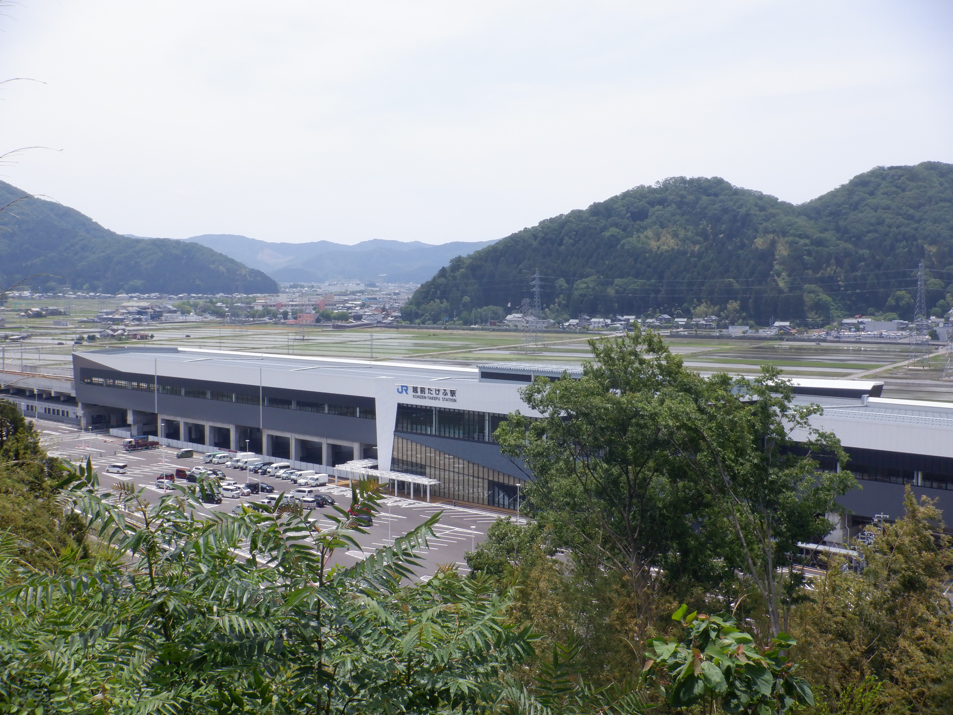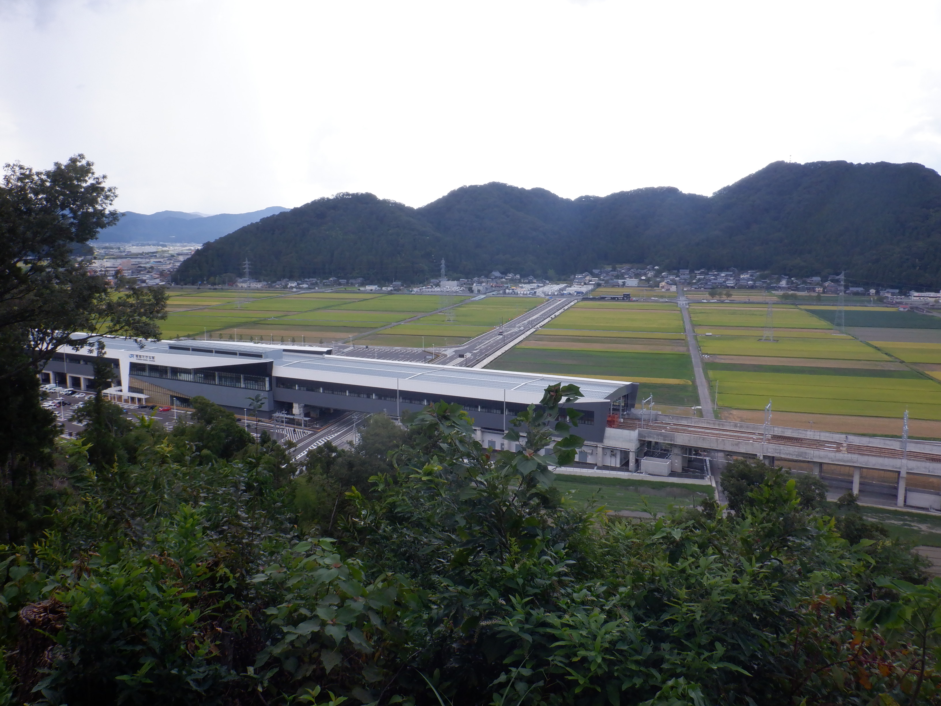 岩内山の展望台から見た越前たけふ駅とその周辺。