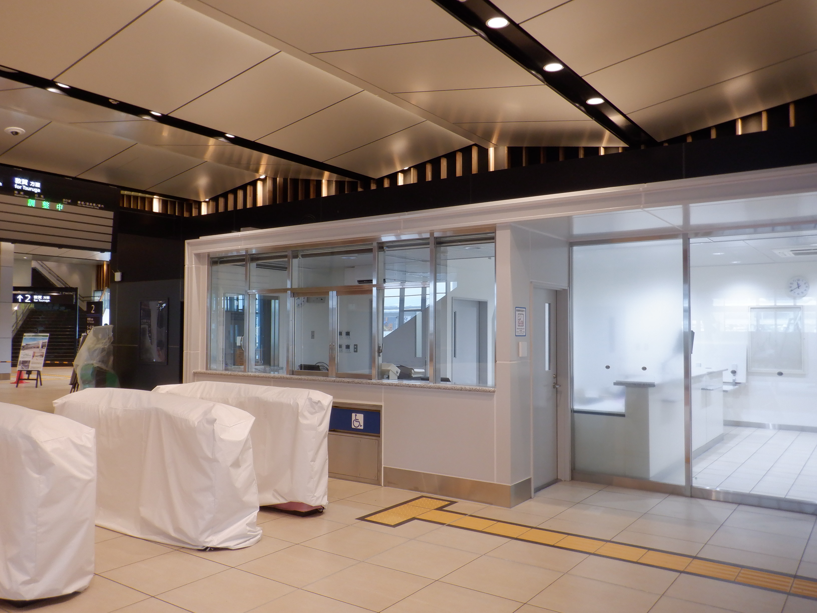 券売機と窓口の様子。