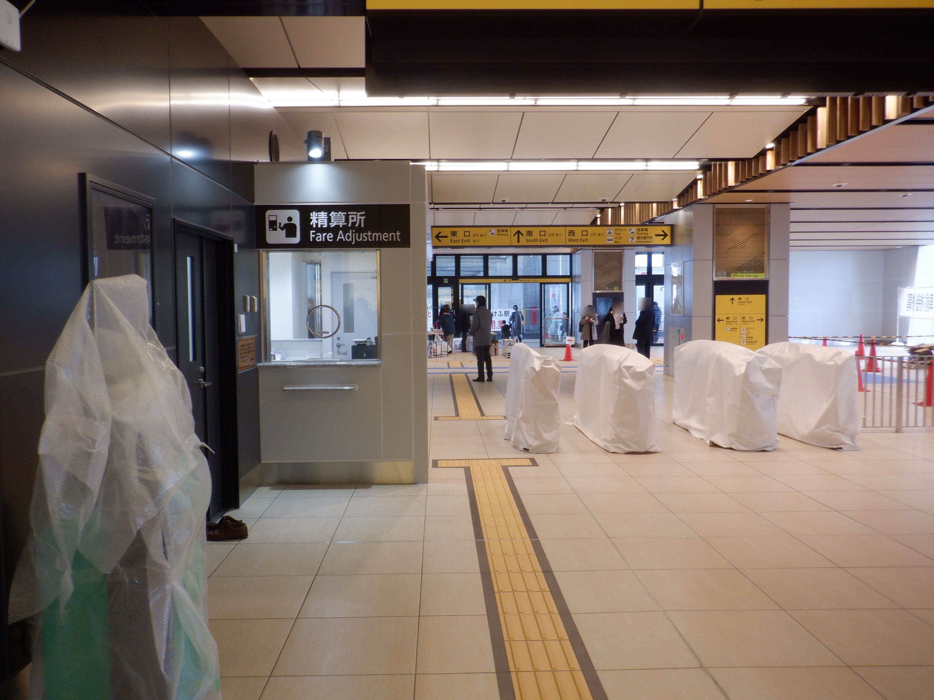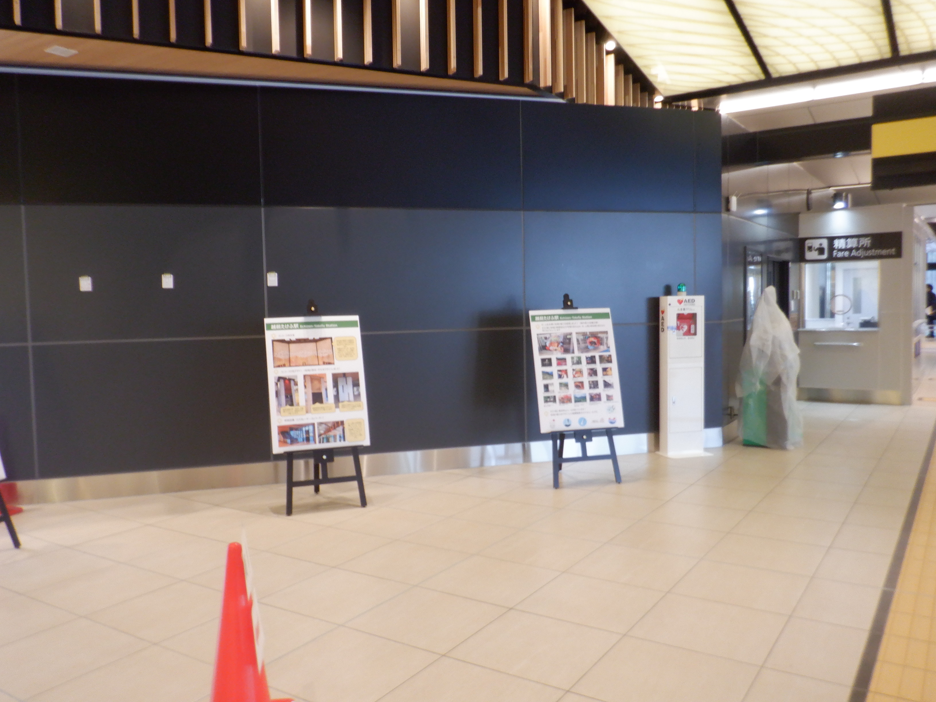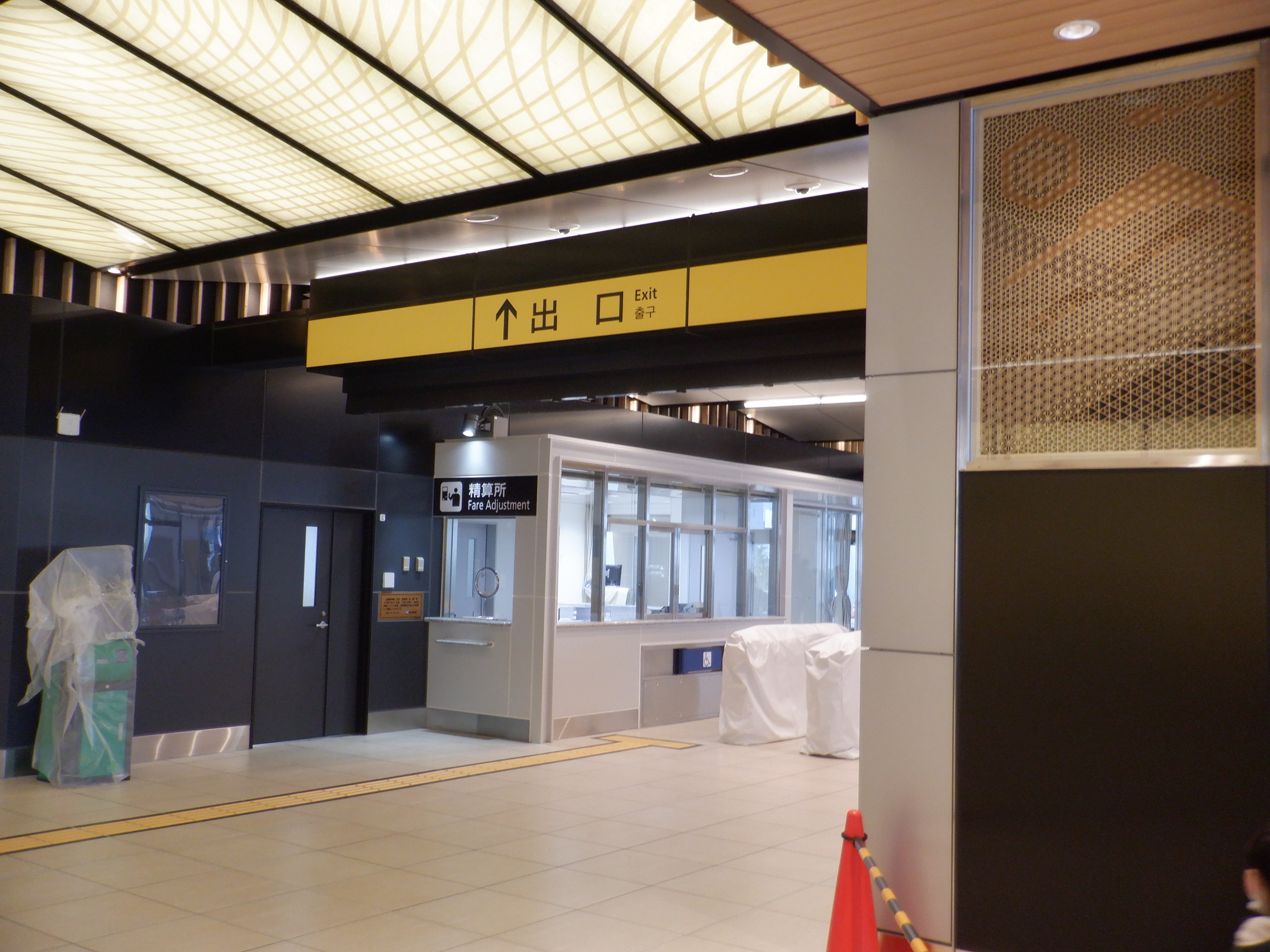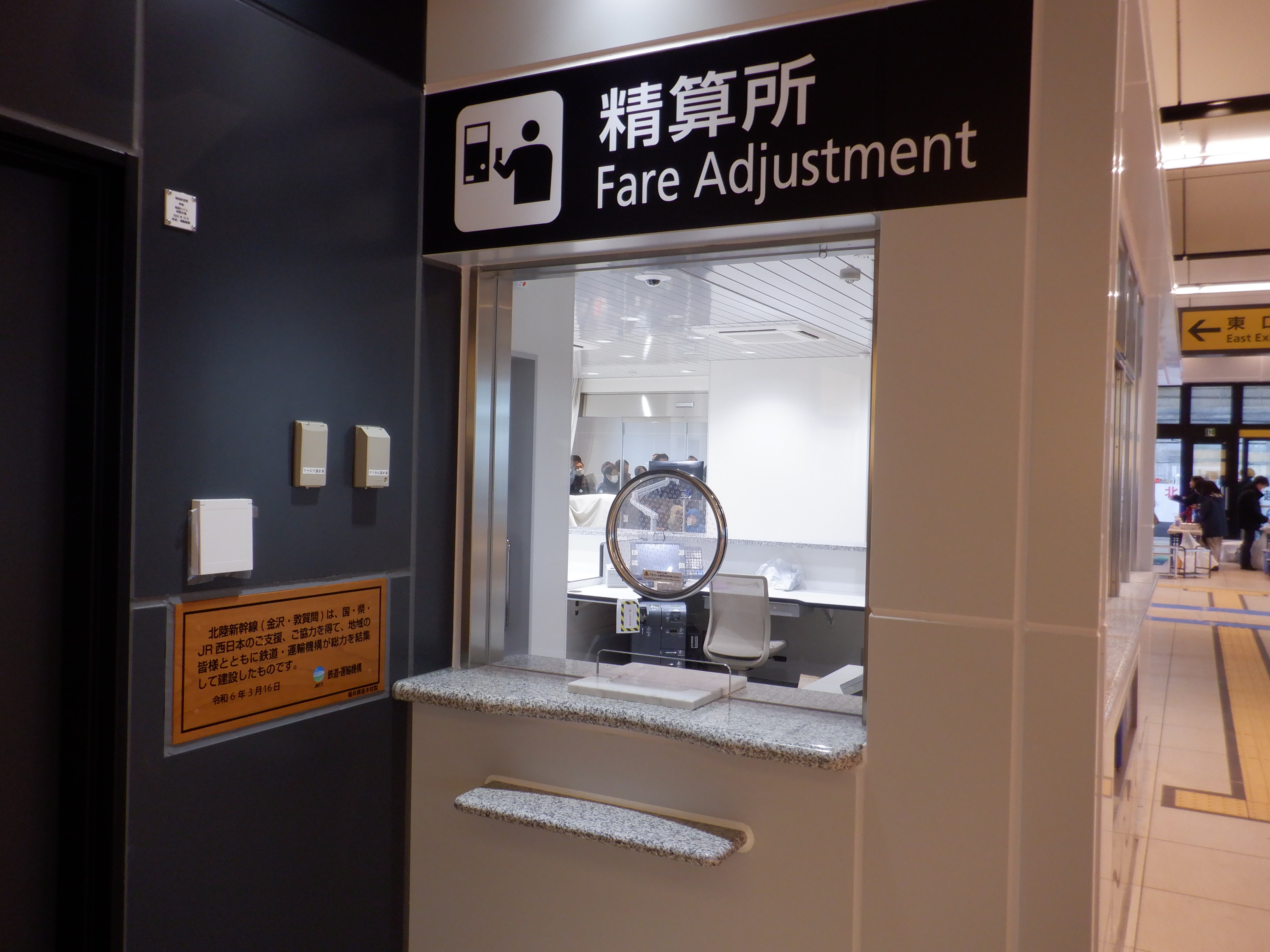 有人改札と精算所。鉄道・運輸機構の挨拶は精算所のところにあります。