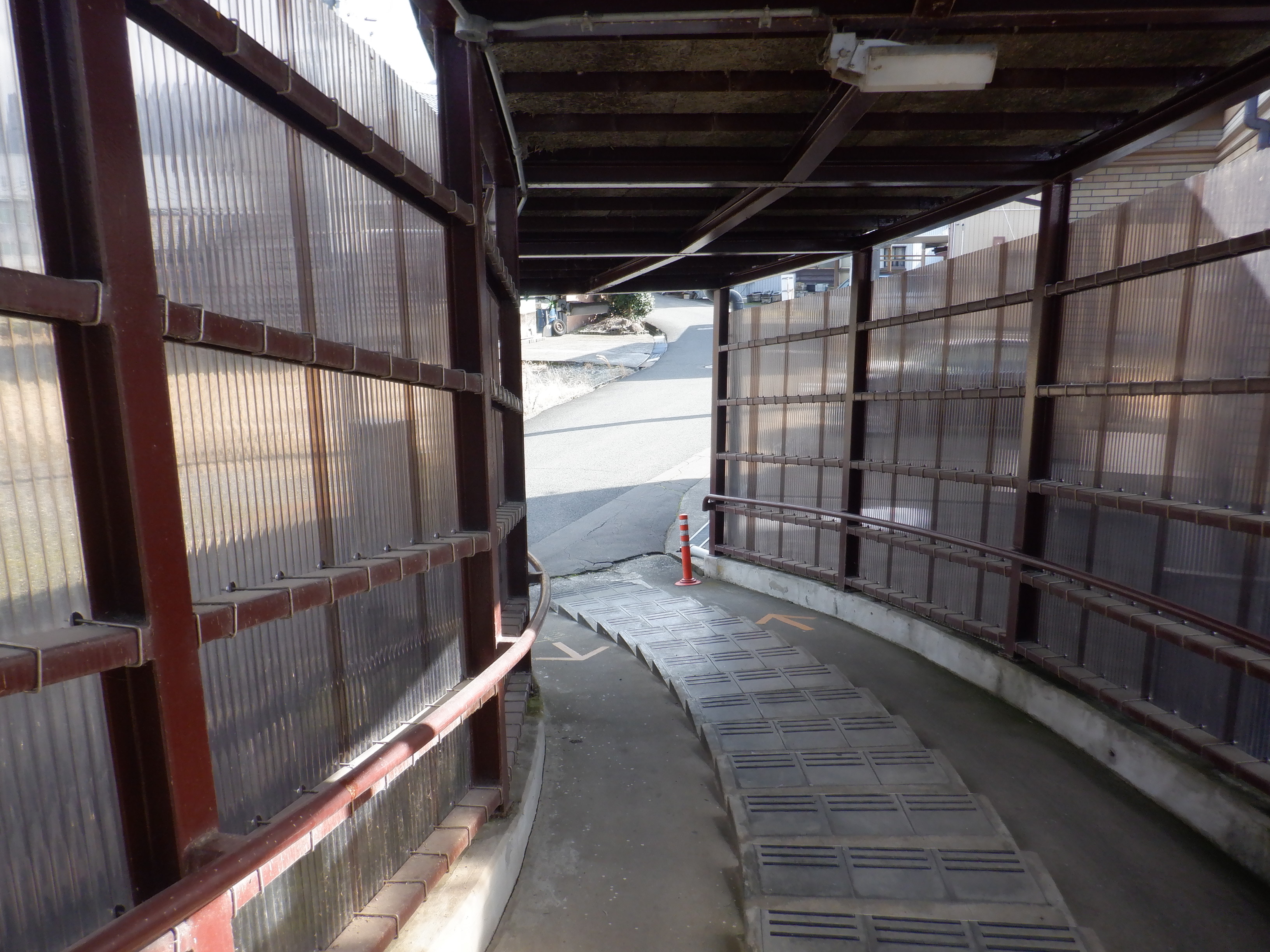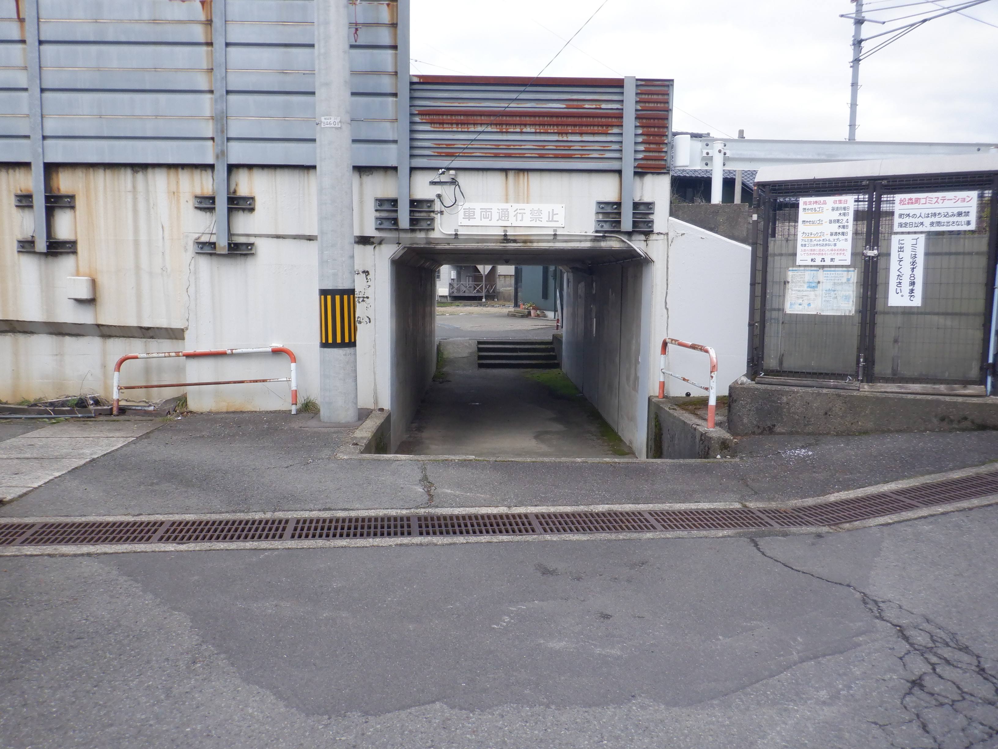 集落からの道は線路と立体交差する道で、歩道部分だけ下をくぐる形になっています。