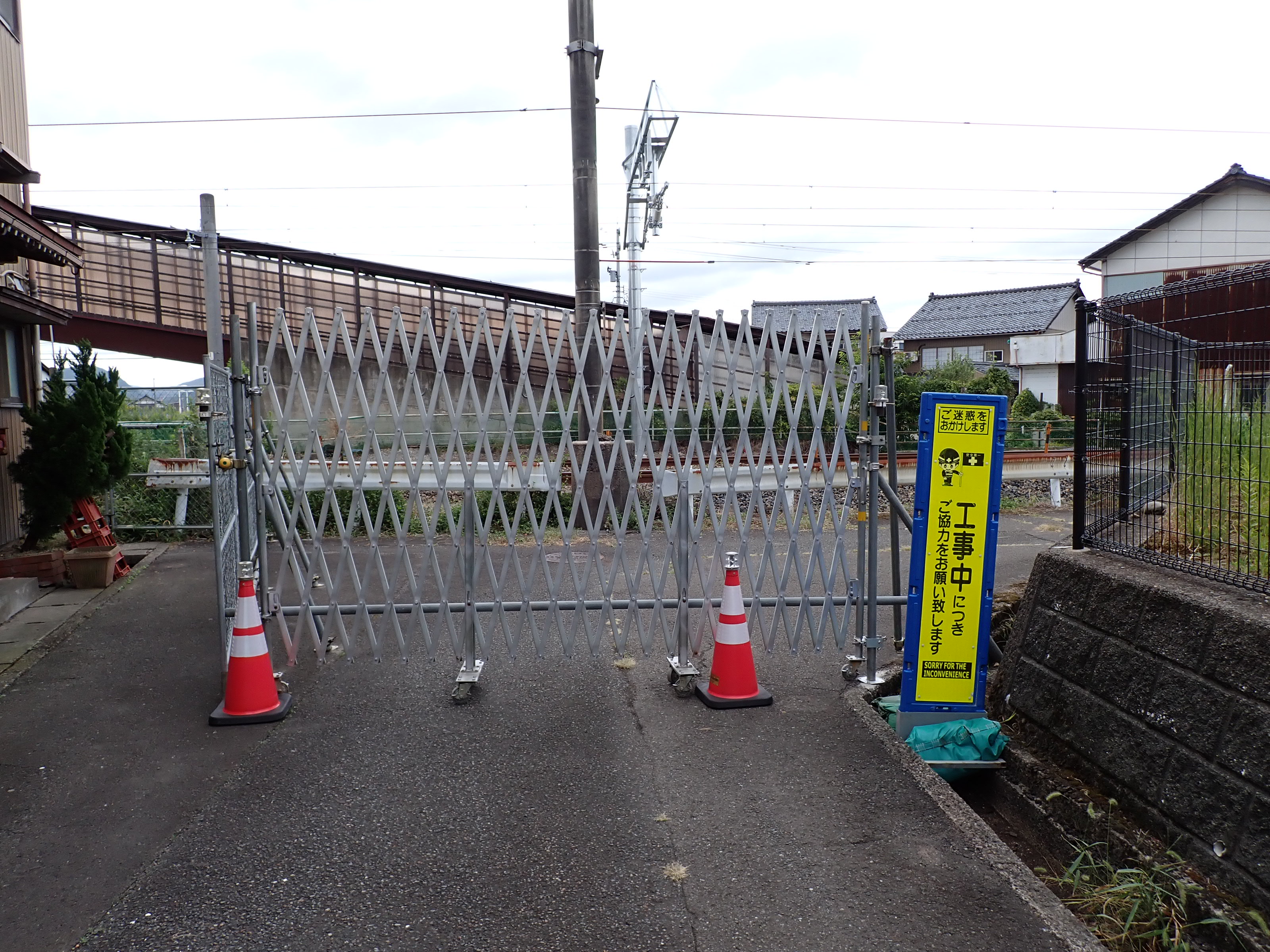2番のりばができる側の公園のそばの線路沿いの道はバリケードが設置されて入ることができなくなっていました。