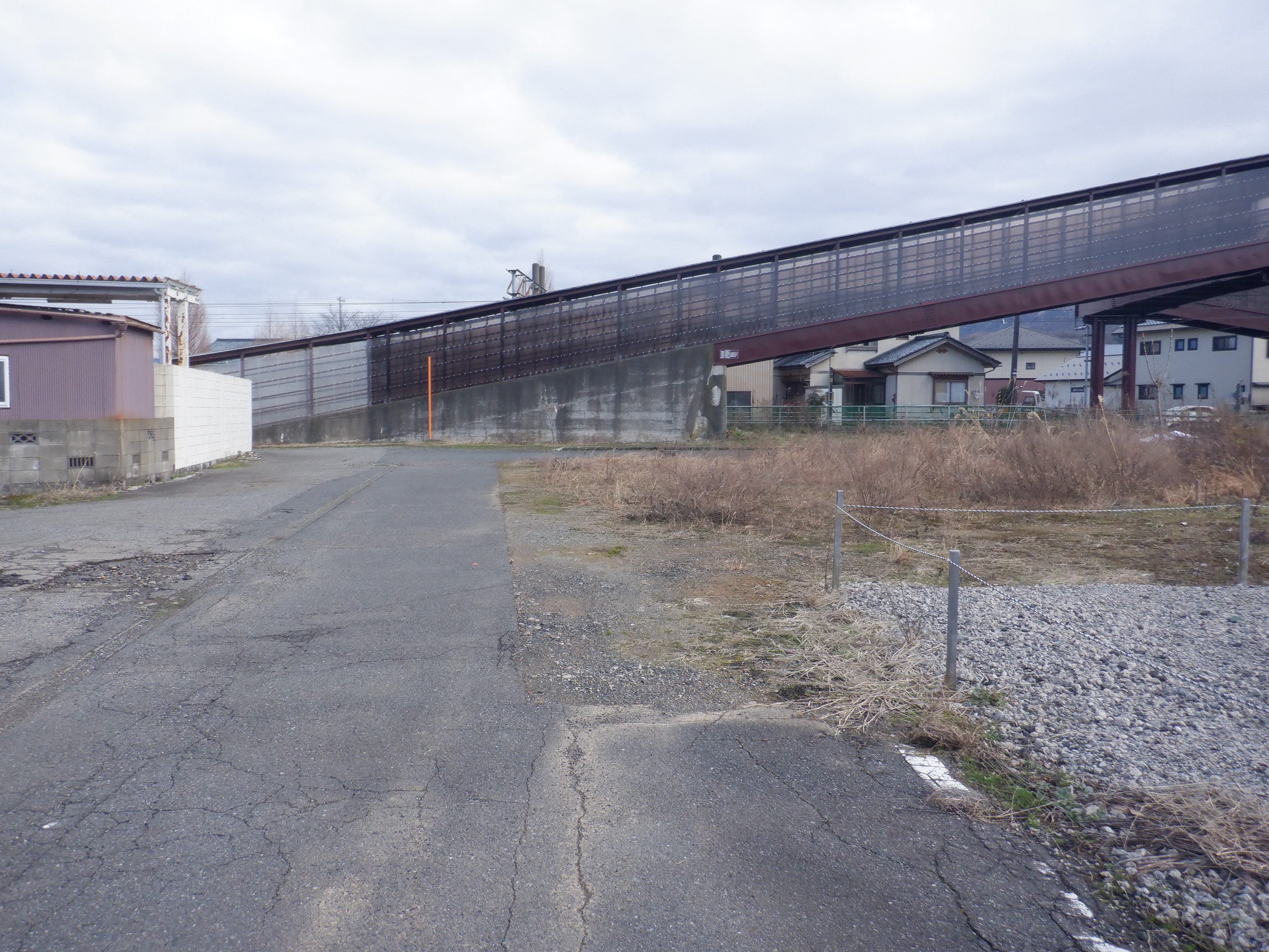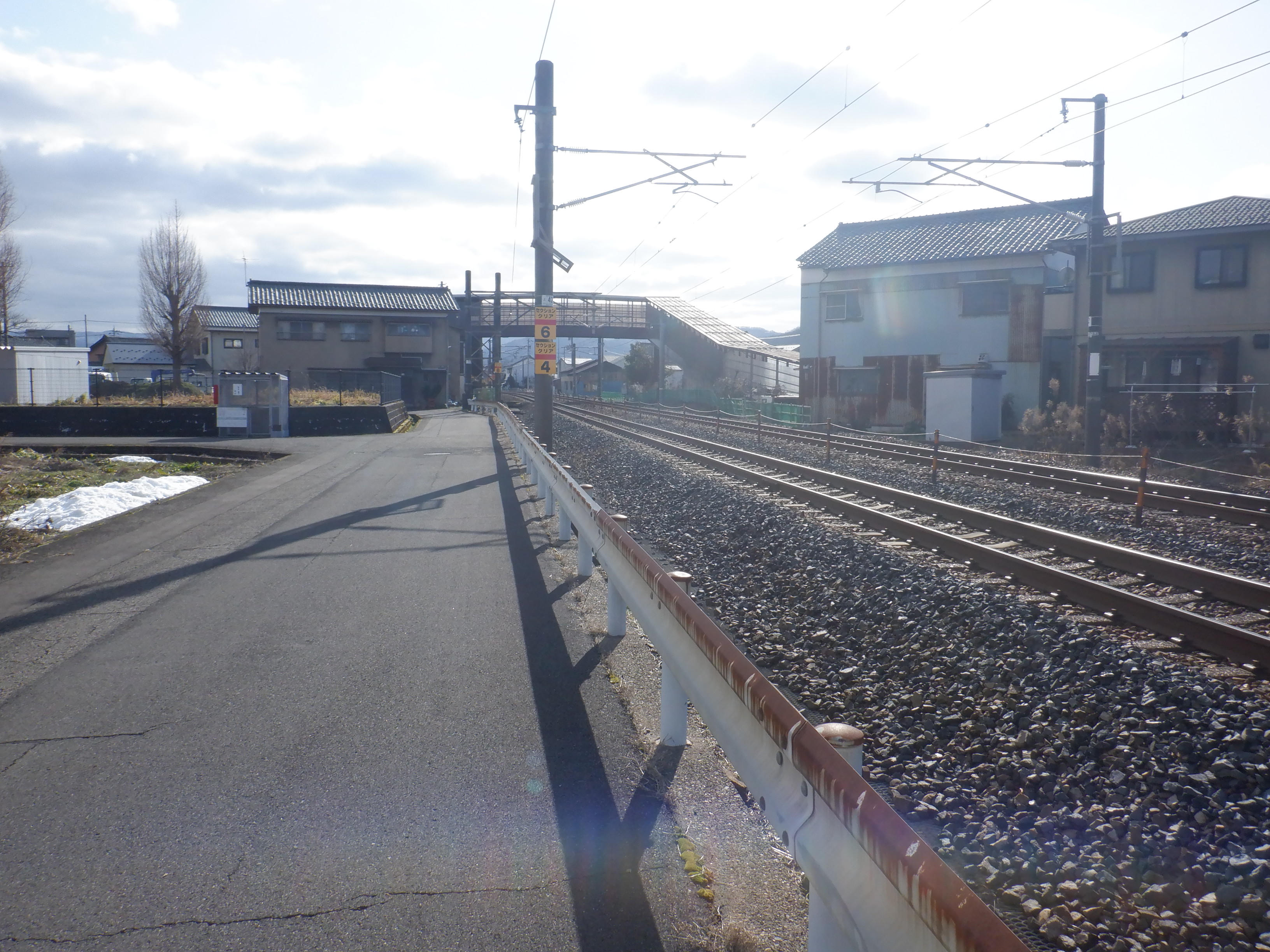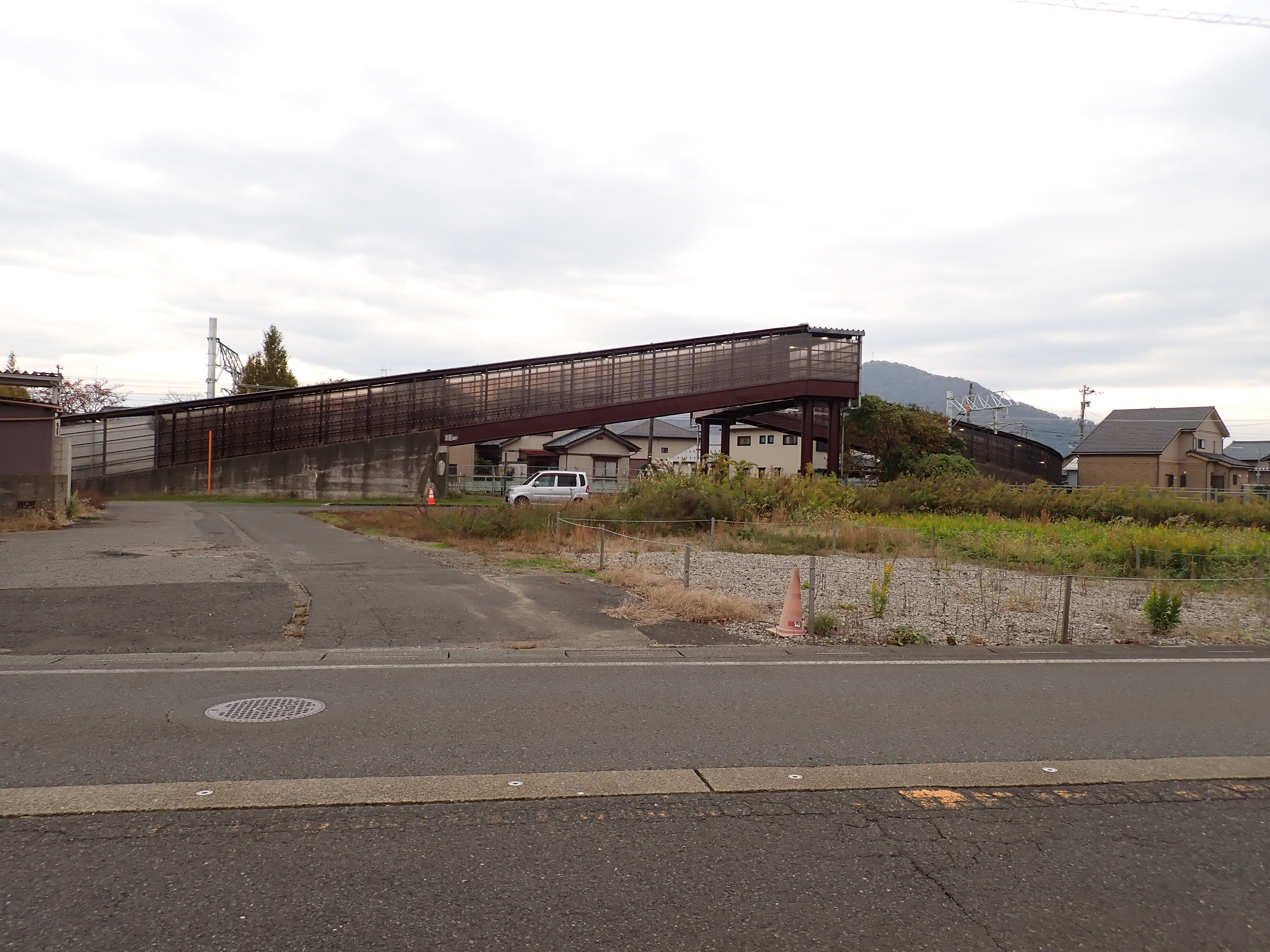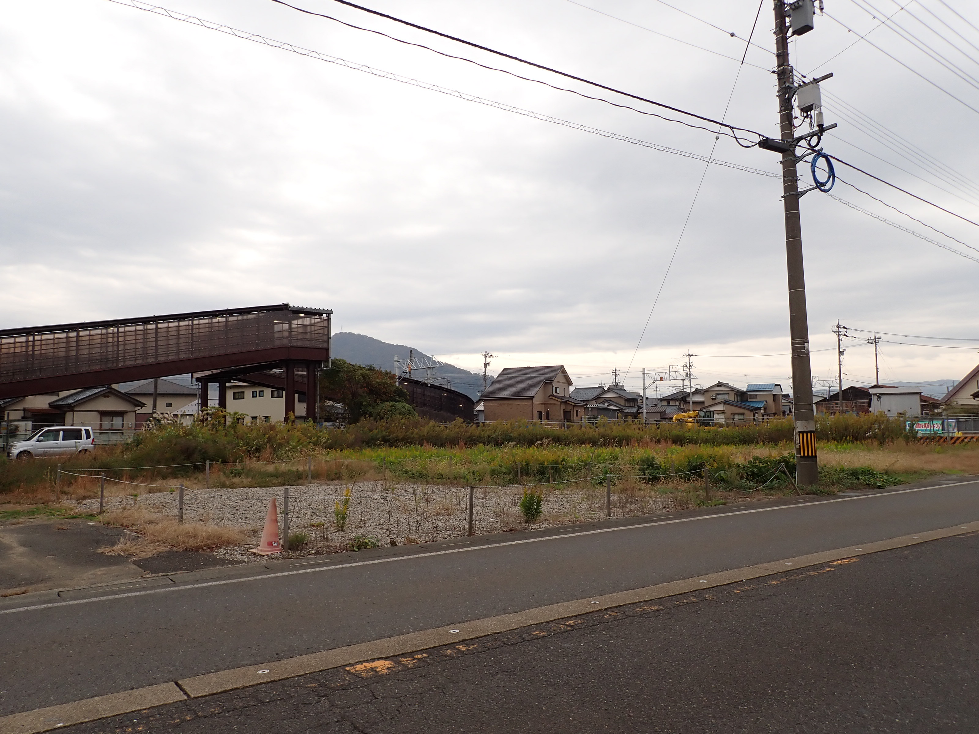 そこからしばらく進むと線路を跨ぐ歩道橋があります。この歩道橋の前後にしきぶ駅が作られることになります。