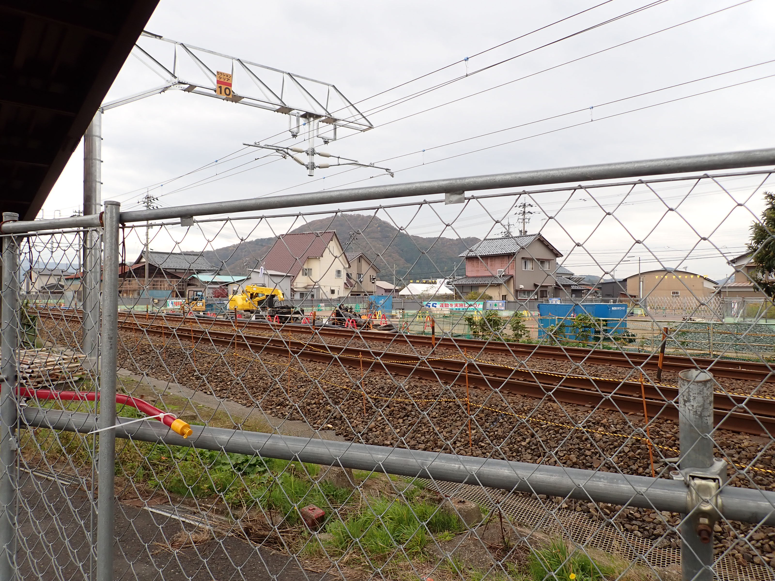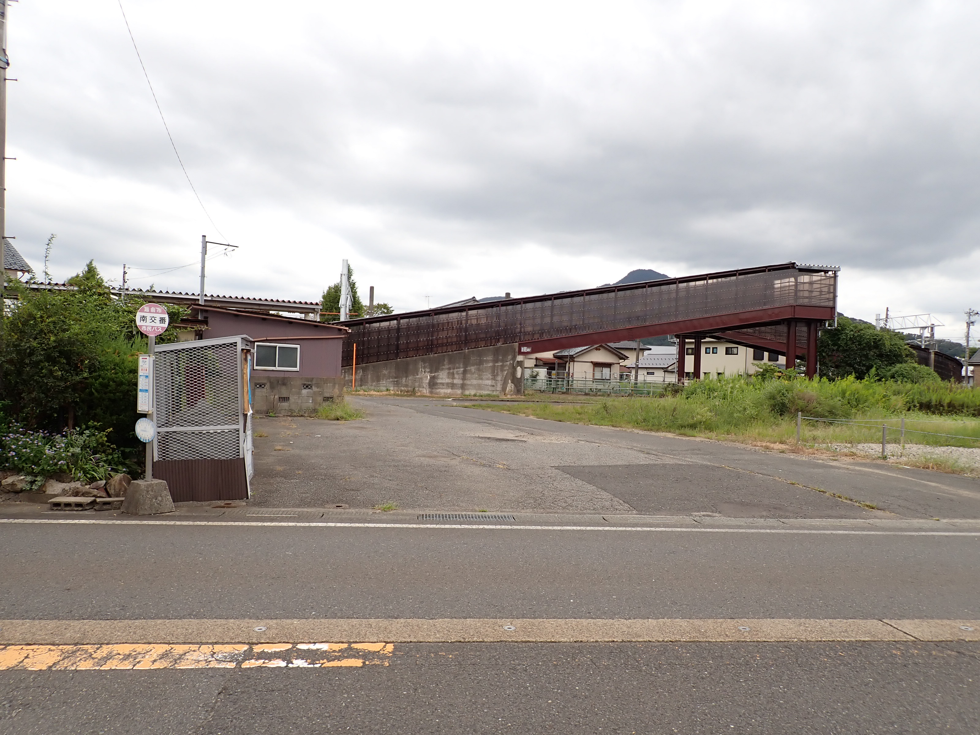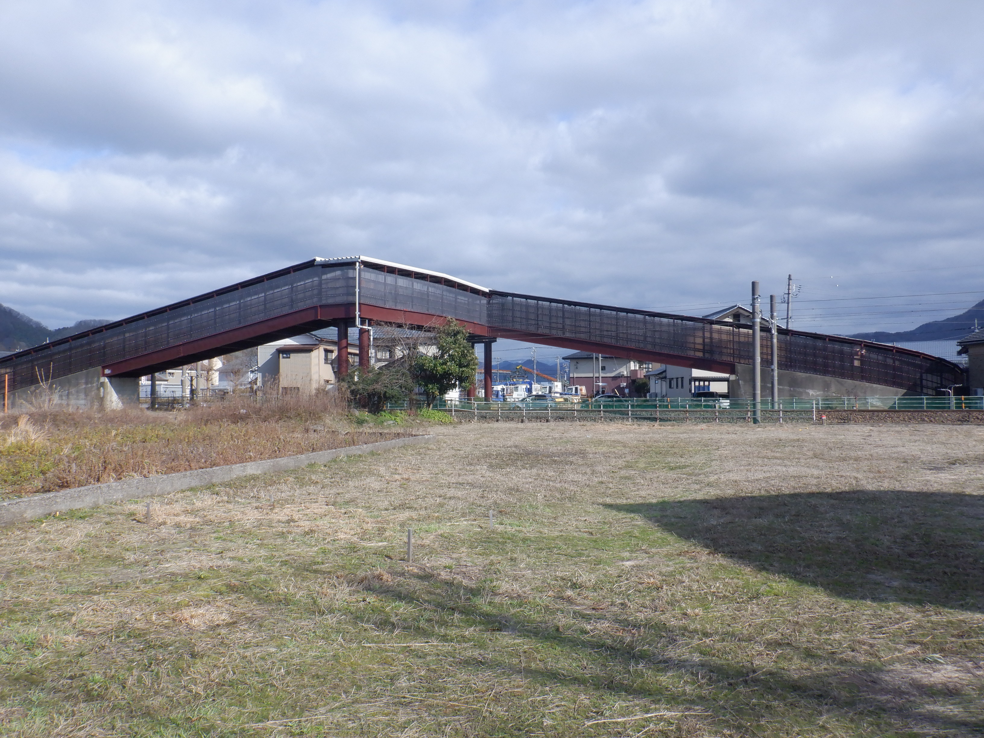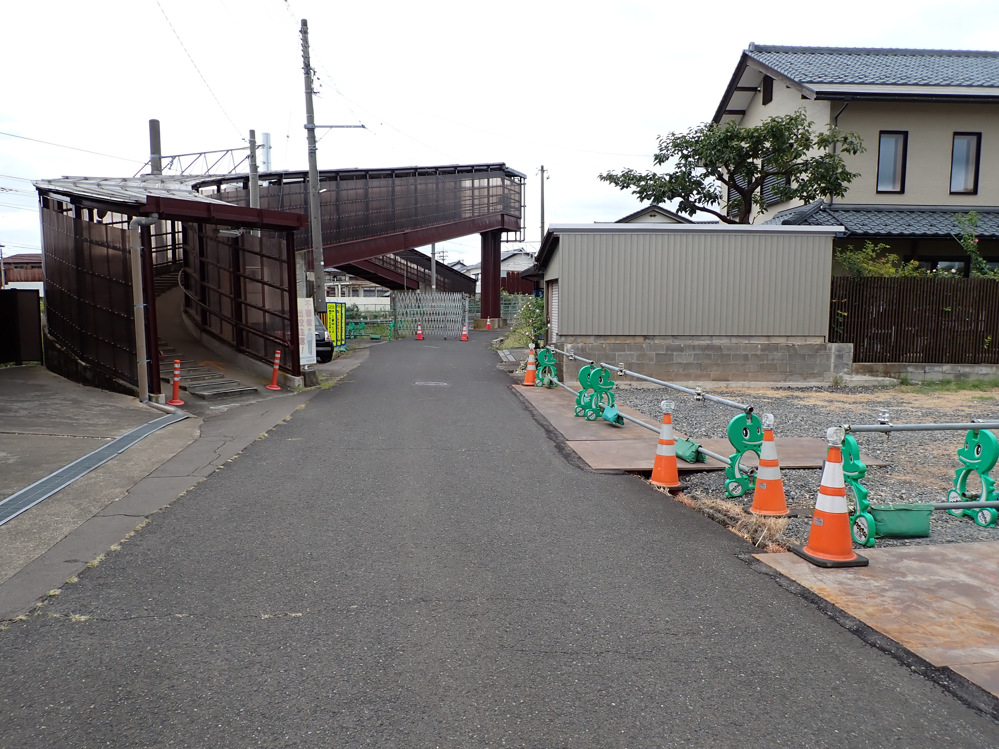 そこからしばらく進むと線路を跨ぐ歩道橋があります。この歩道橋の前後にしきぶ駅が作られることになります。