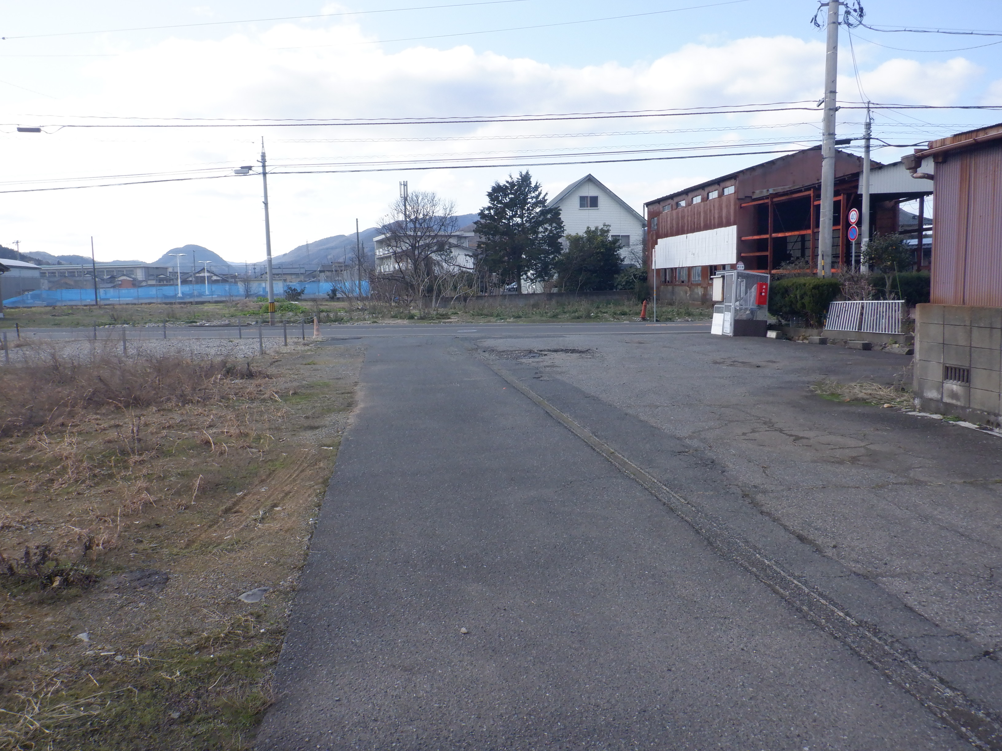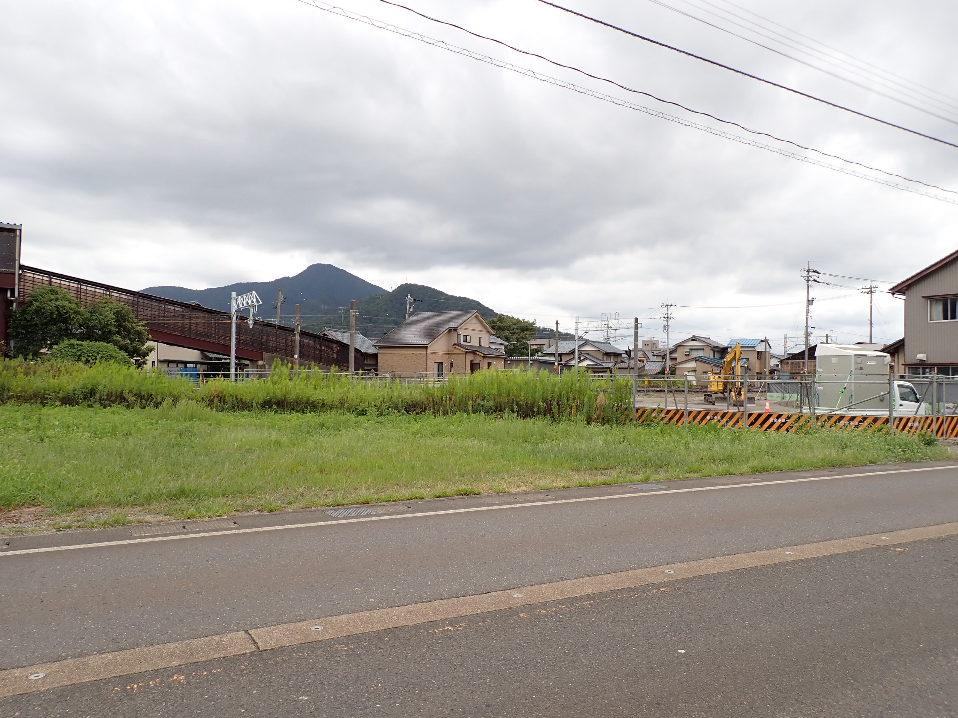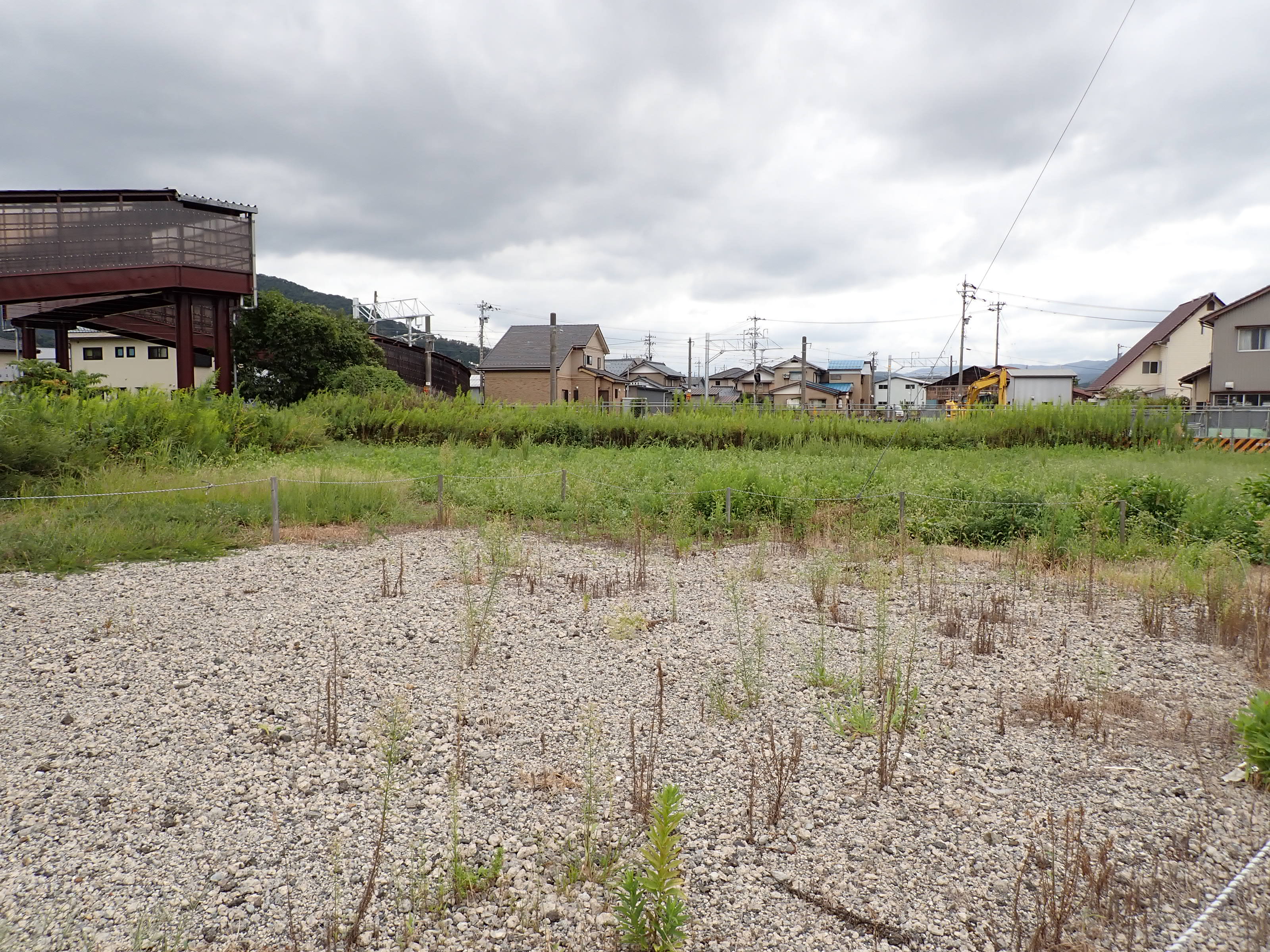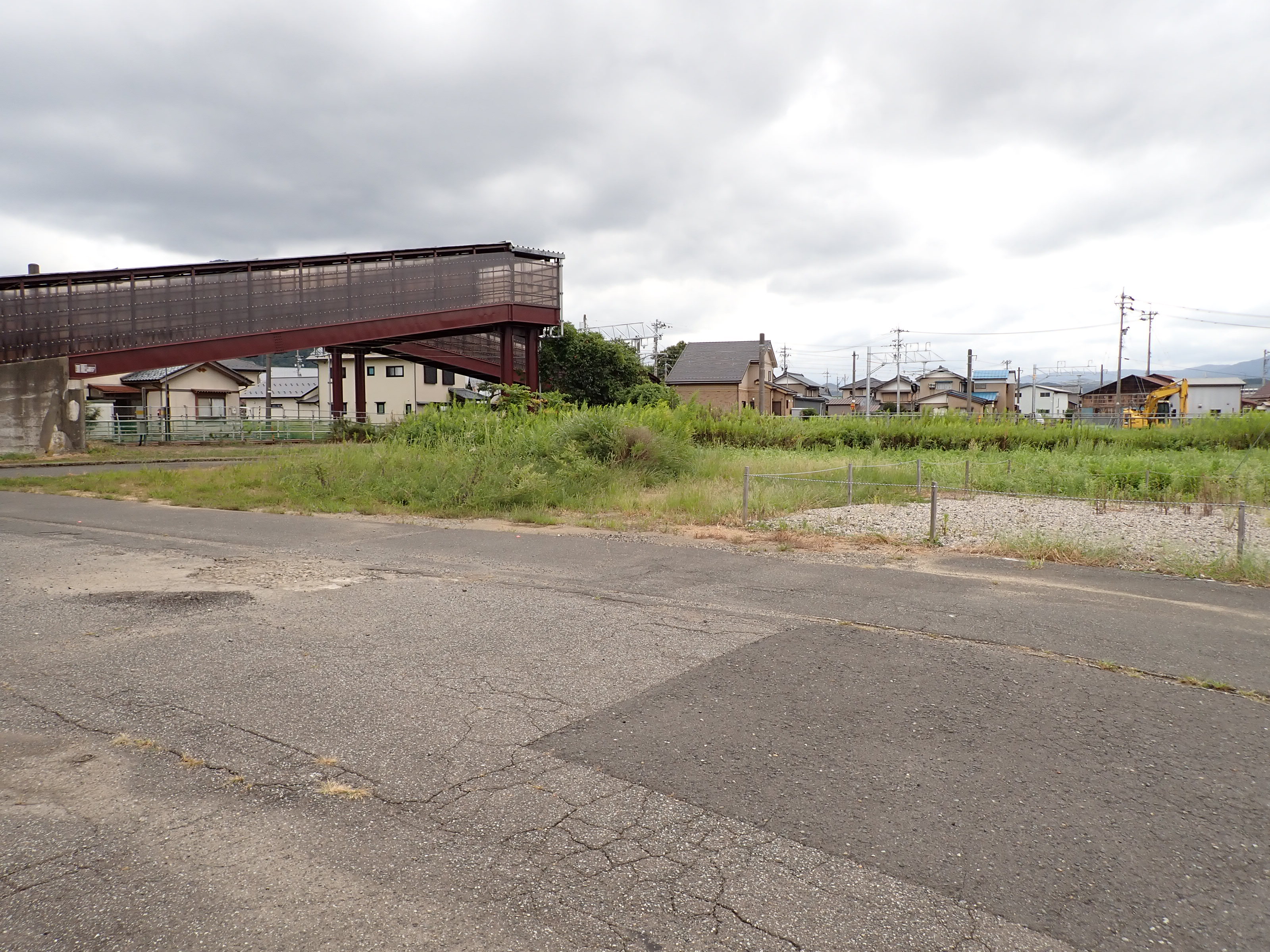 歩道橋の下付近から見た駅前広場となる方向。なお、この場所は工事開始後、しきぶ駅開業まで立ち入ることができなくなります。