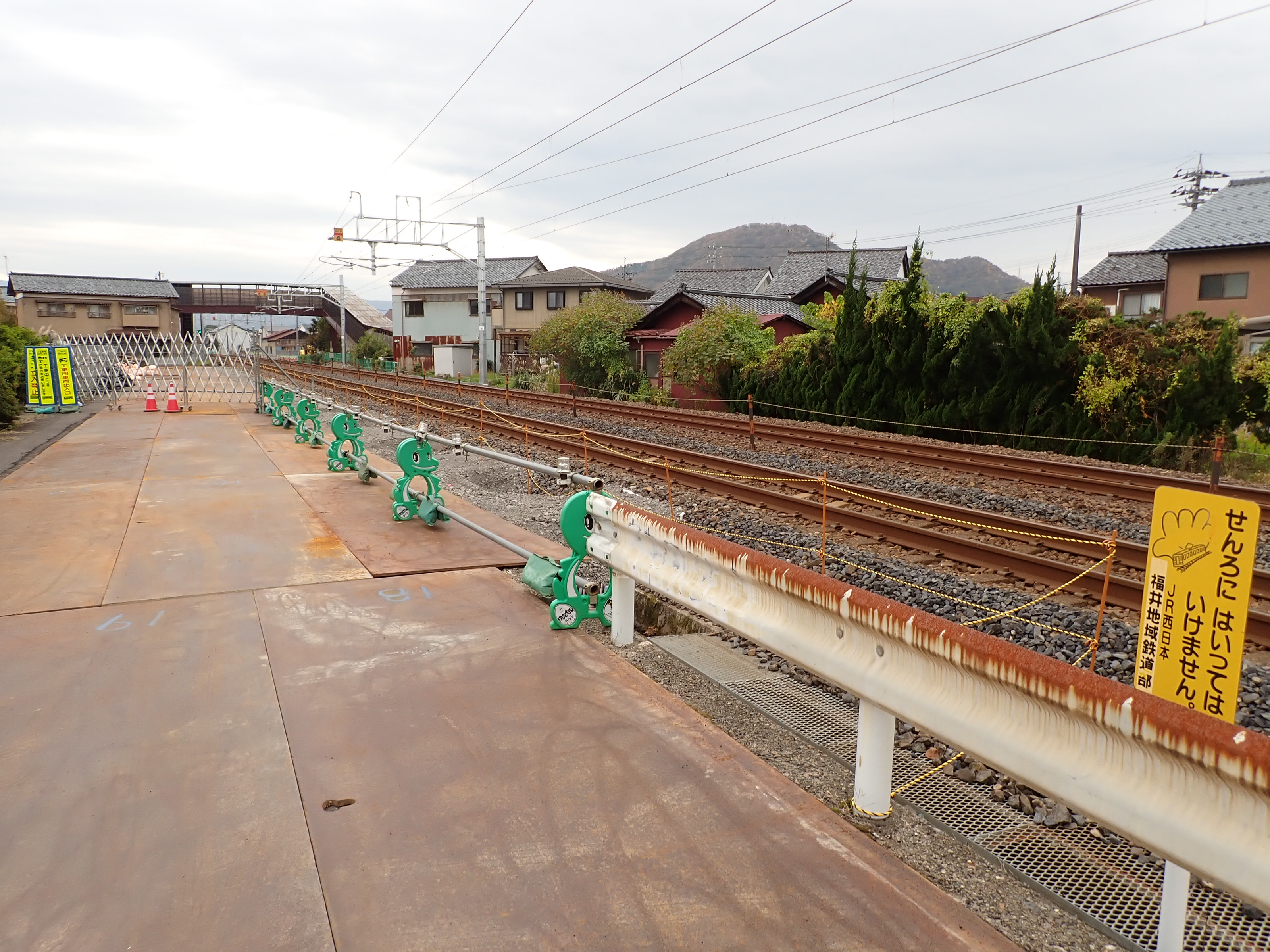 2番のりばとなるところの武生駅側。バリケードの前後に鉄板が敷かれていました。