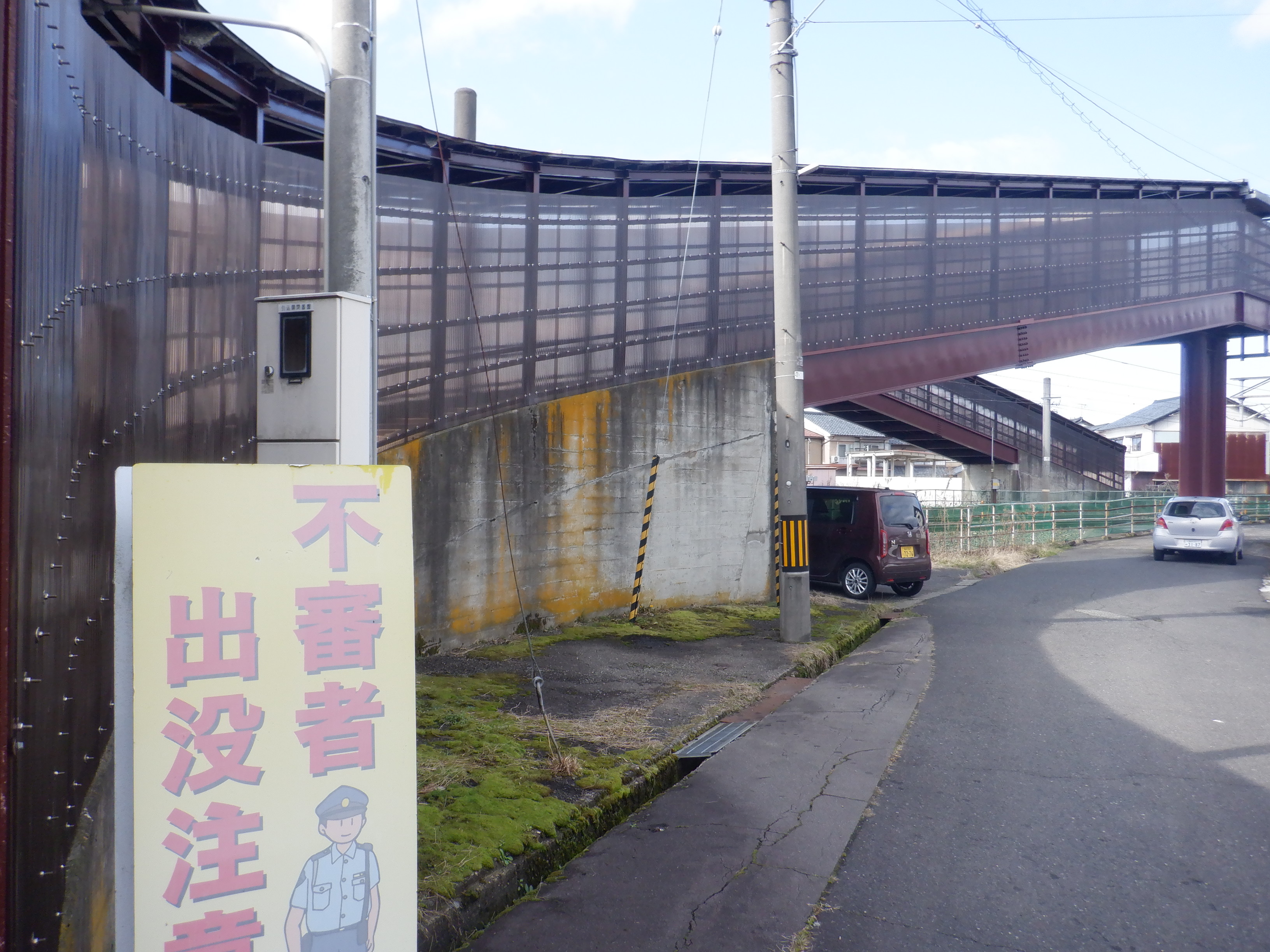 歩道橋入口を少し離れて見たところ。