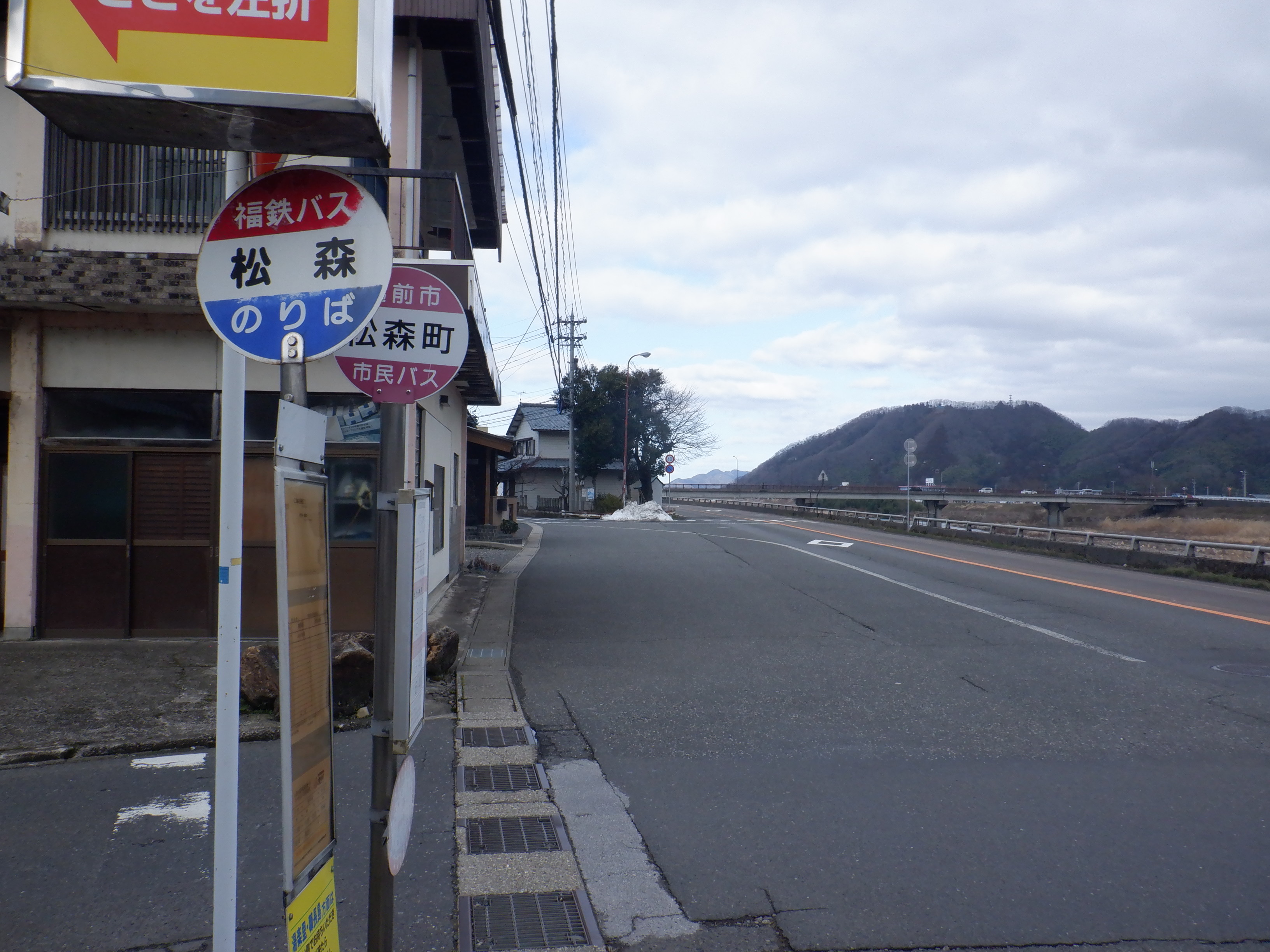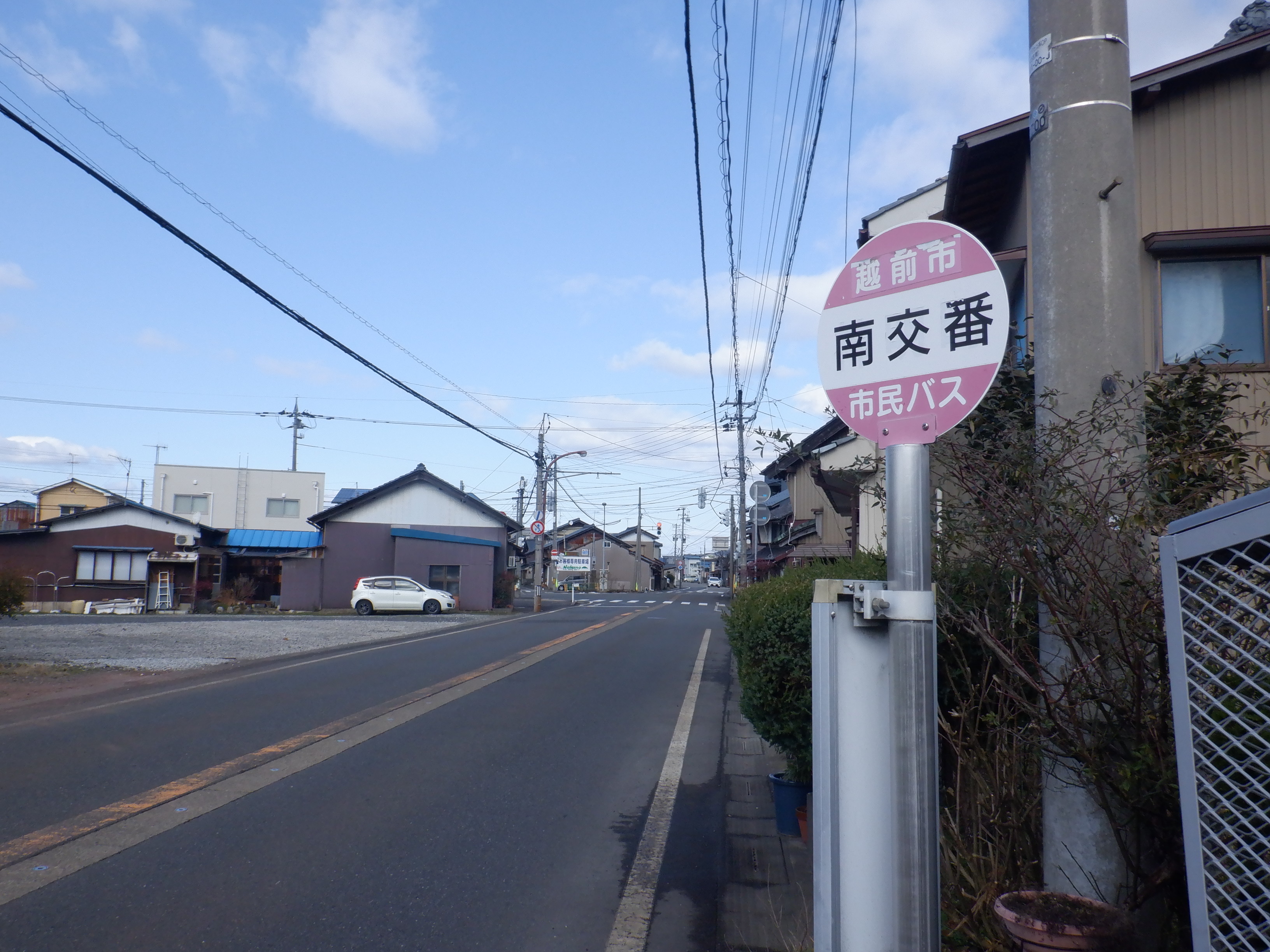 通りに出て、南交番バス停。