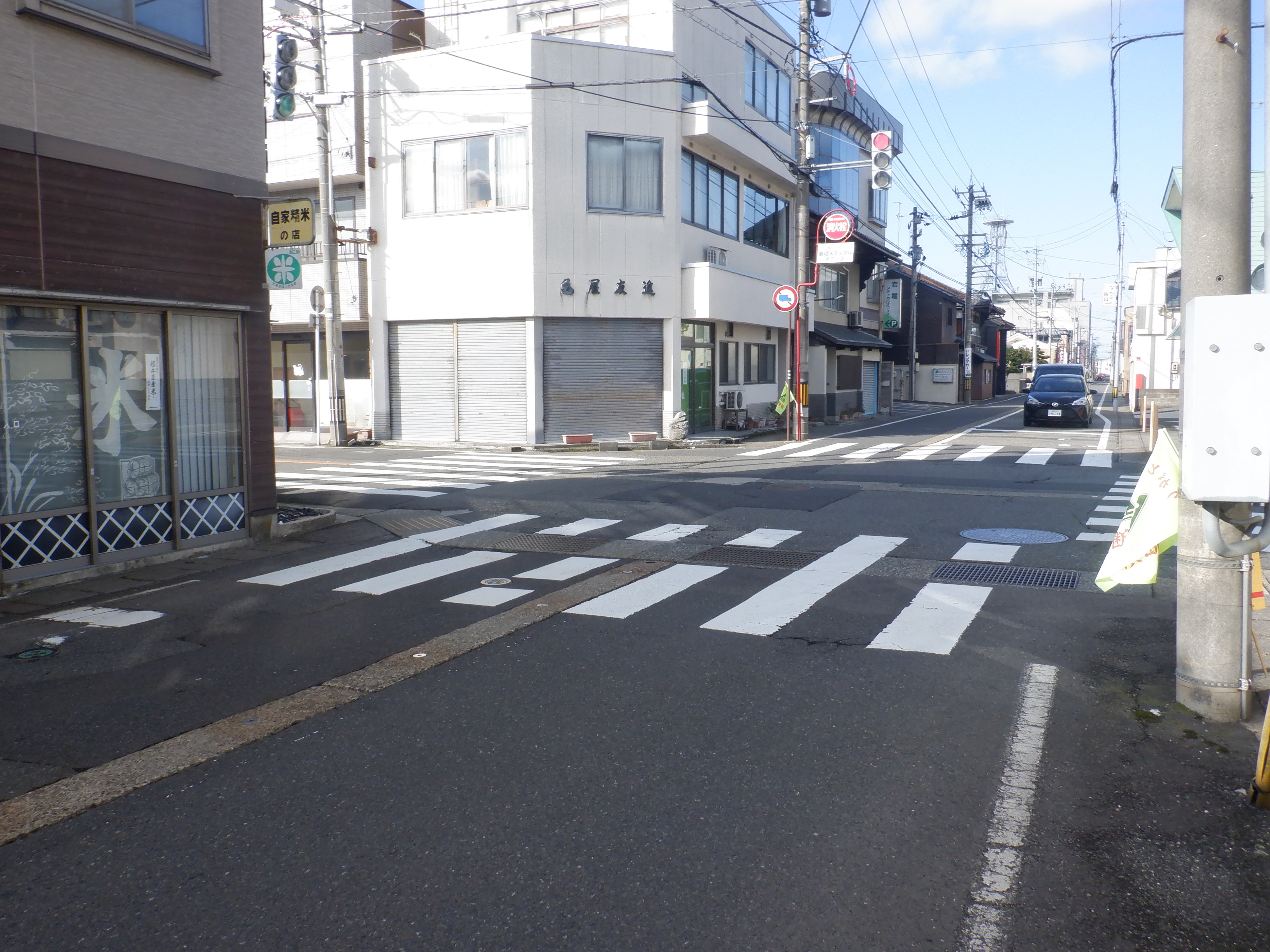 この交差点は、この先しきぶ駅工事中の様子を見た後はまっすぐ進むのですが、この時は右に曲がっています。