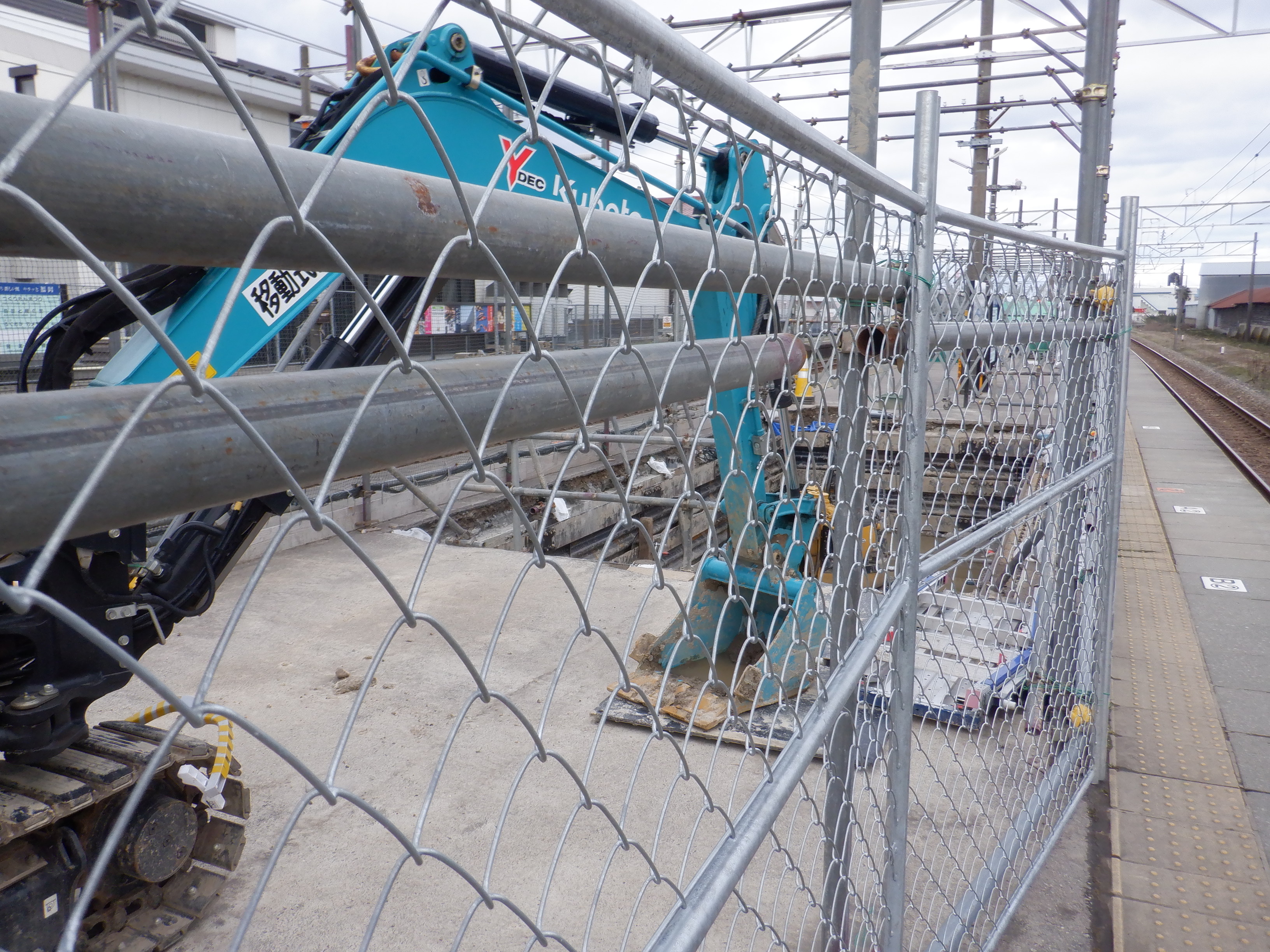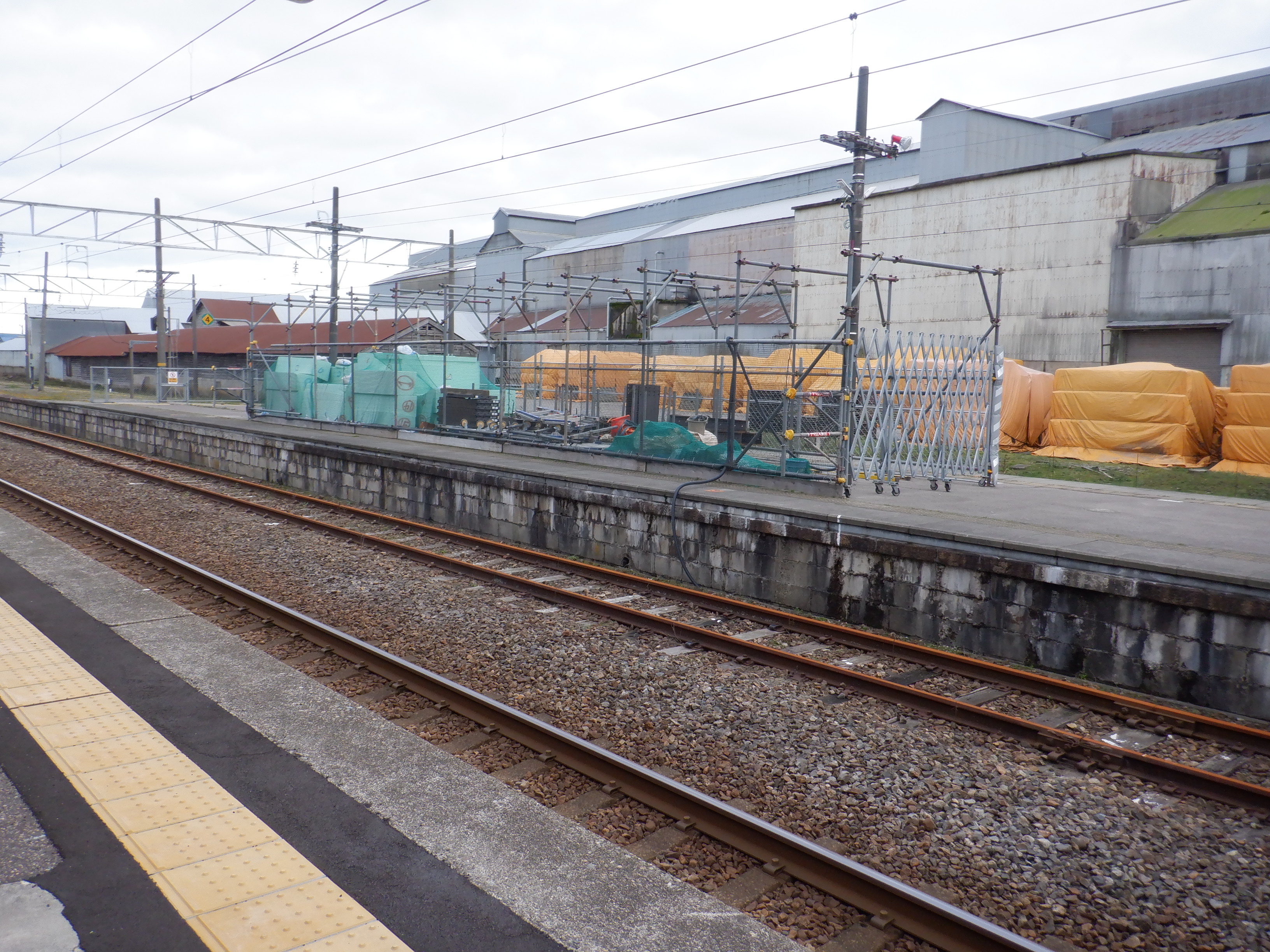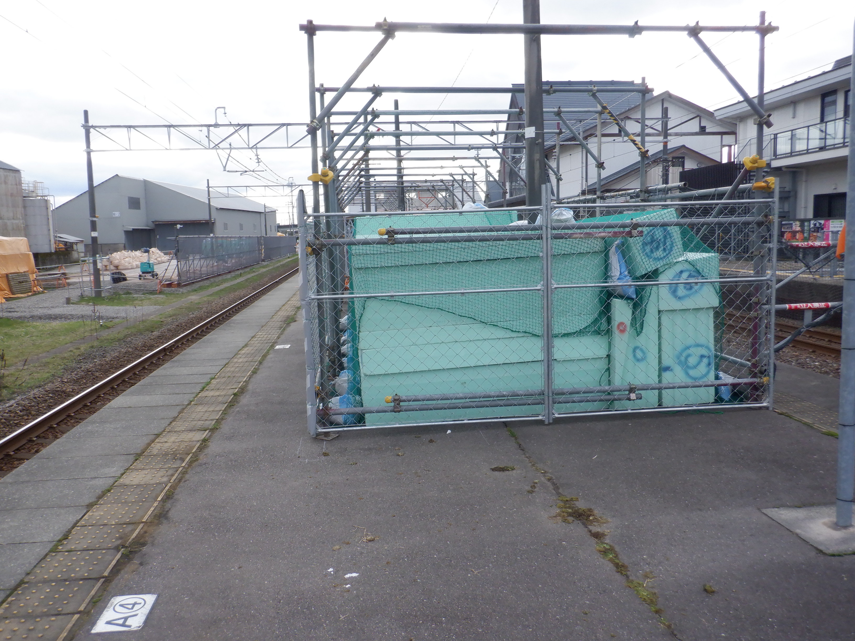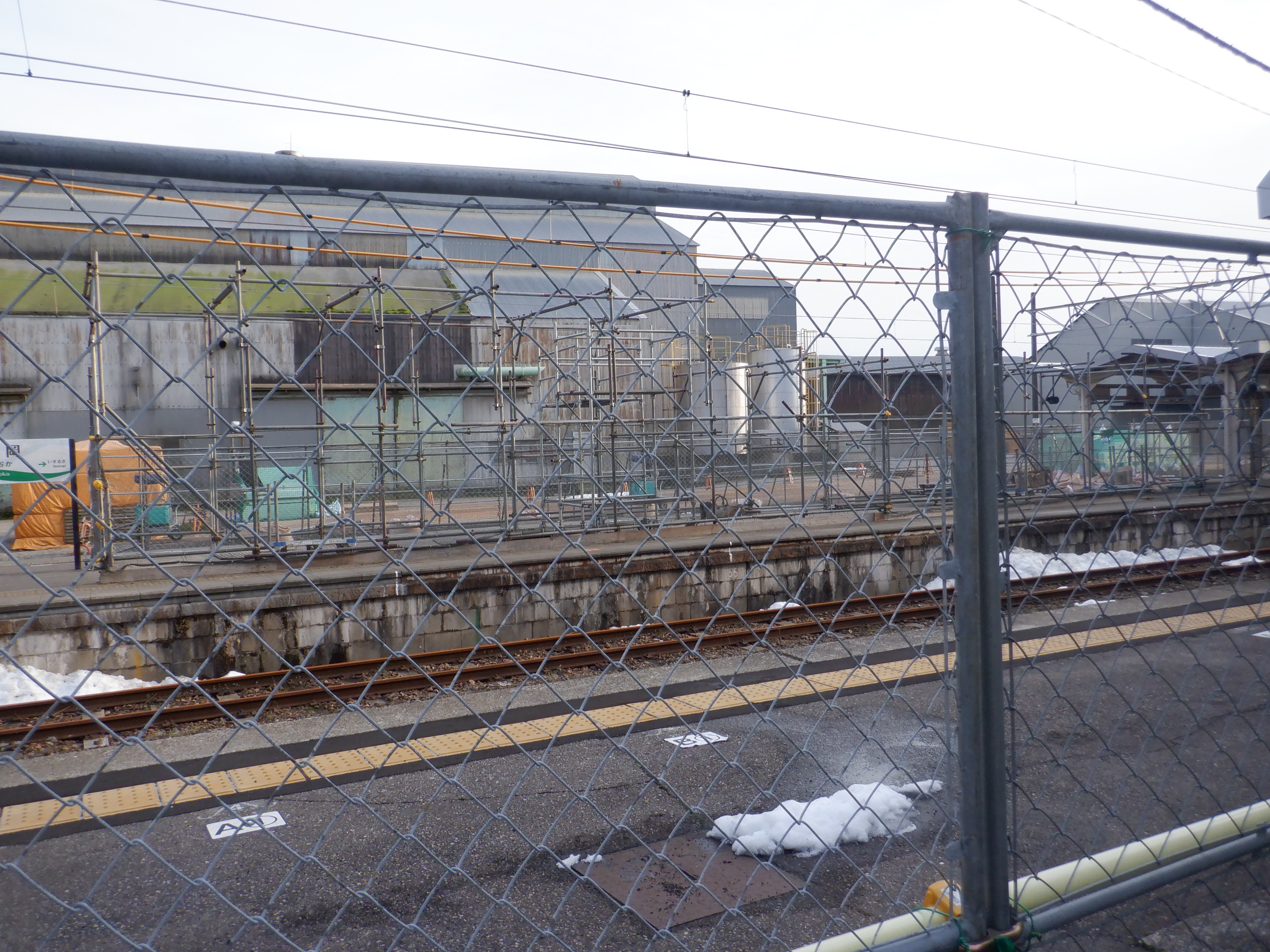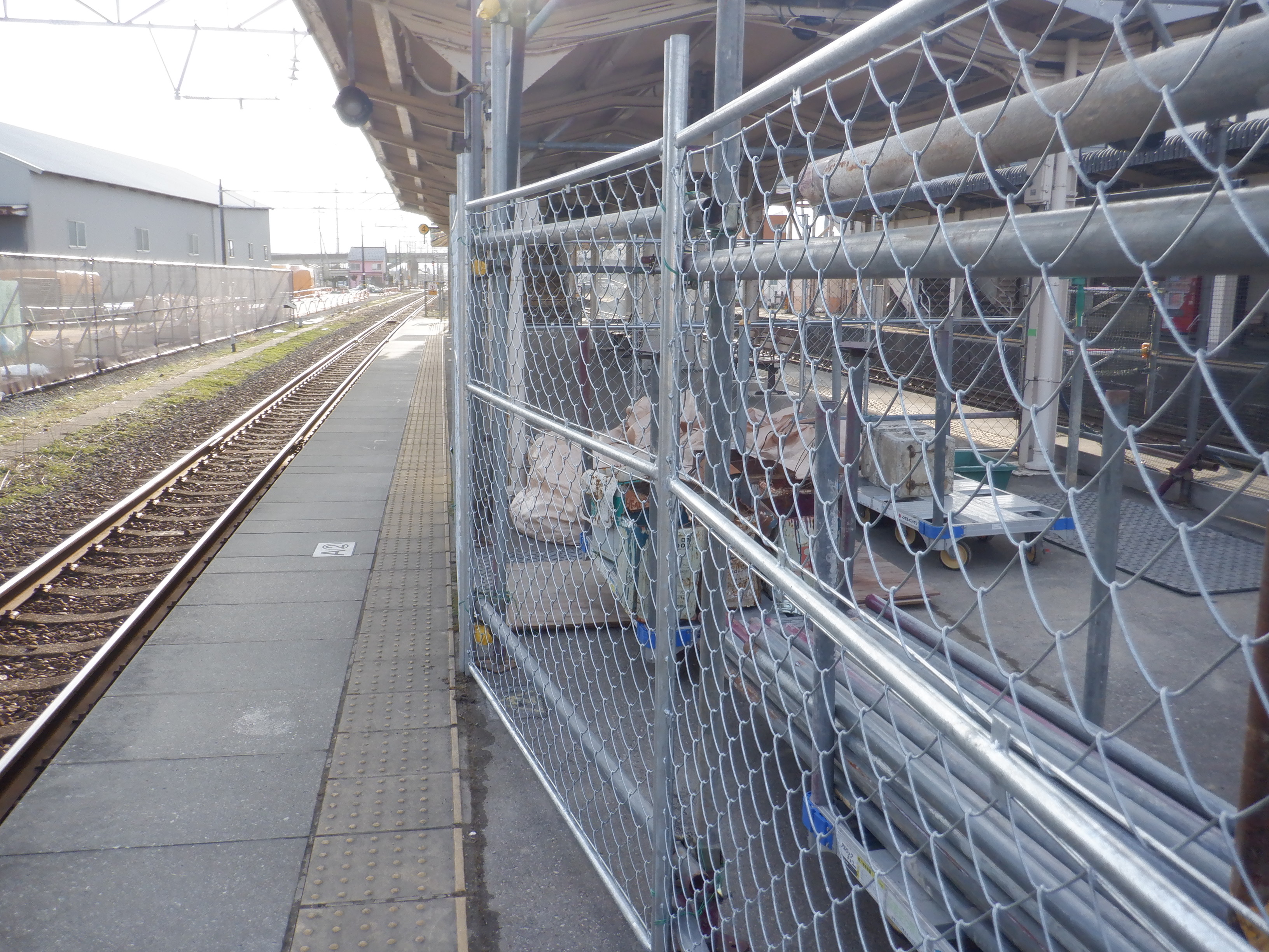 2・3番のりば西高岡駅側のエレベーター跨線橋建設のための囲い。