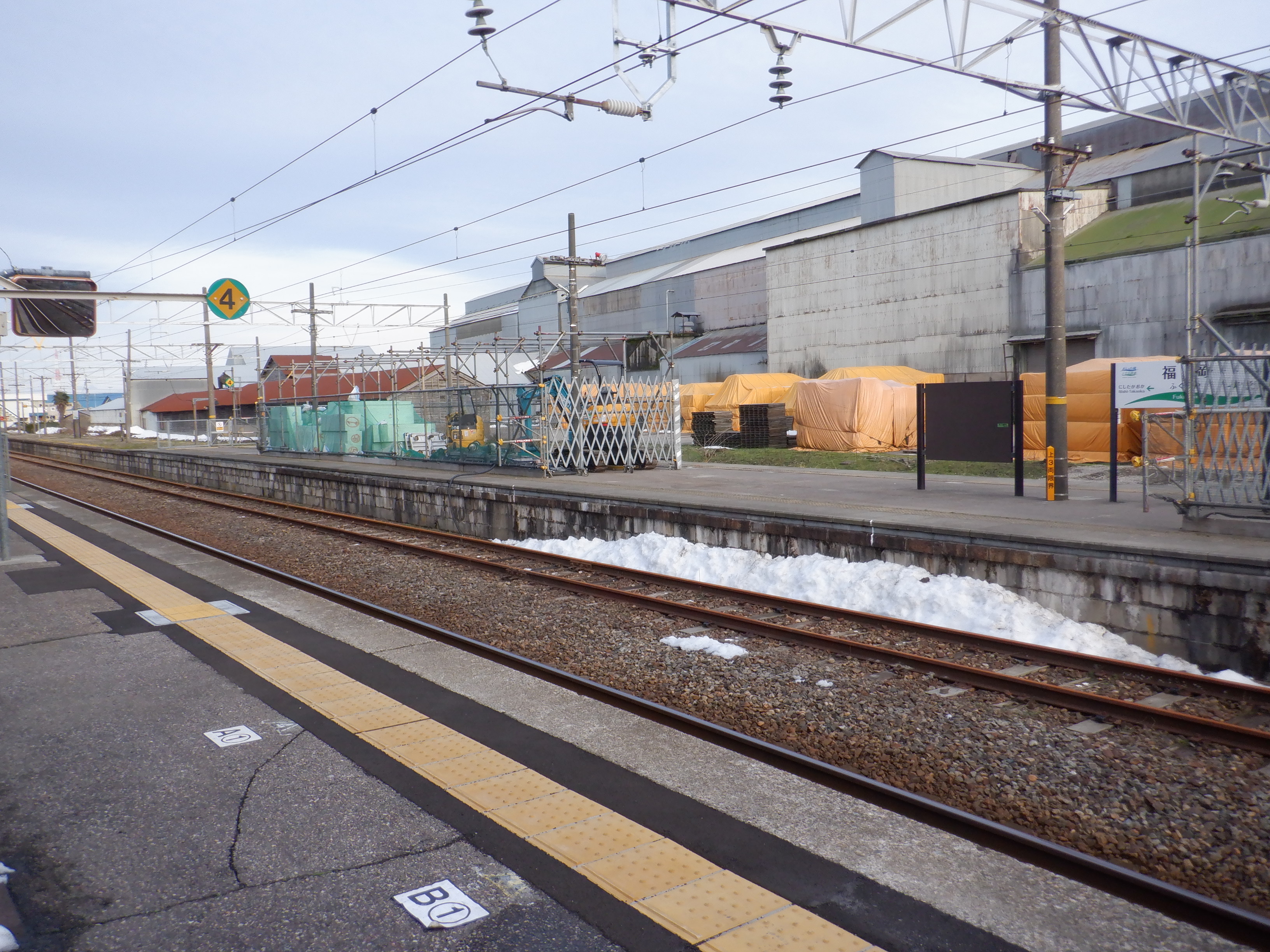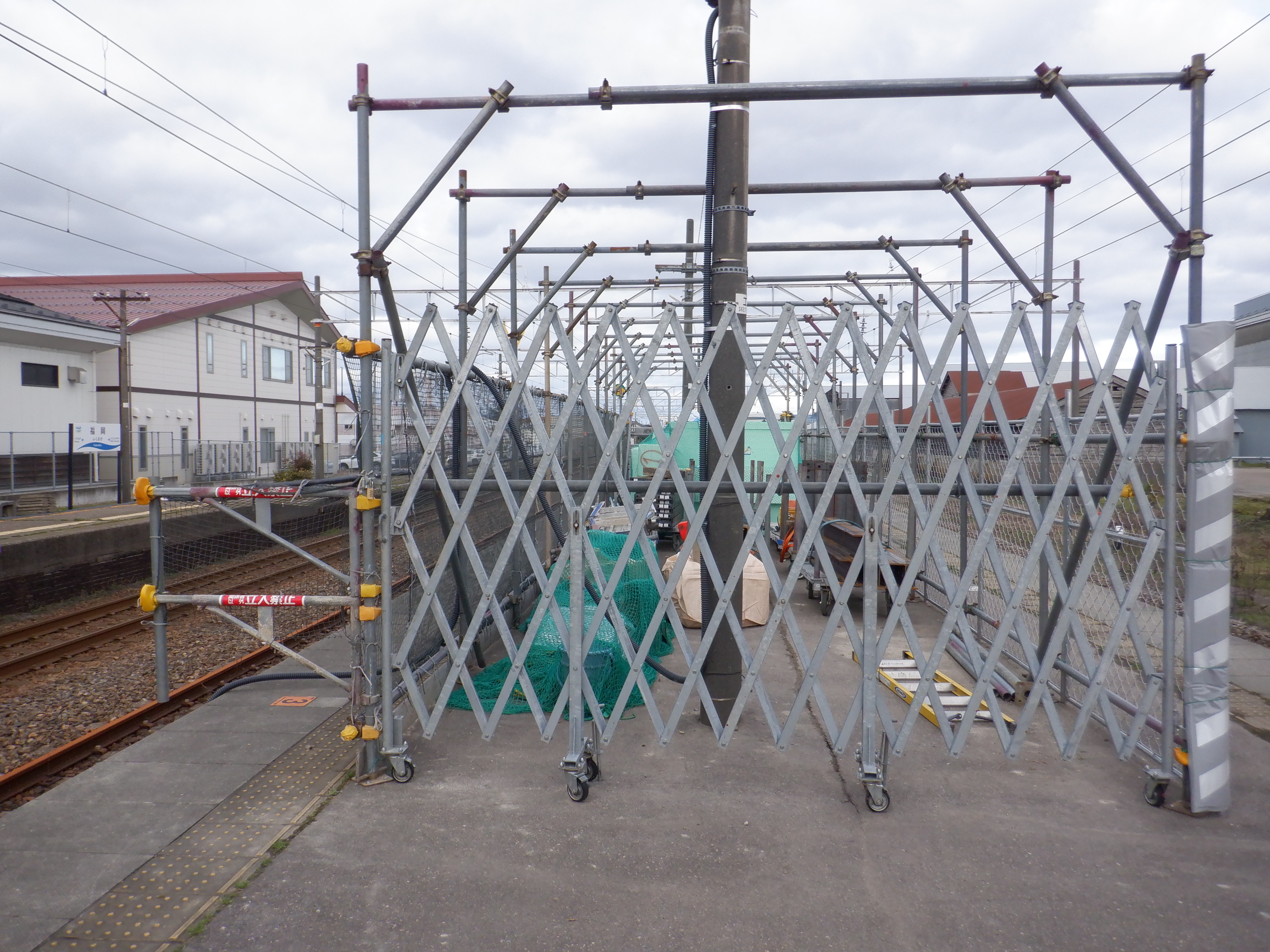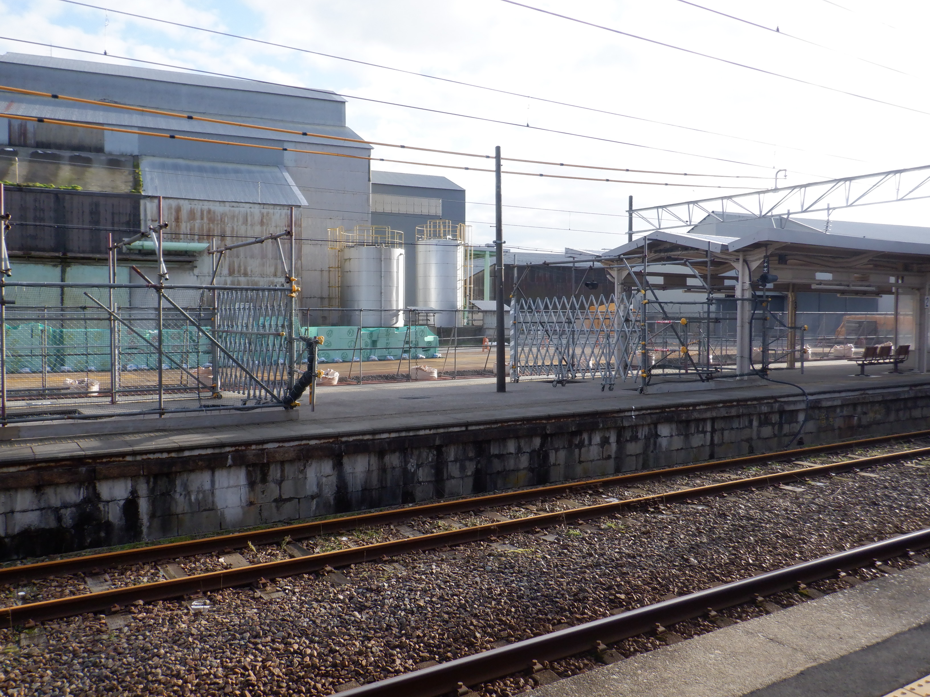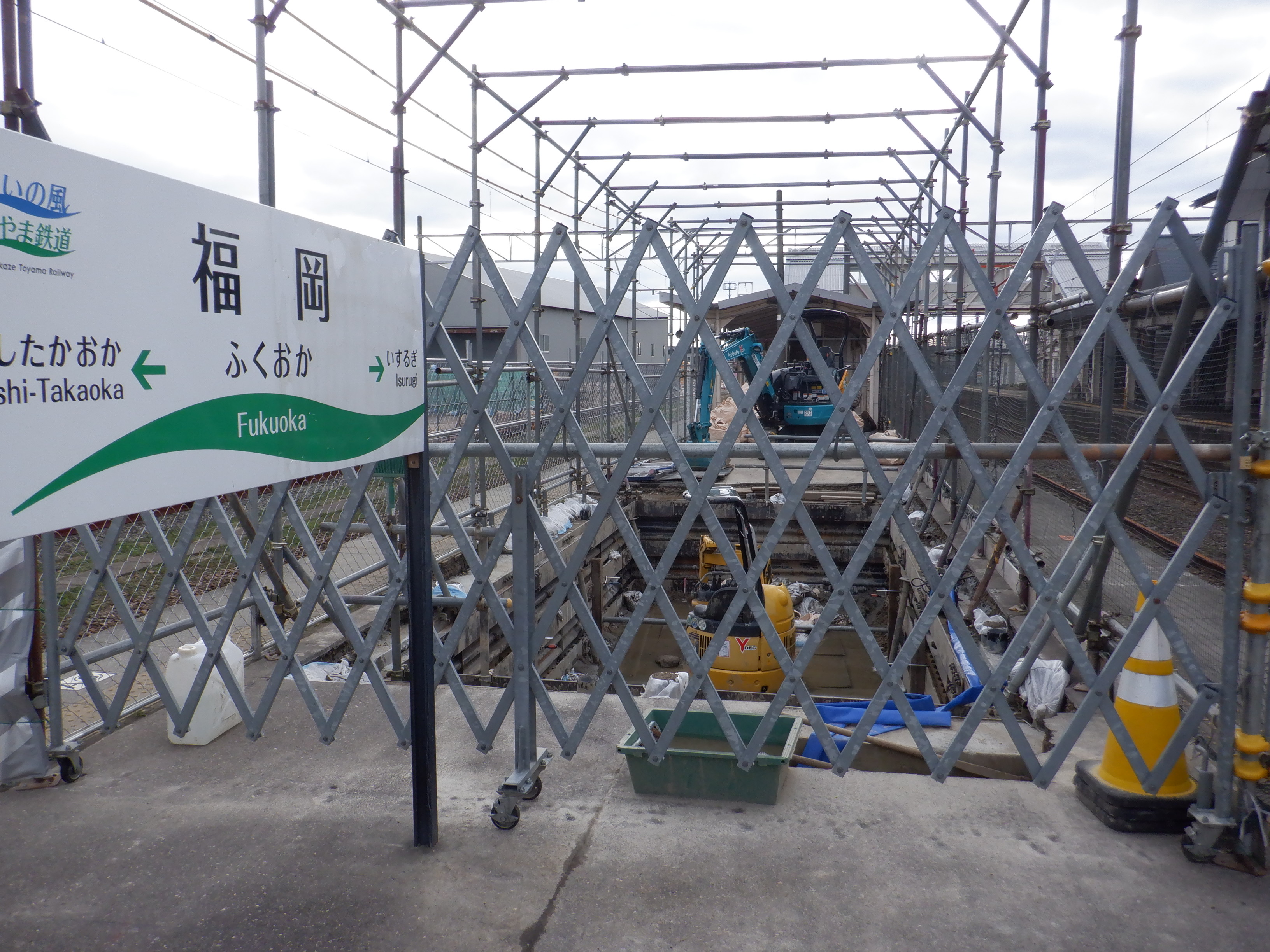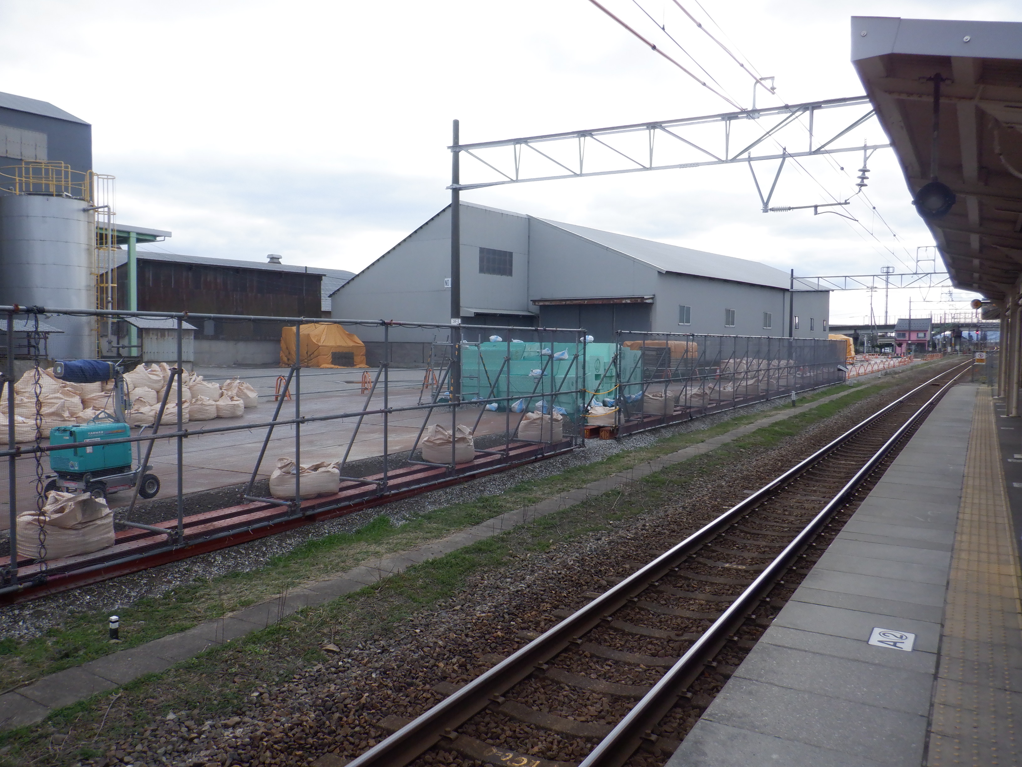 2・3番のりば西高岡駅側のエレベーター跨線橋建設のための囲い。