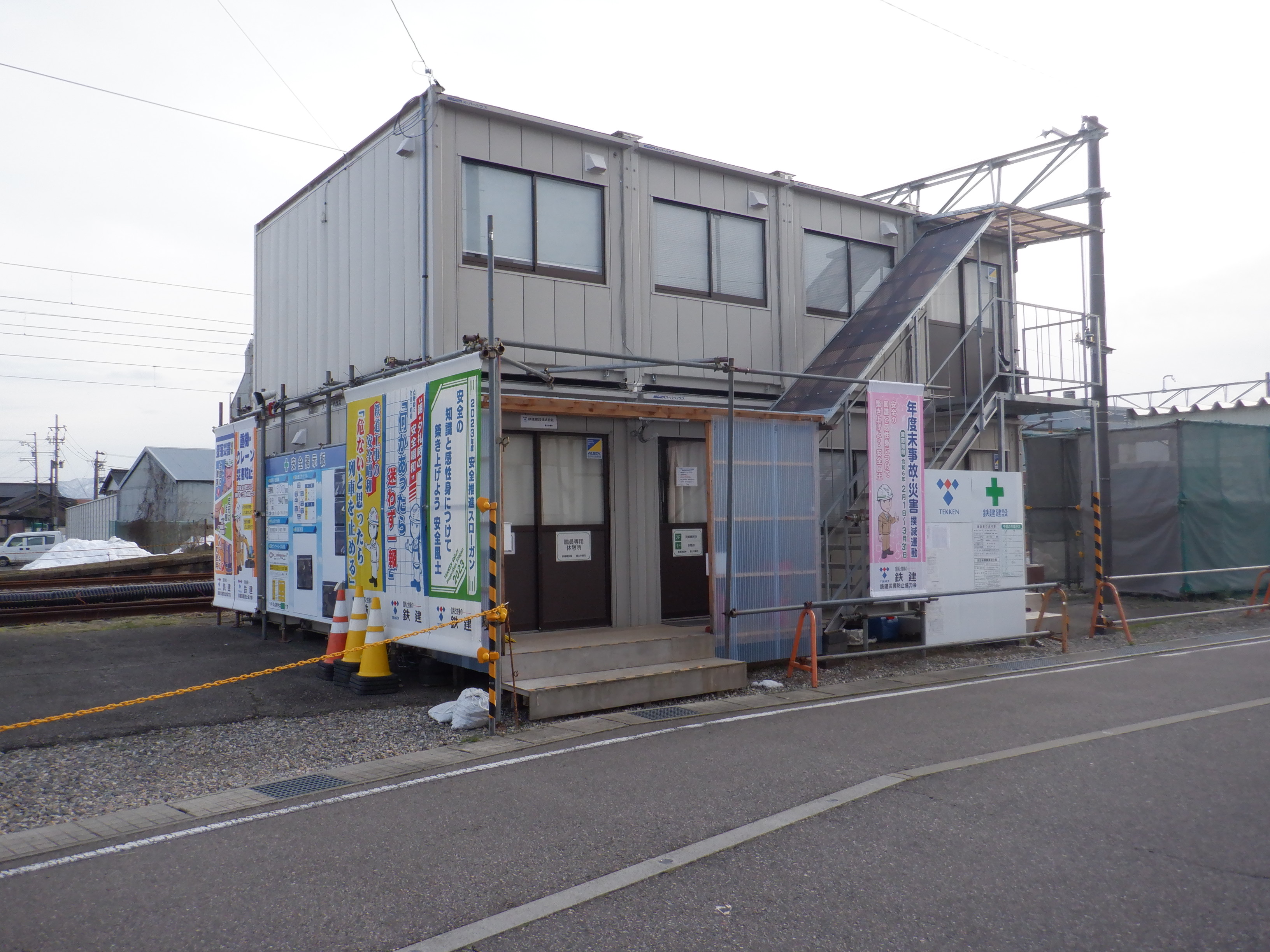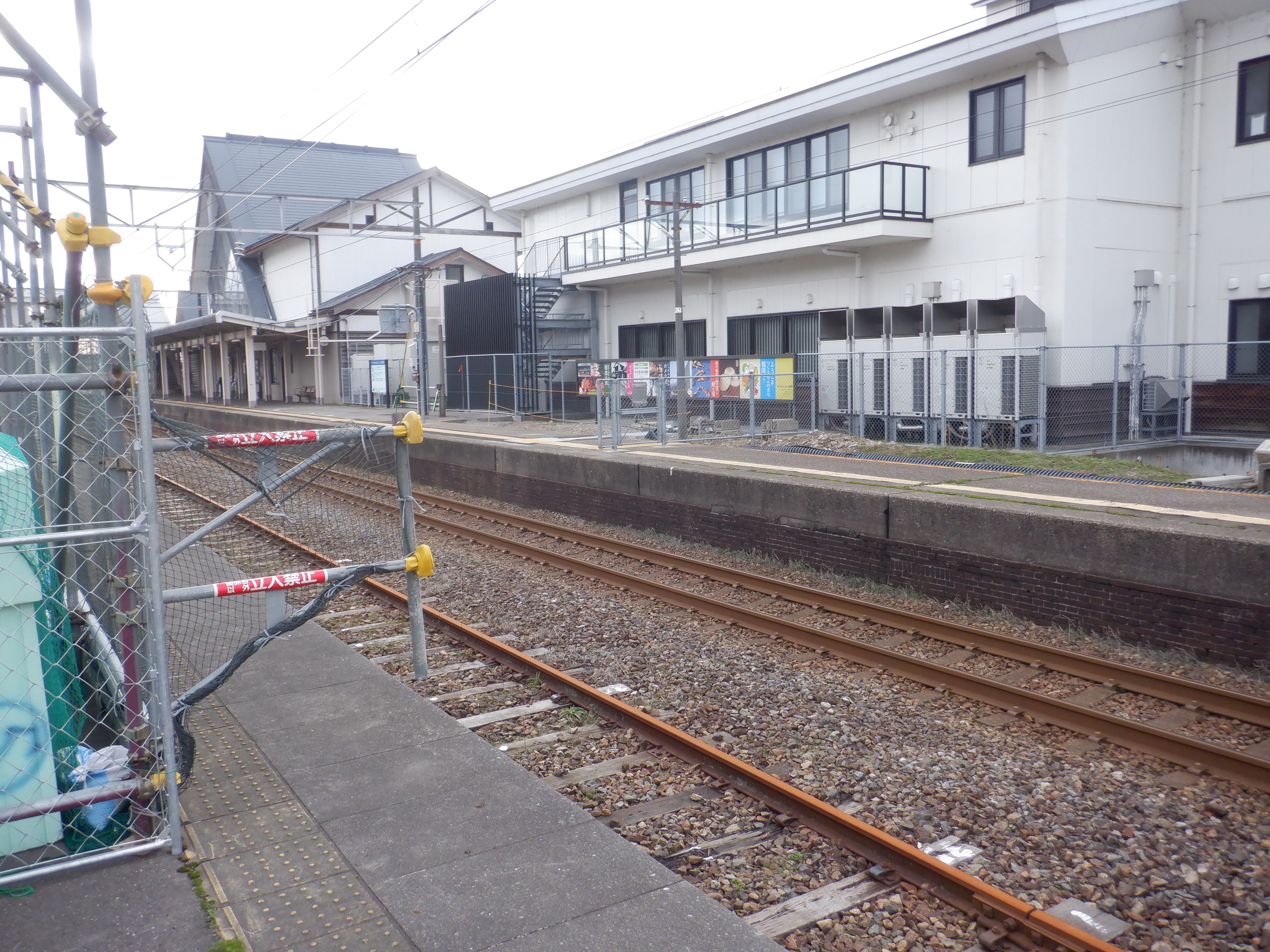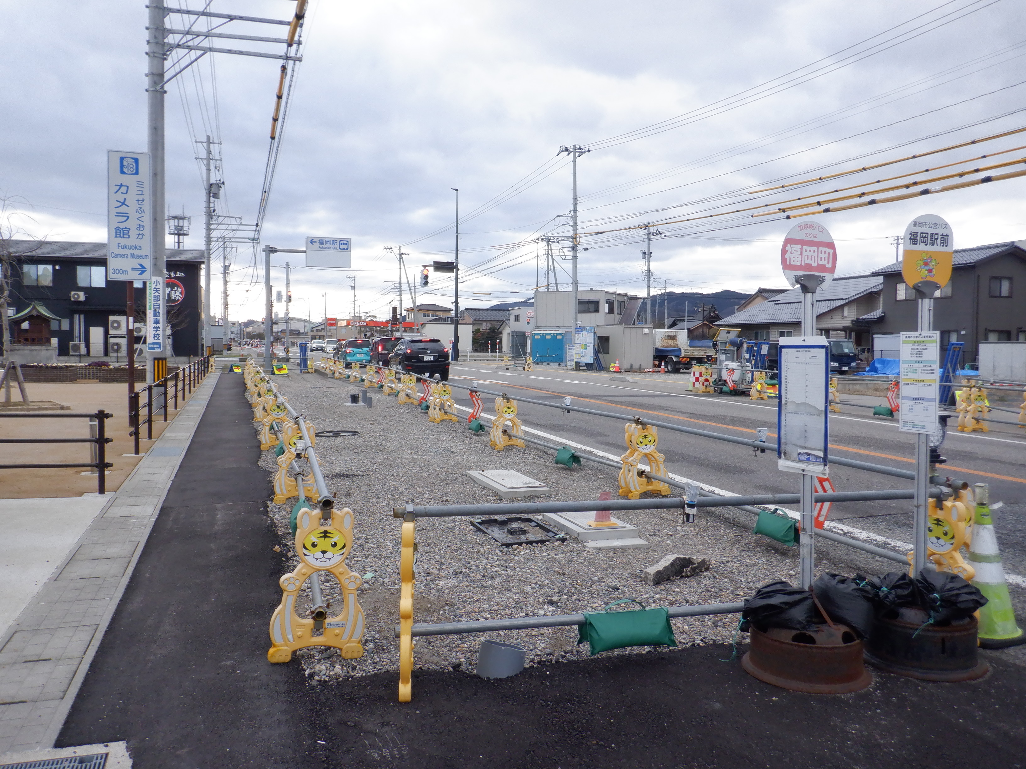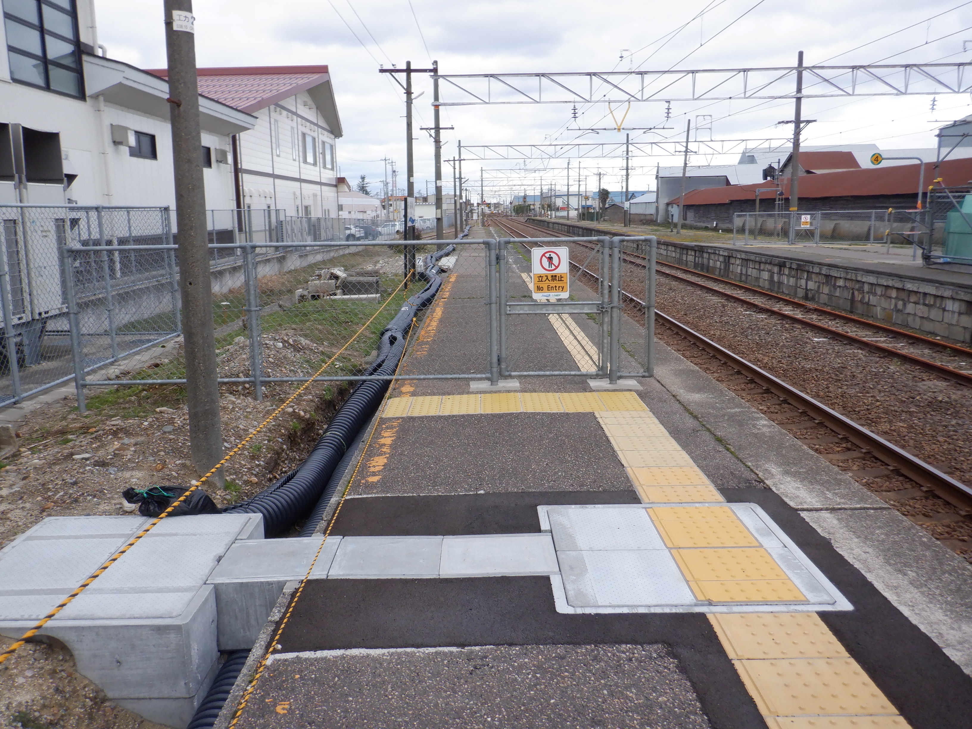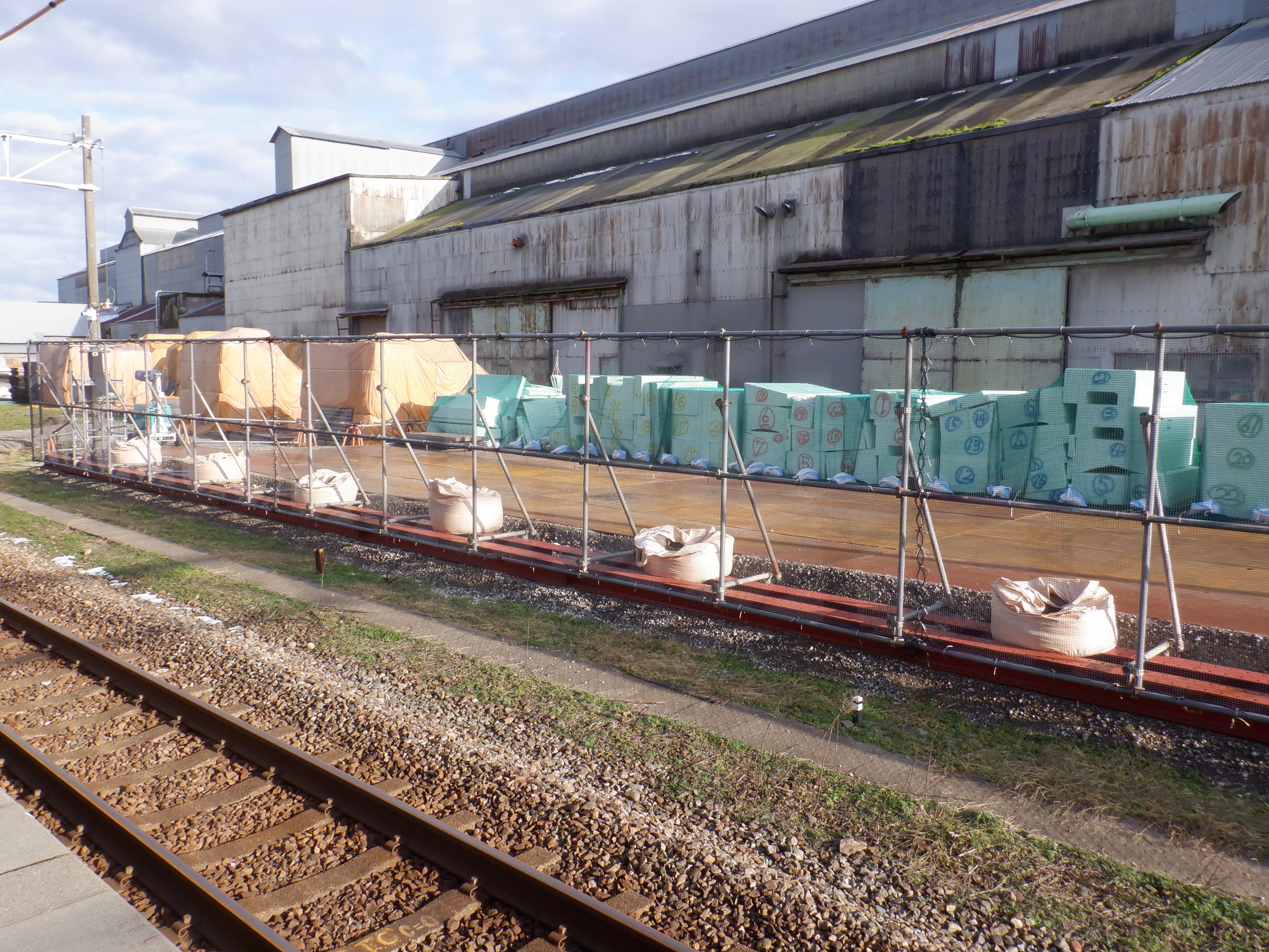 2・3番のりば西高岡駅側のエレベーター跨線橋建設のための囲い。