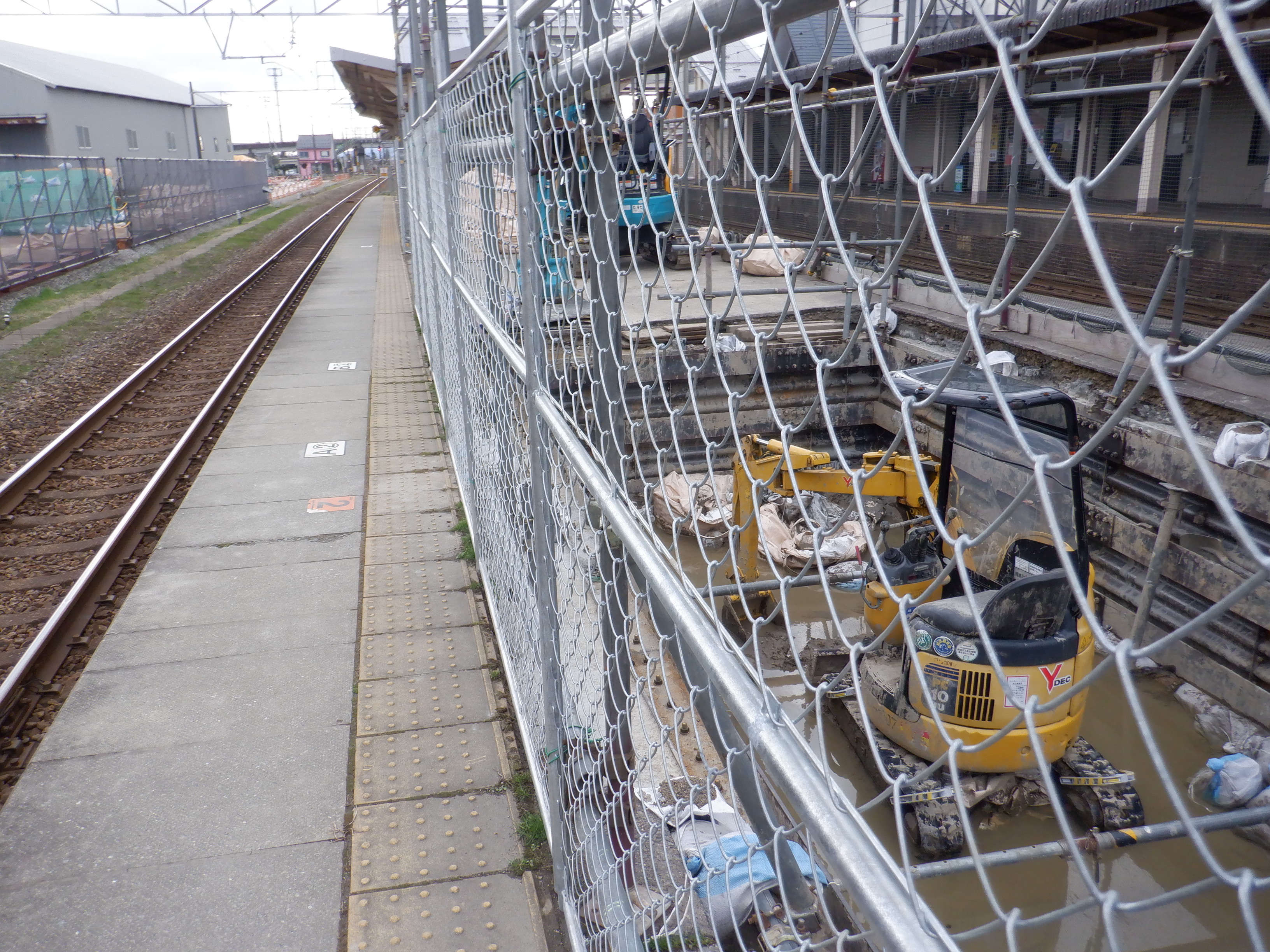 2・3番のりばのエレベーター跨線橋のところは基礎部分の工事が始まっているようで、大きく掘られて重機が入っていました。