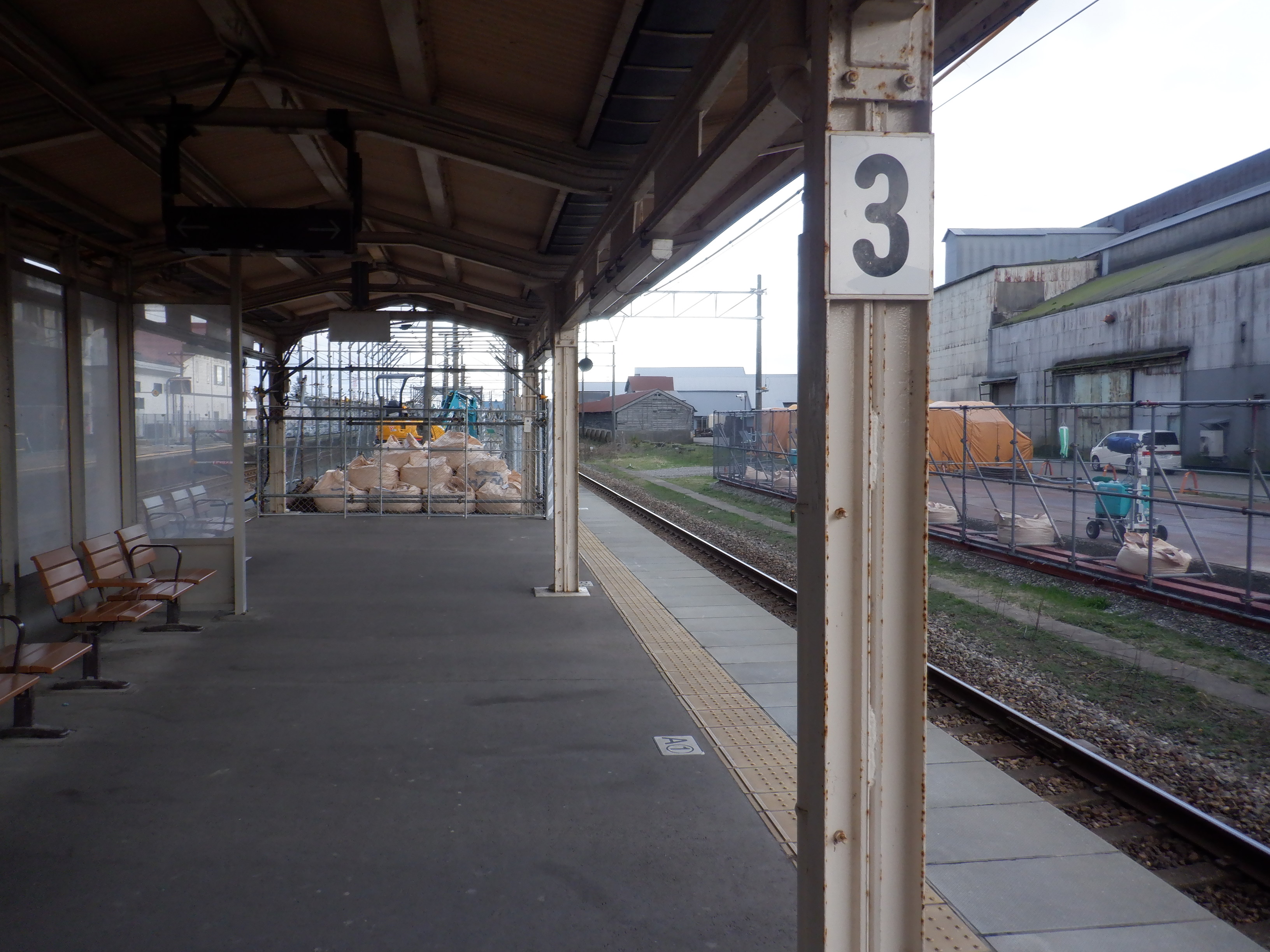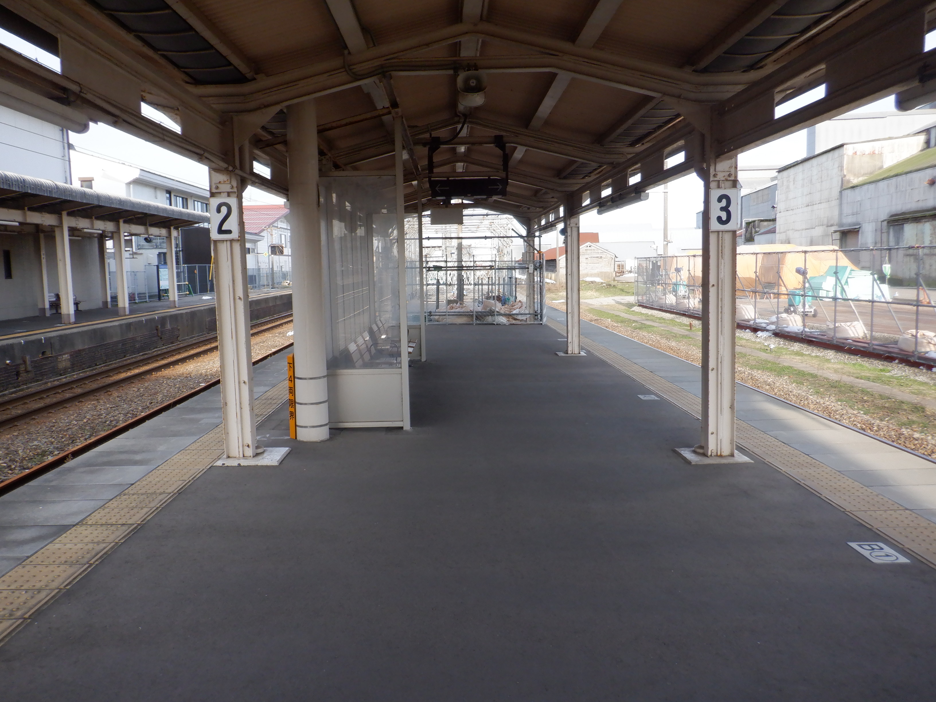2・3番のりば上屋付近から見た1番のりば西高岡駅側。