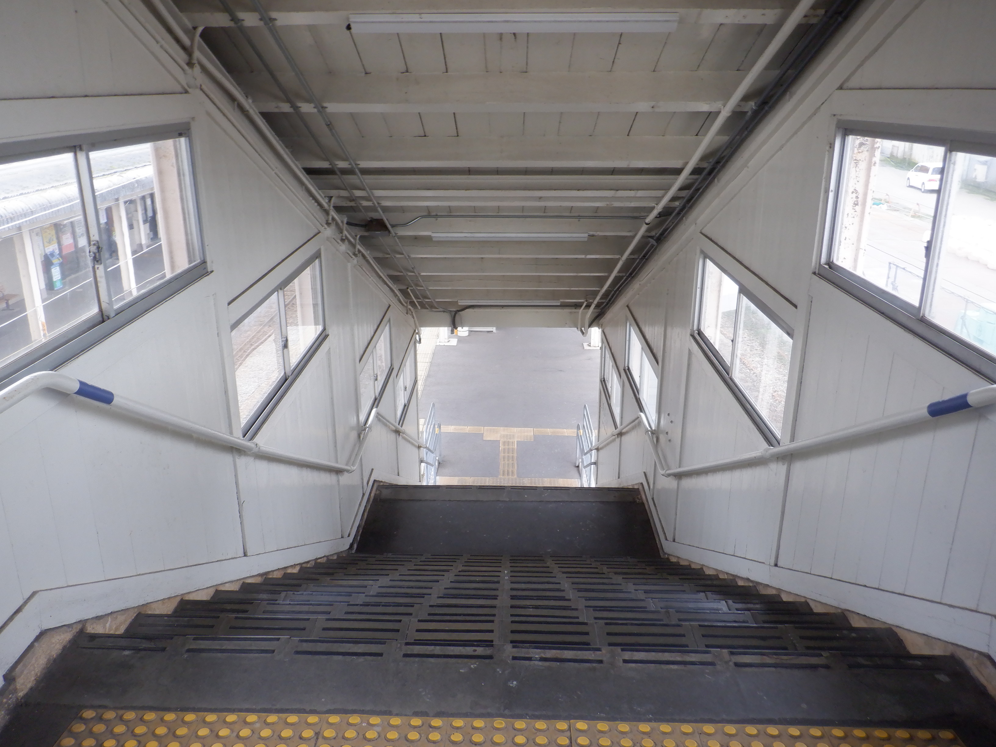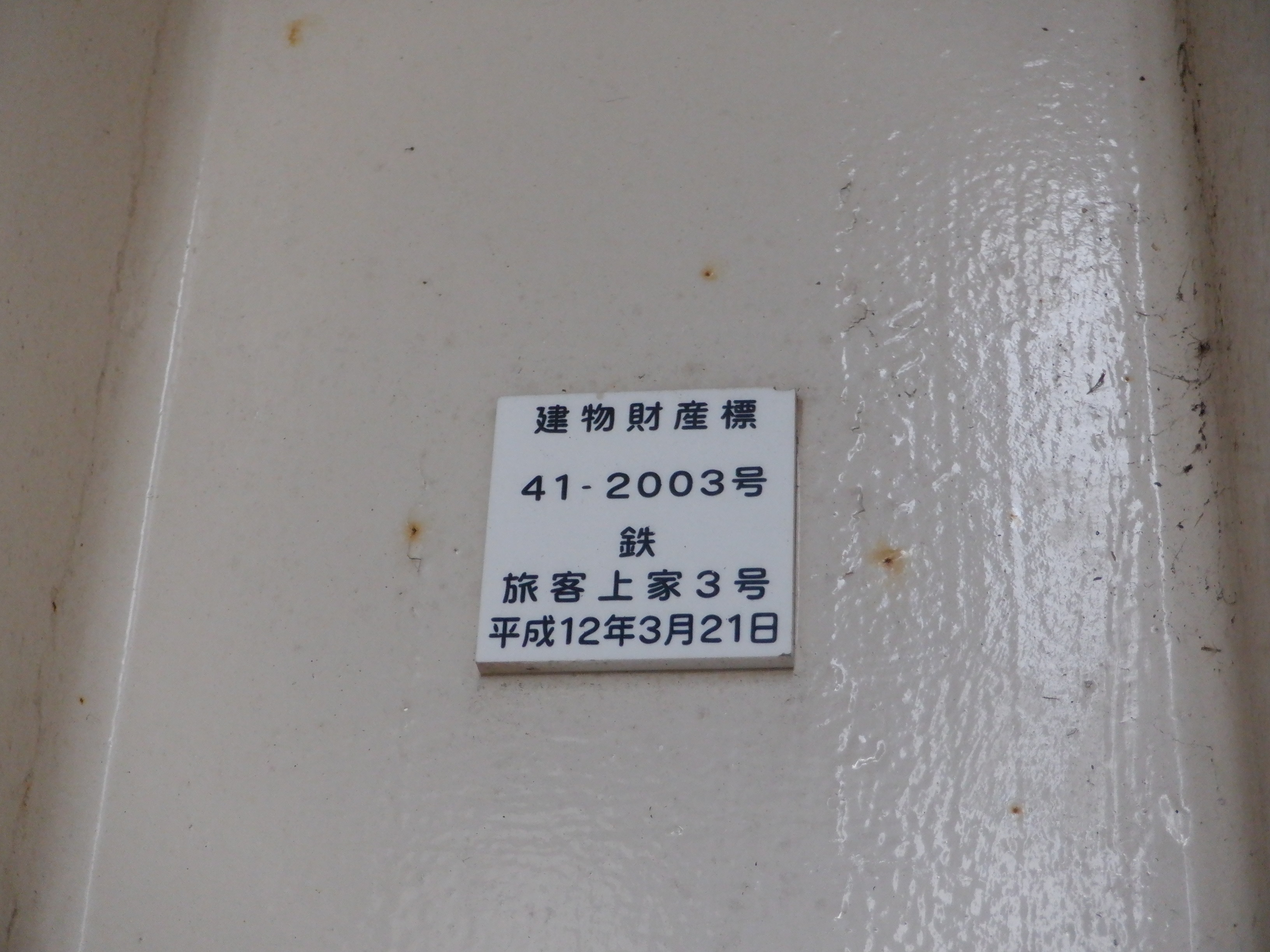3番のりば側跨線橋階段に貼ってある番線標など。