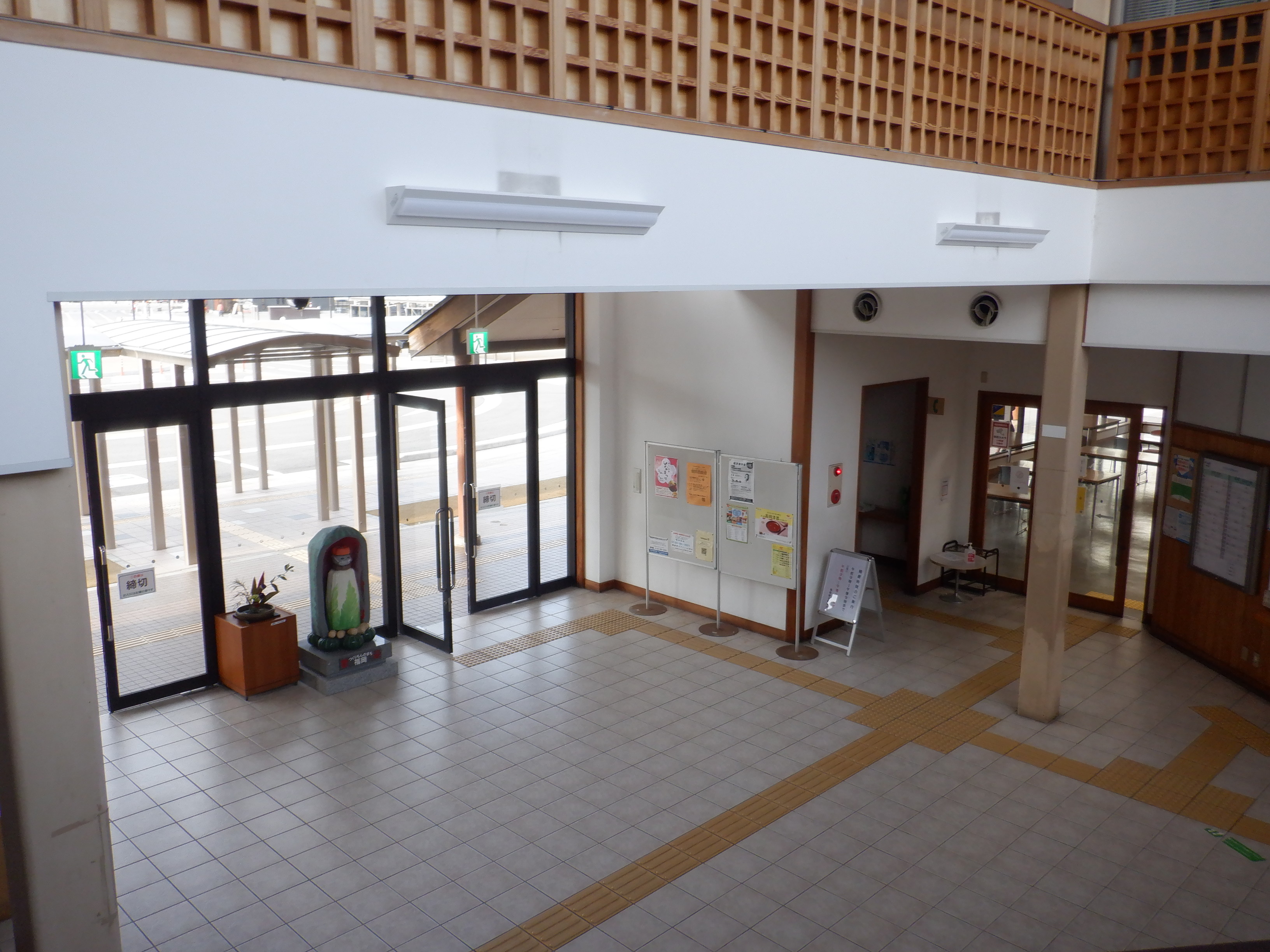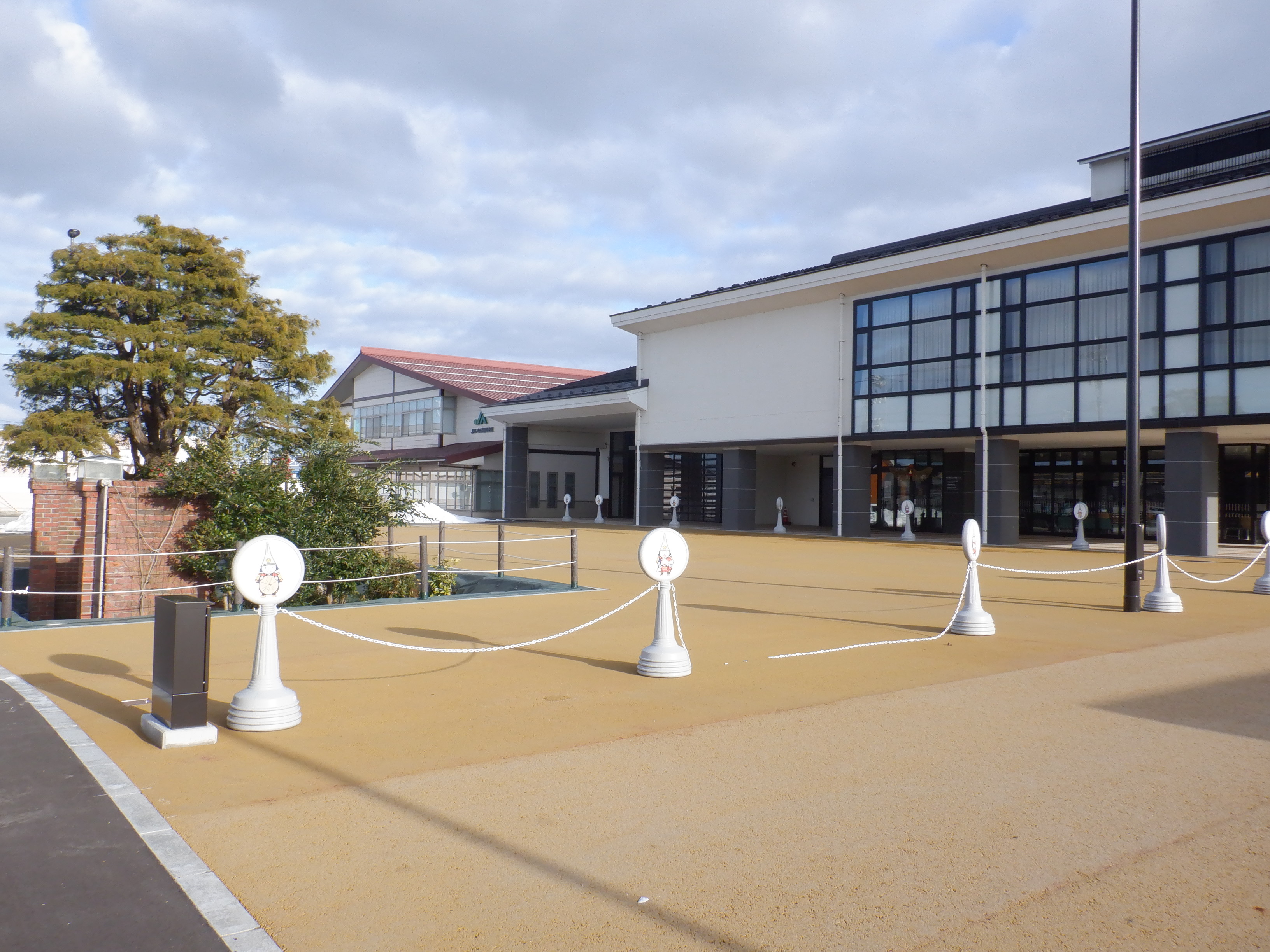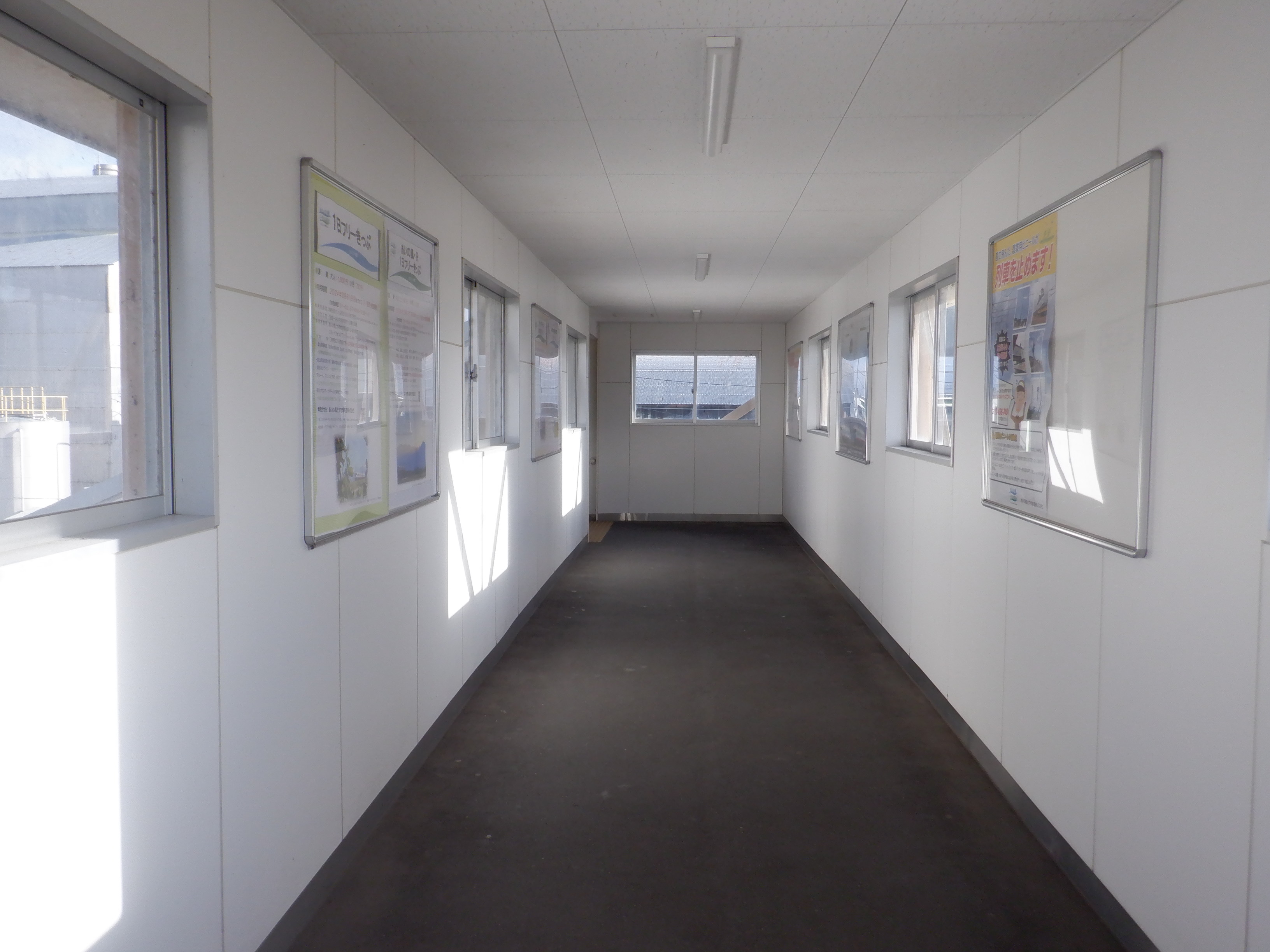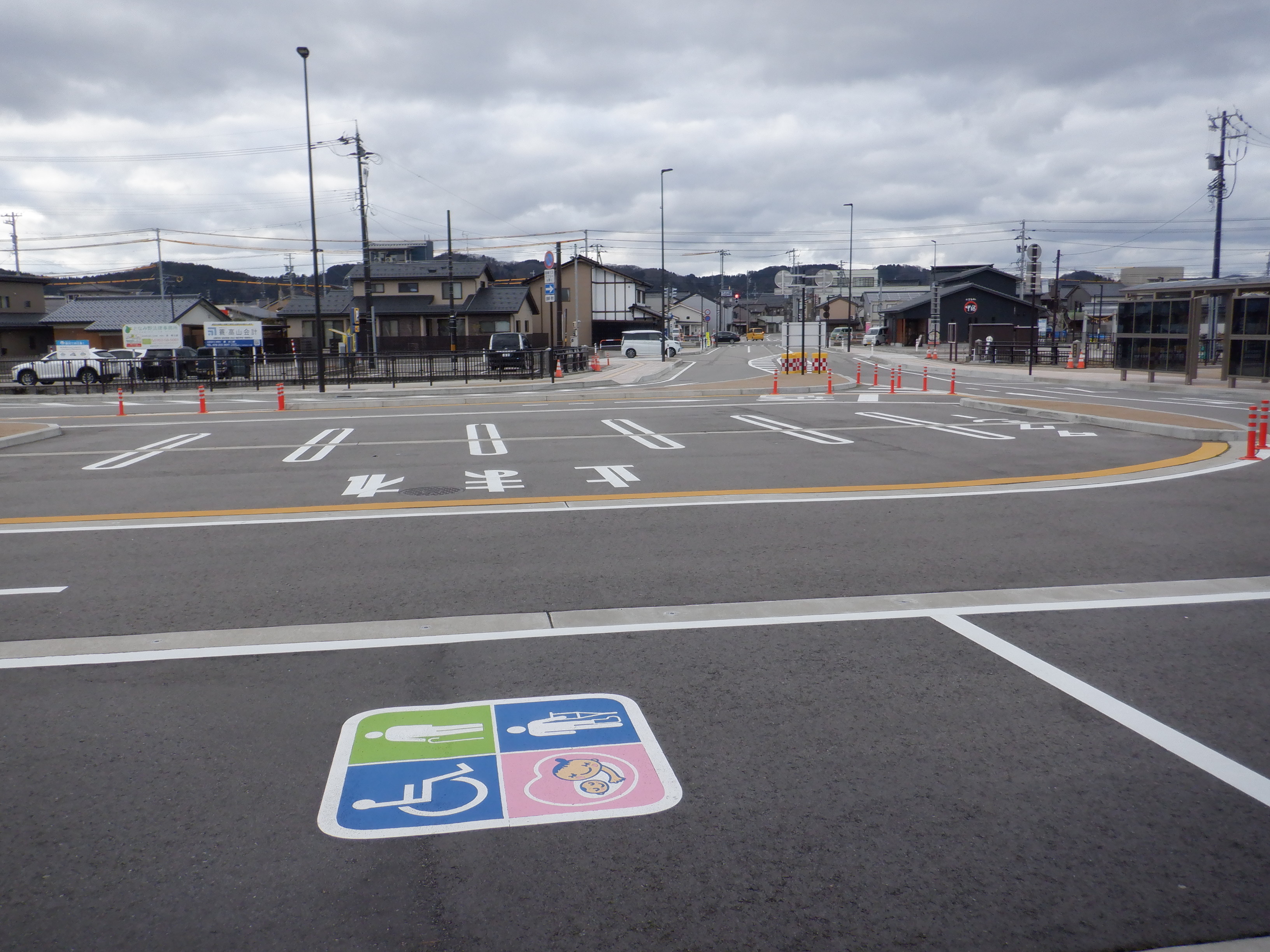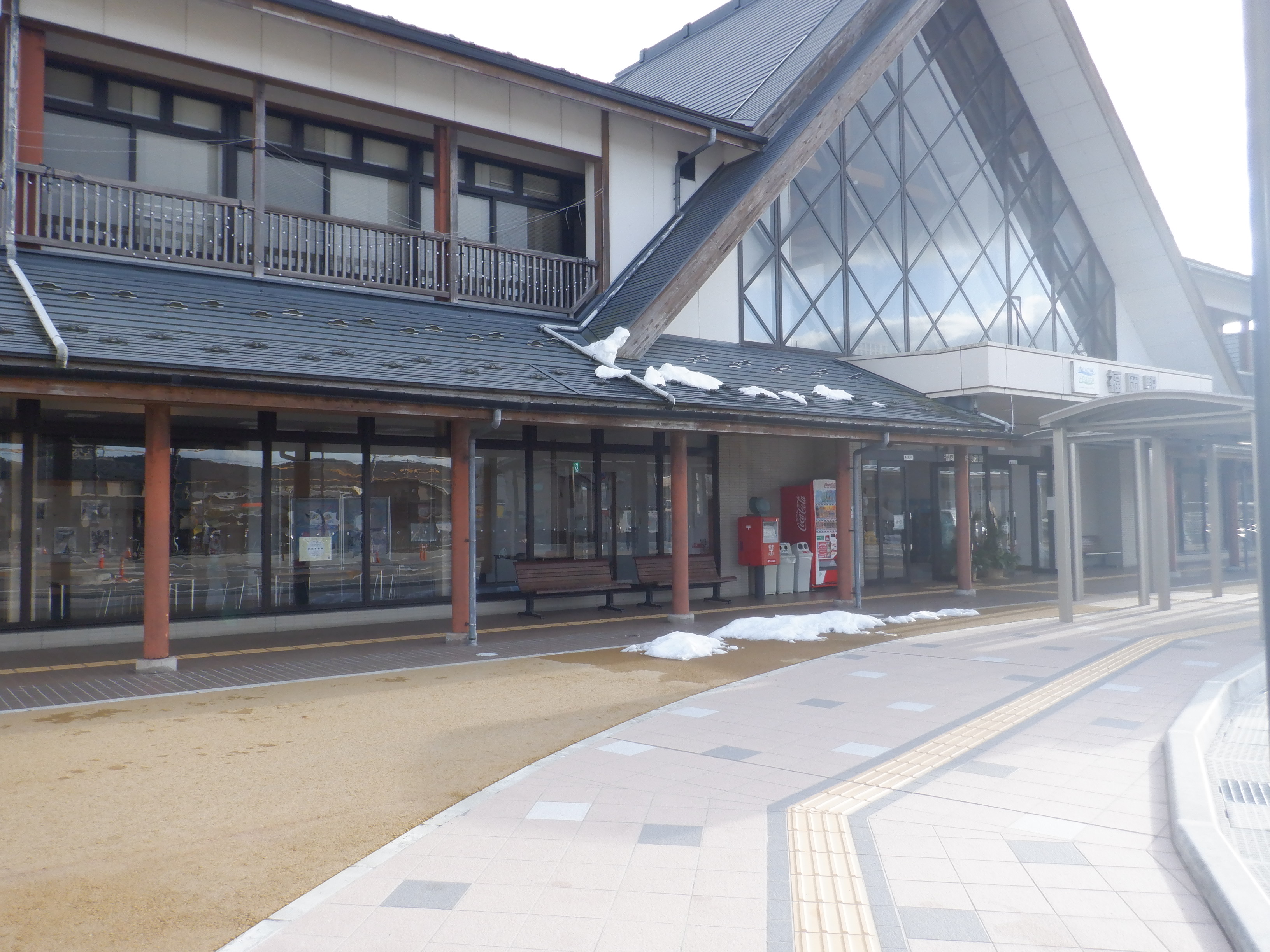 駅舎とにぎわい交流館の前の間で、エレベーター跨線橋ができるあたり。