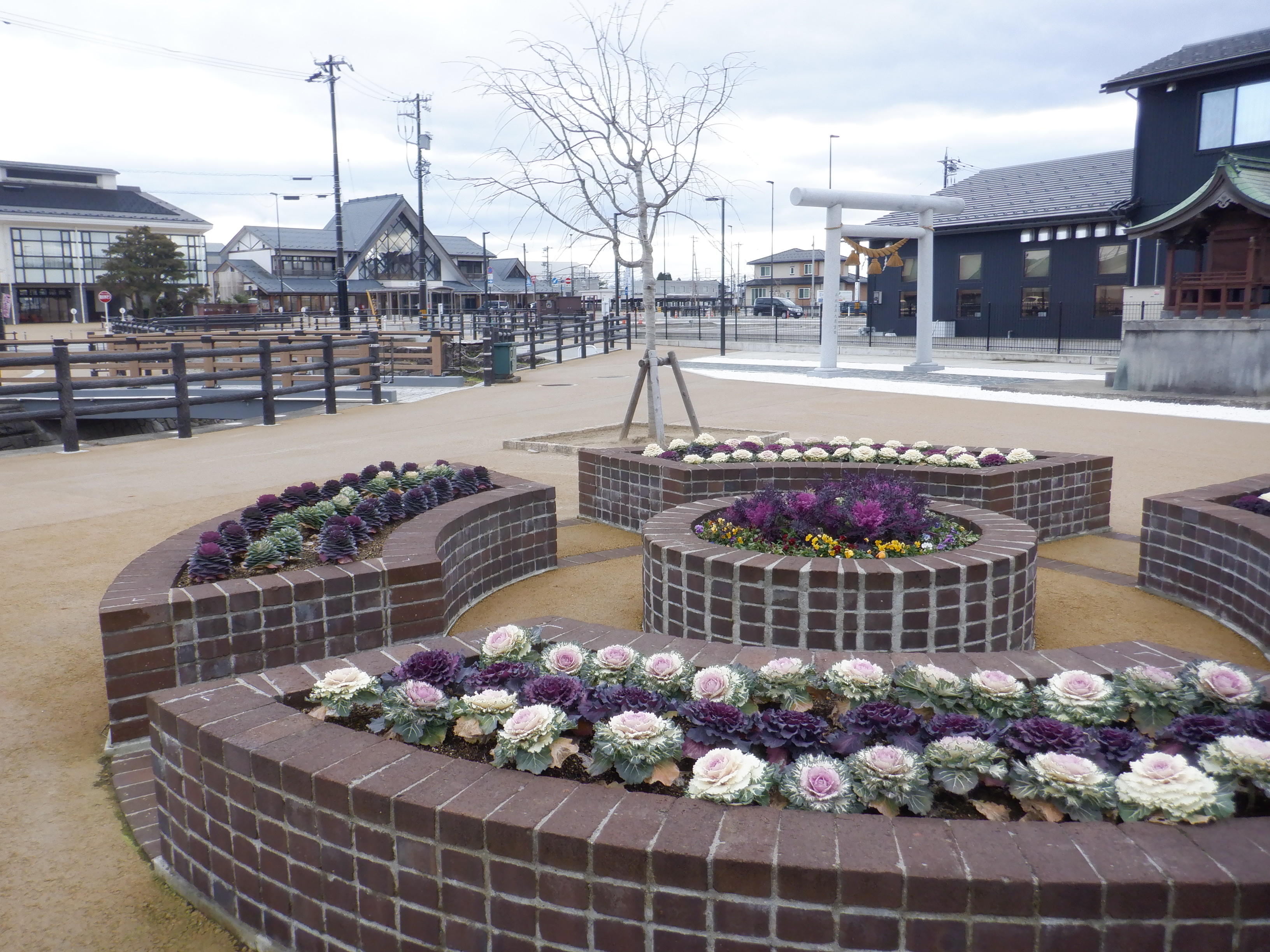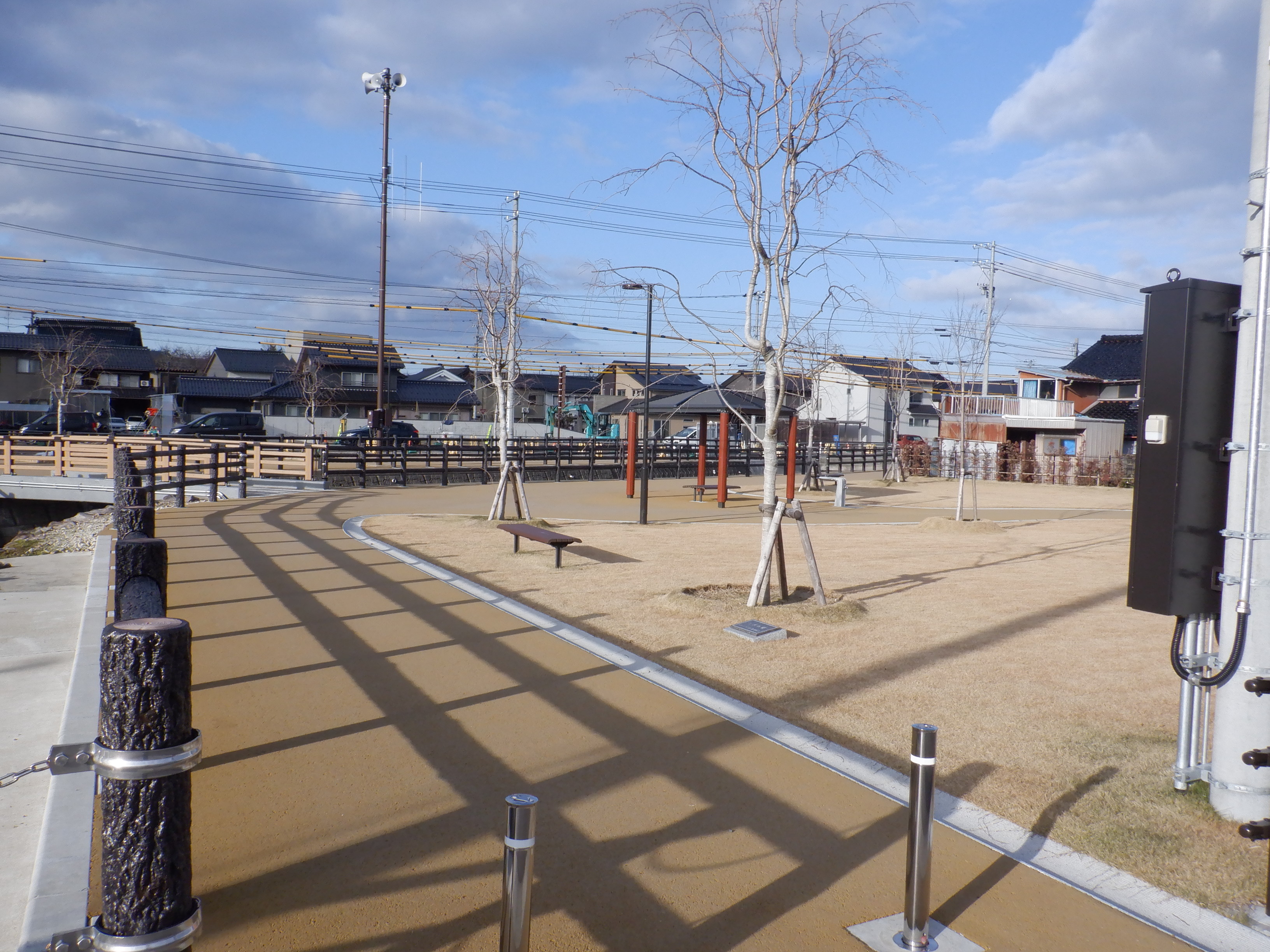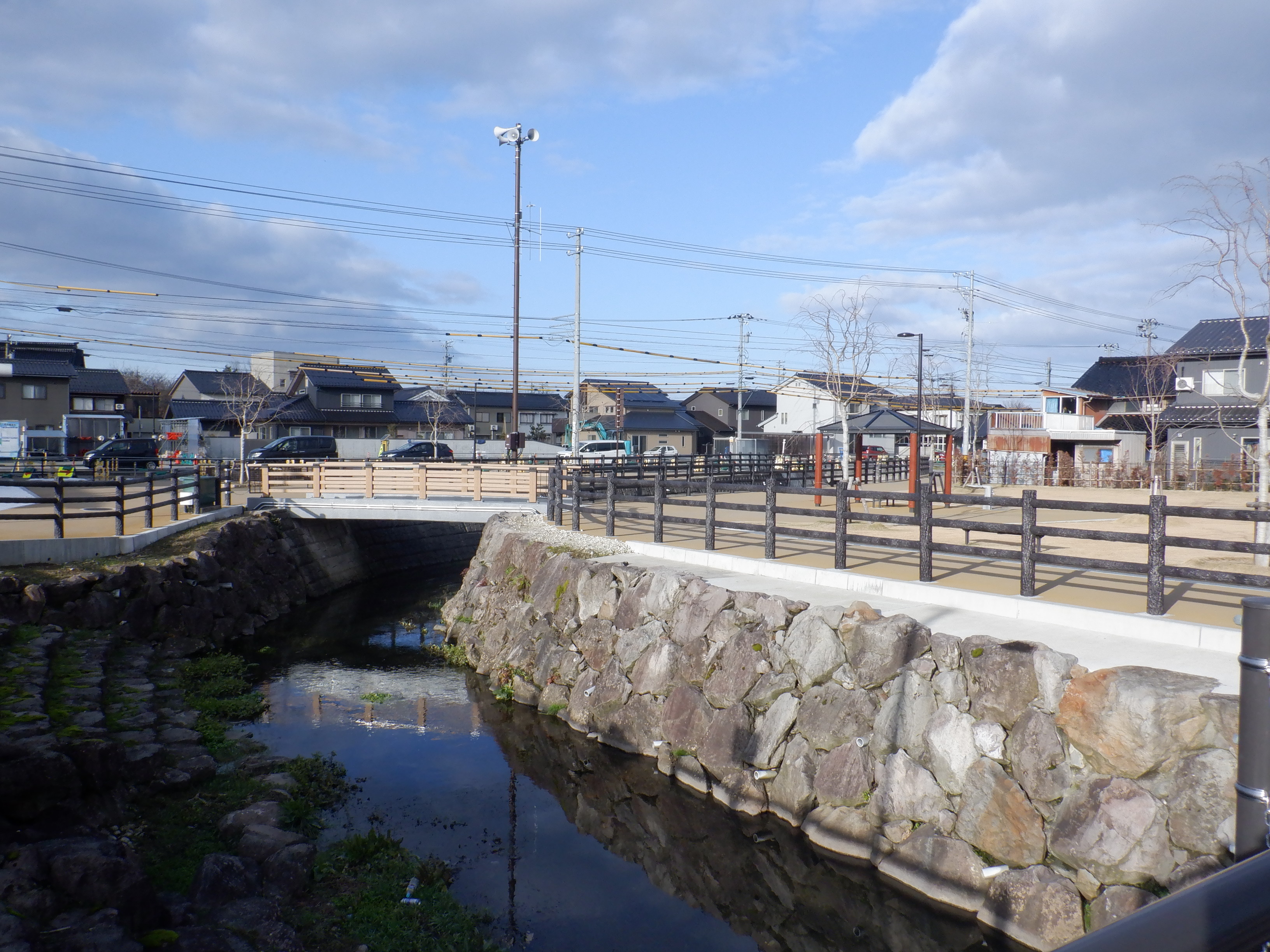 にぎわい交流館の前の広場と蓑川を挟んだ空間。こちらもこのあと整備されます。