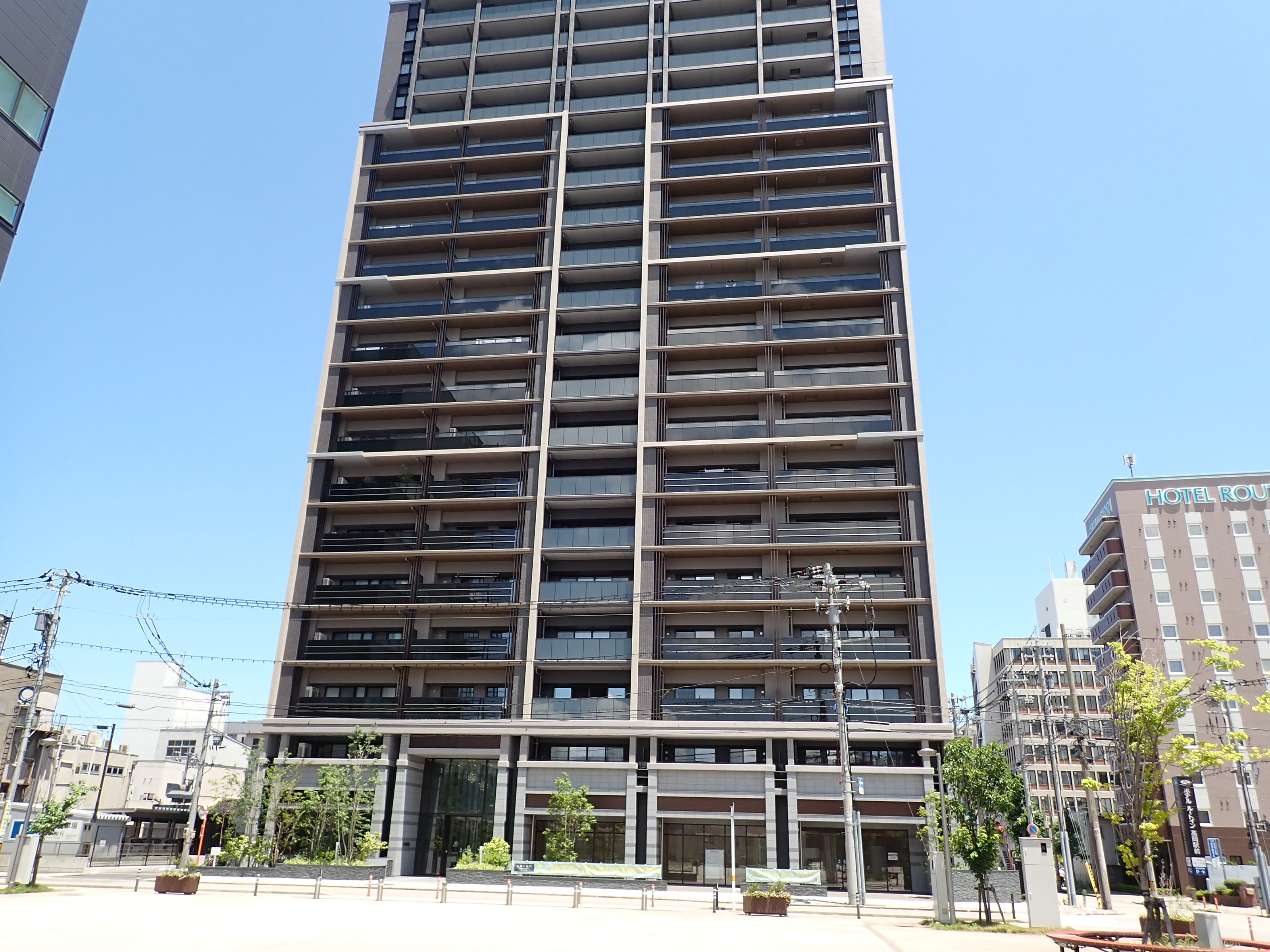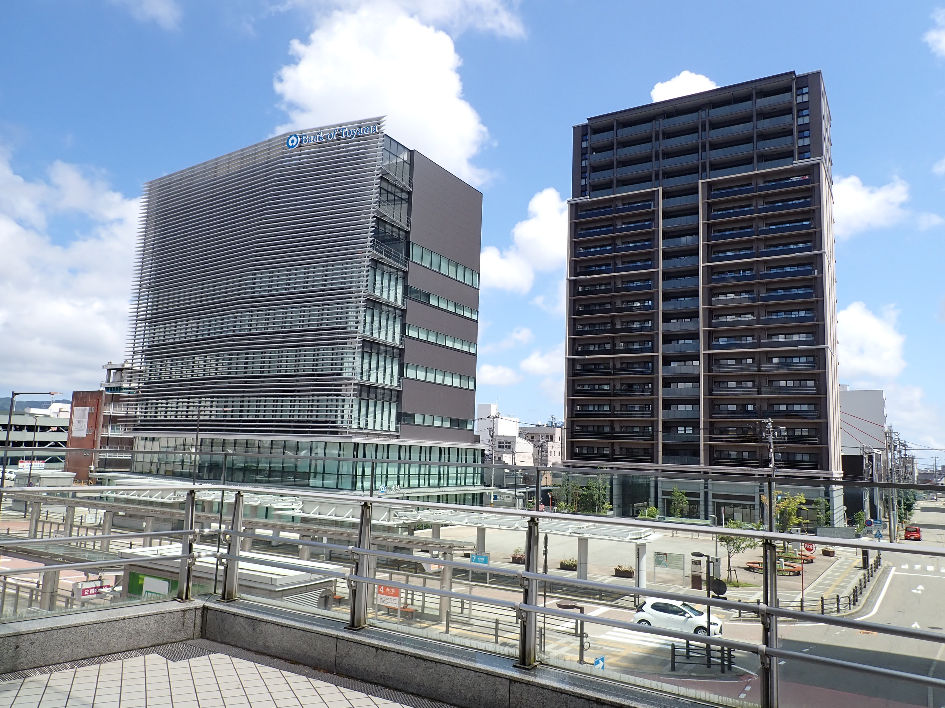 アドニスビル跡地のマンションと富山銀行。