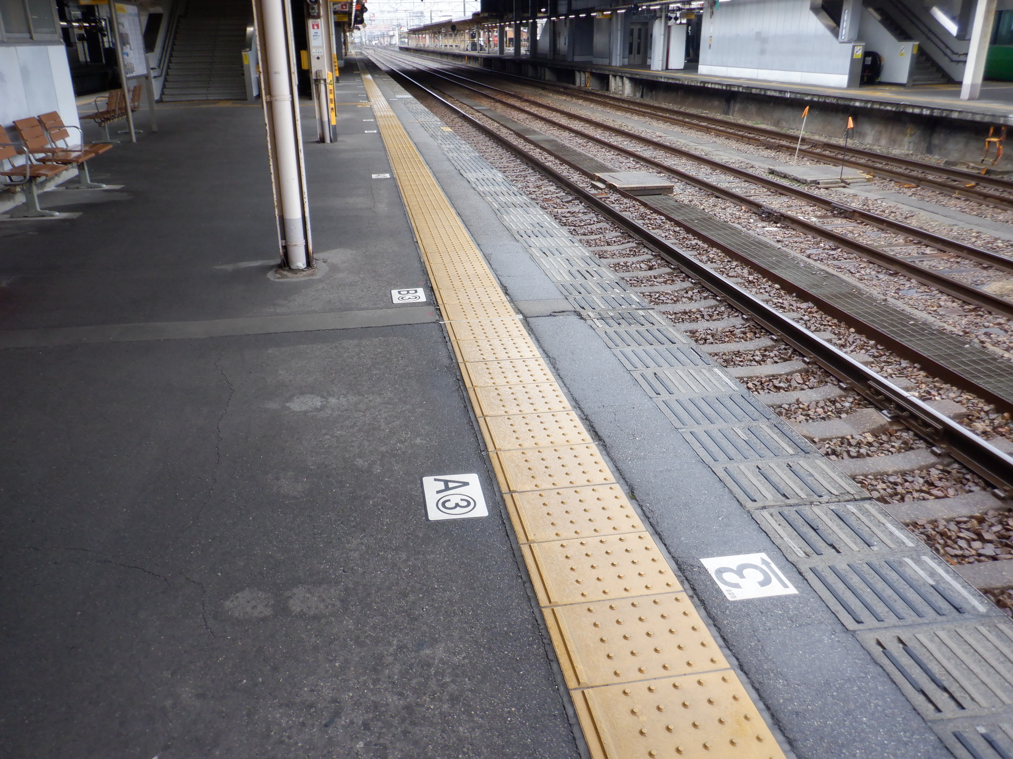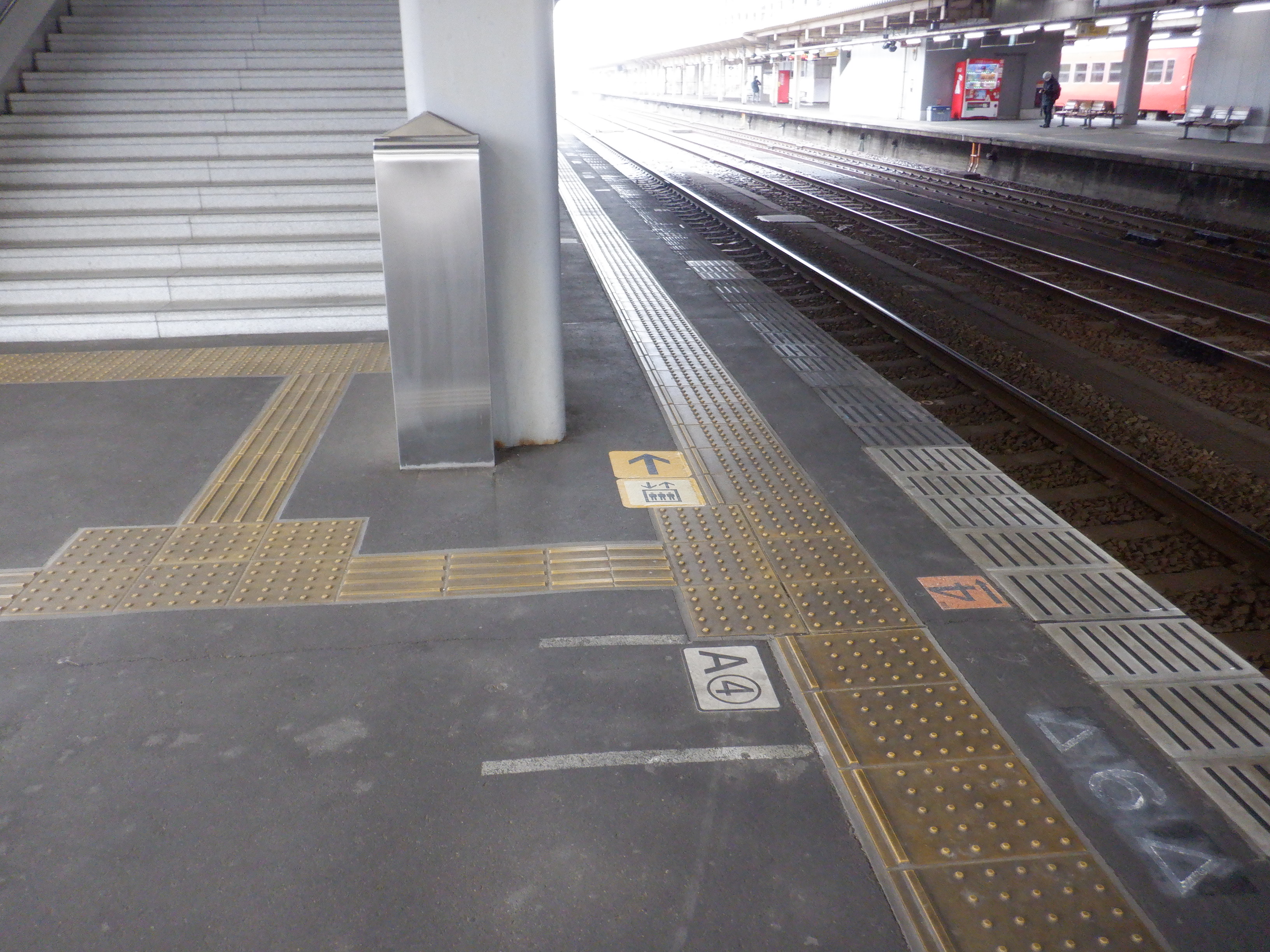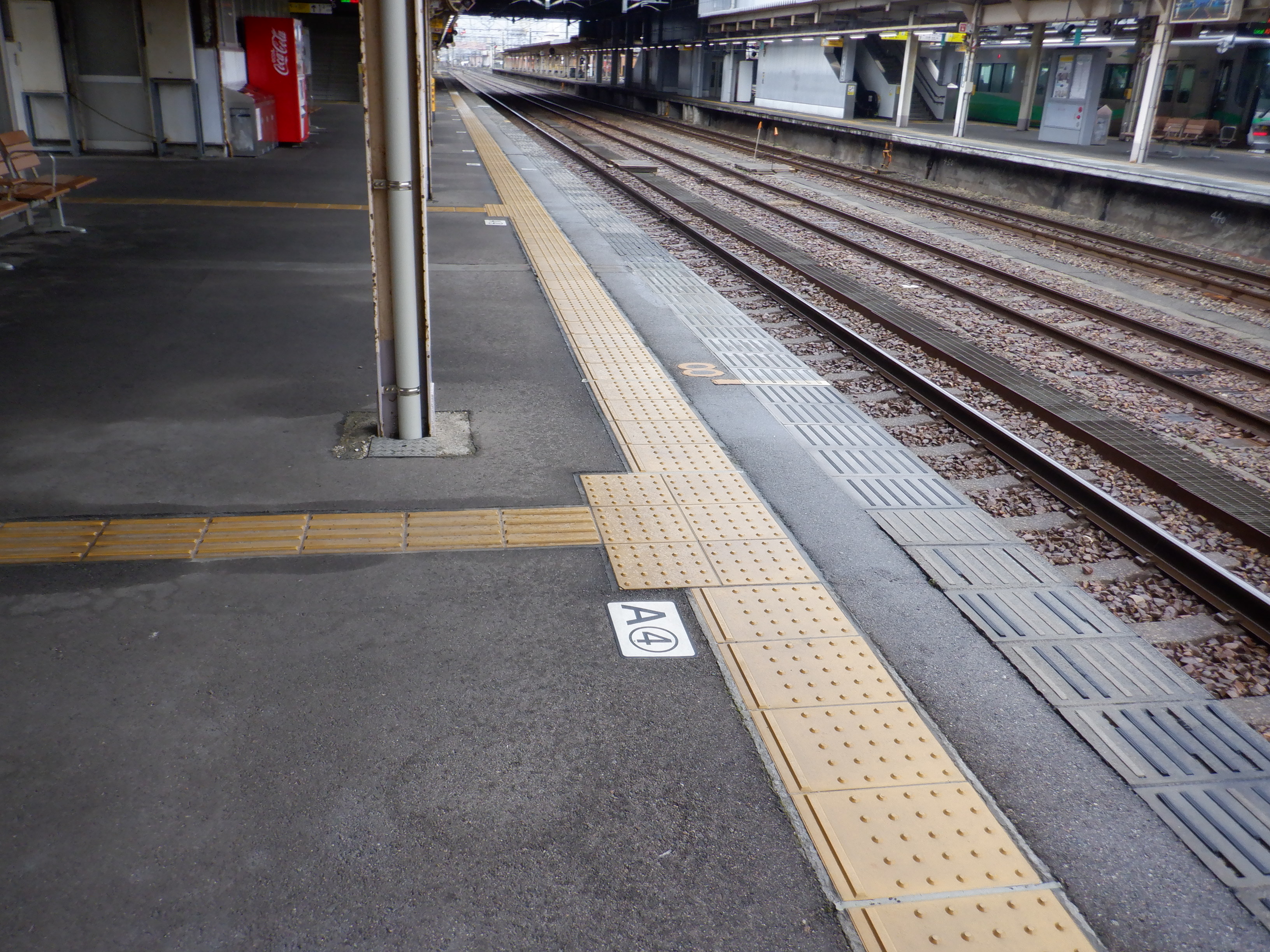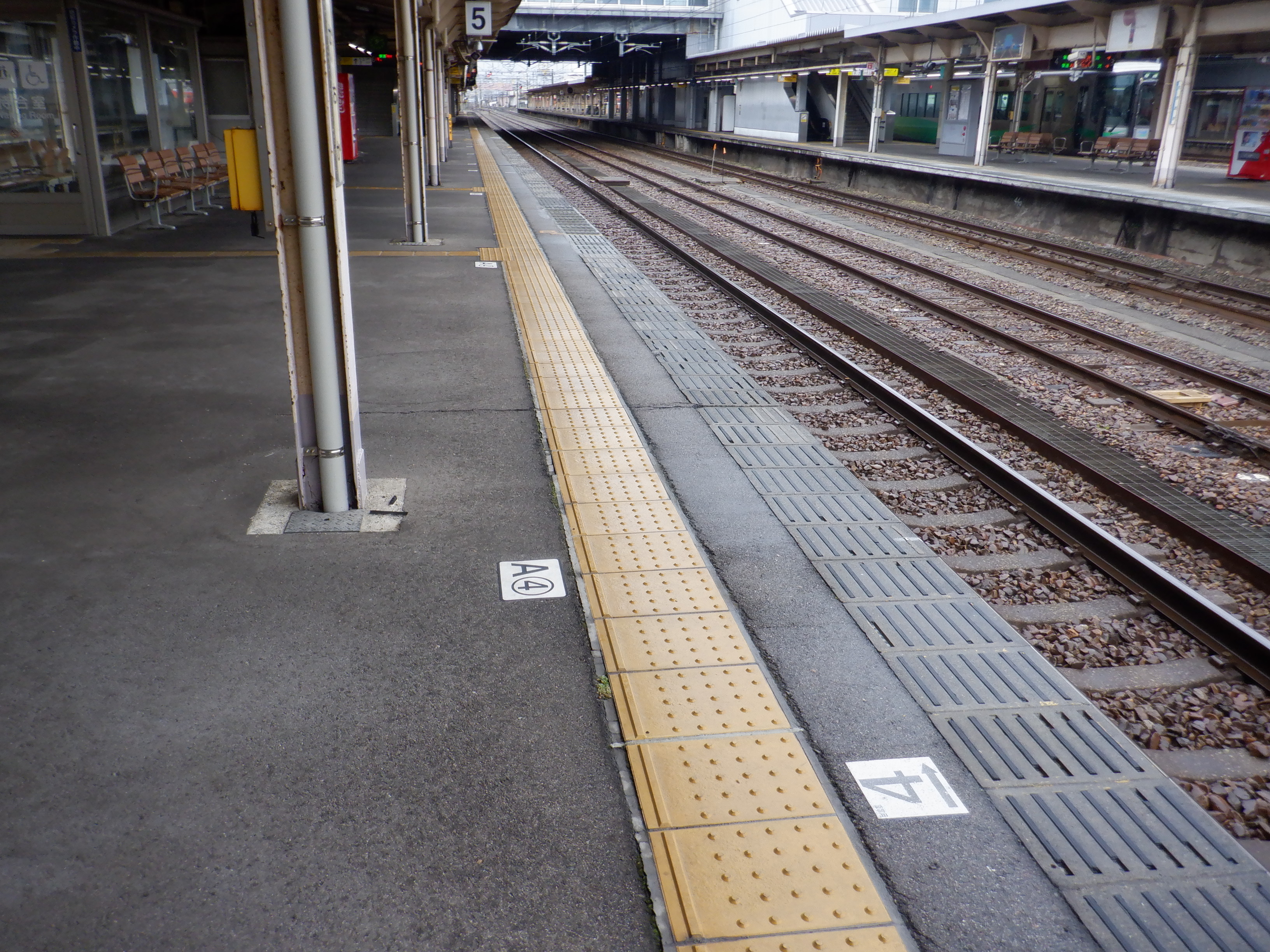 縁部がきれいになった4番のりば。その向かい側、5番のりばの階段のところに柱の番線標が見えませんが、次回変化があります。