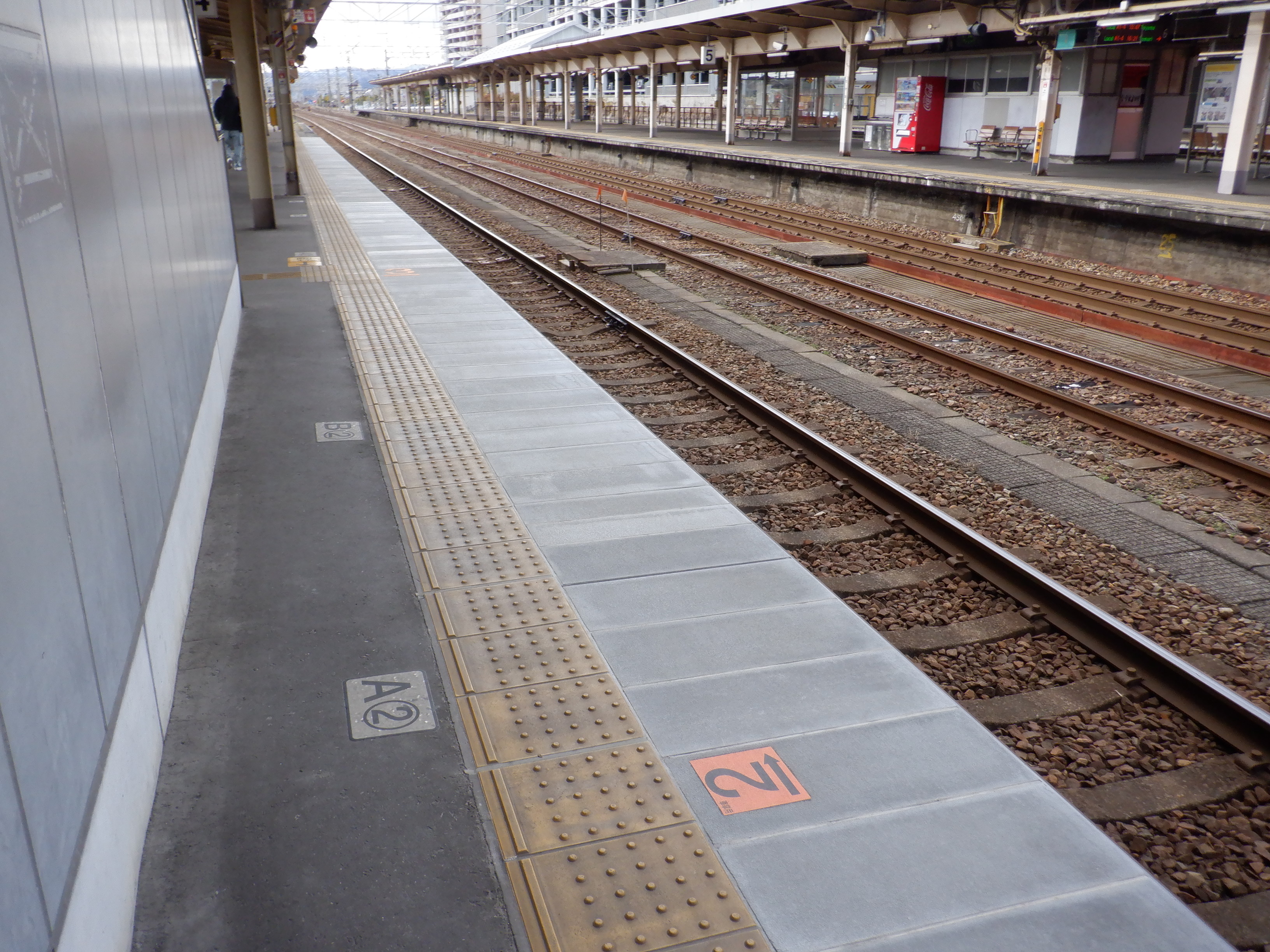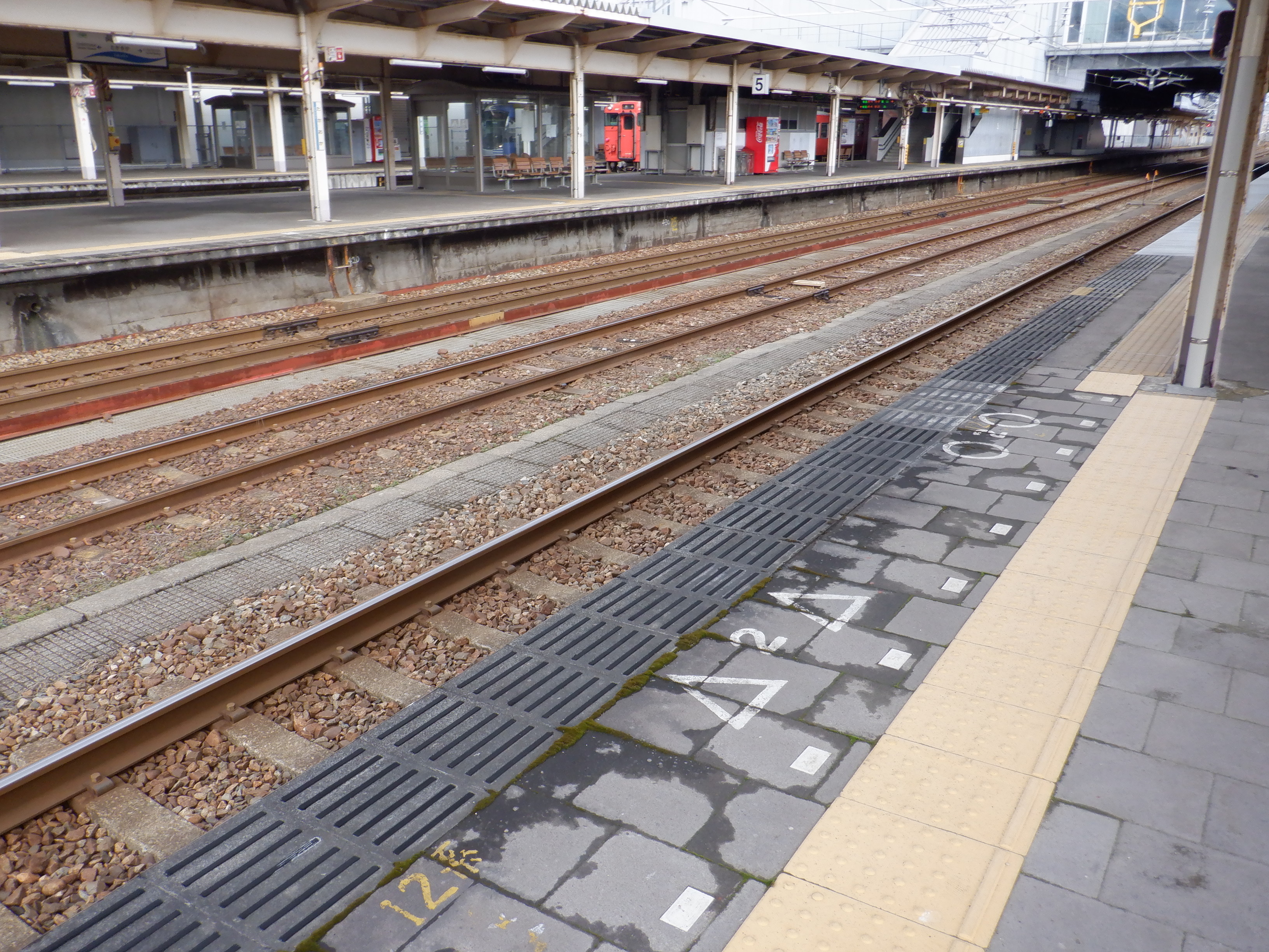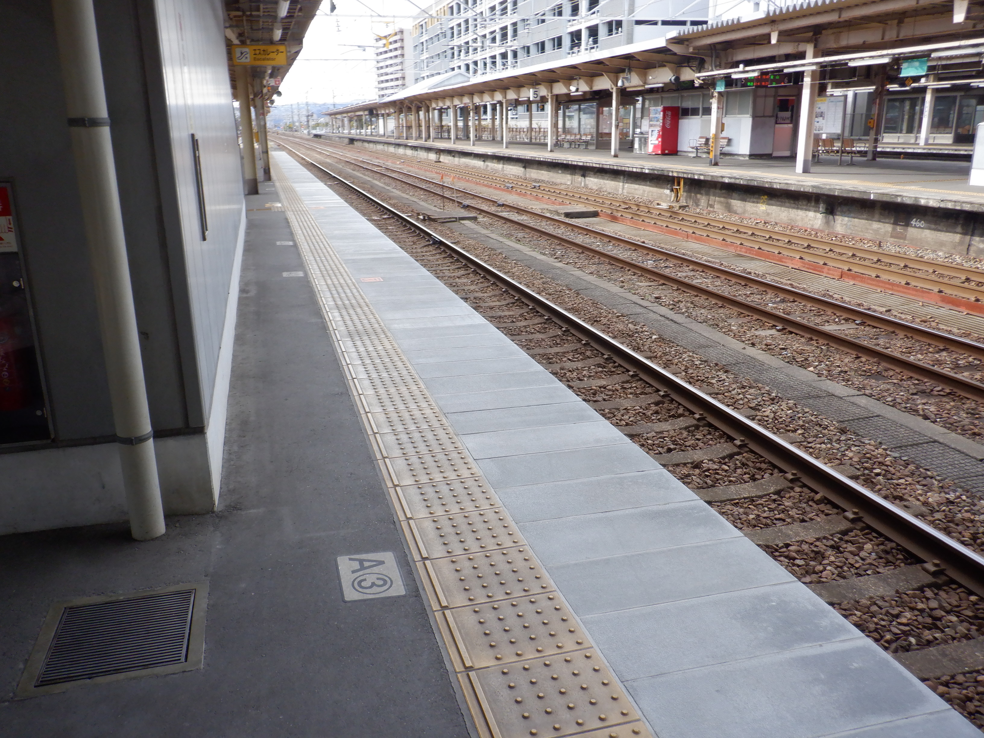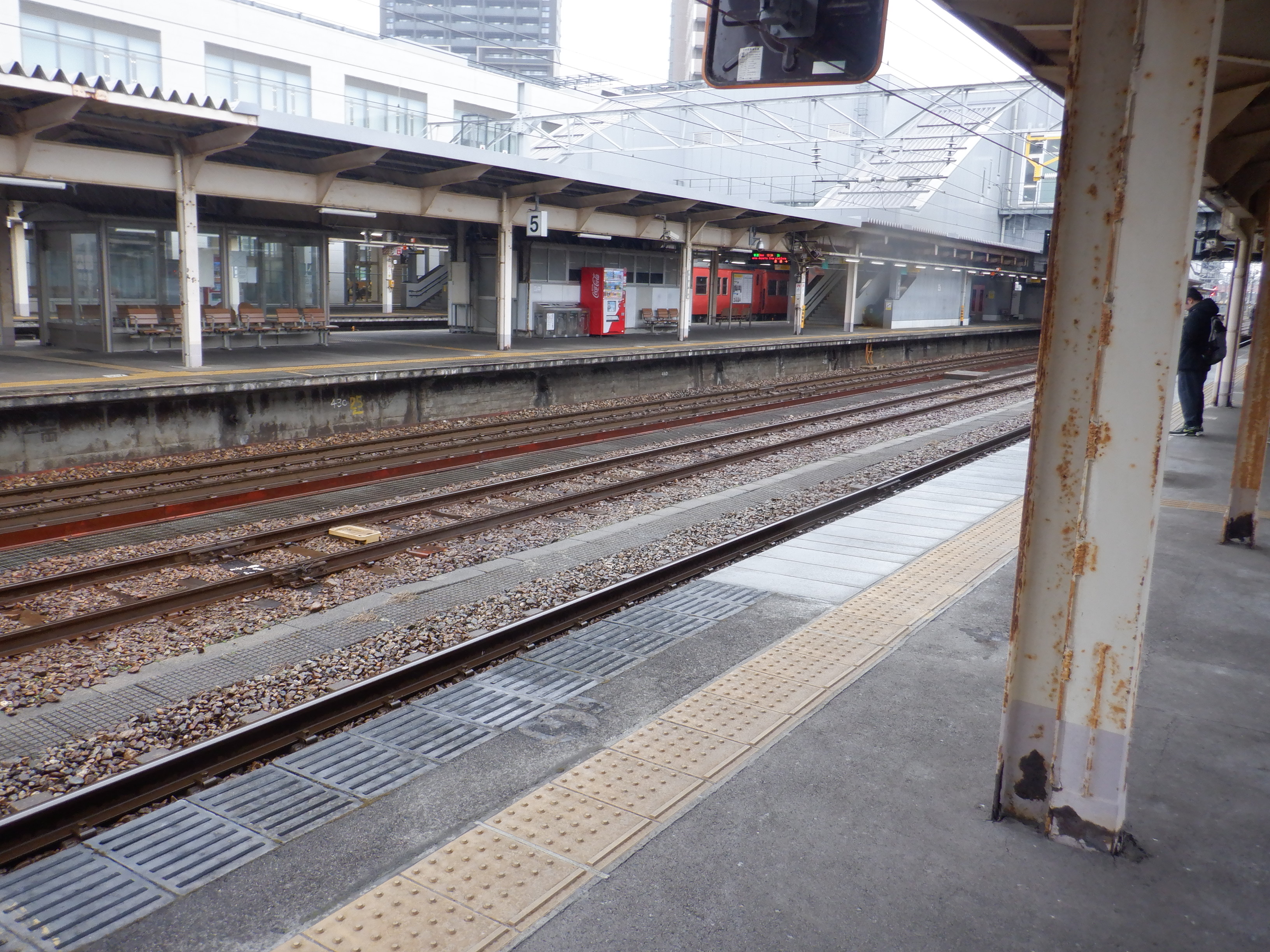 縁部がきれいになった4番のりば。その向かい側、5番のりばの階段のところに柱の番線標が見えませんが、次回変化があります。