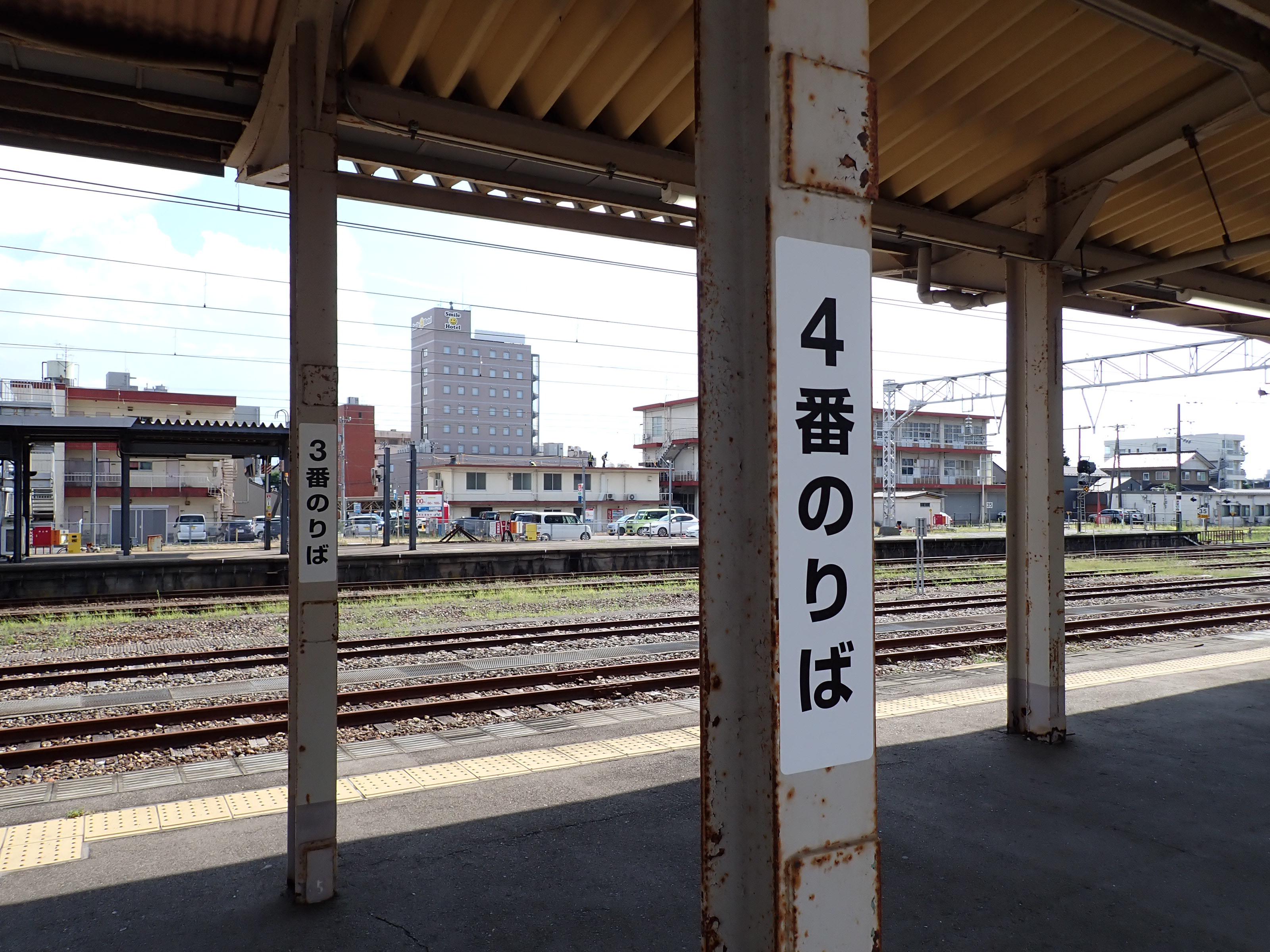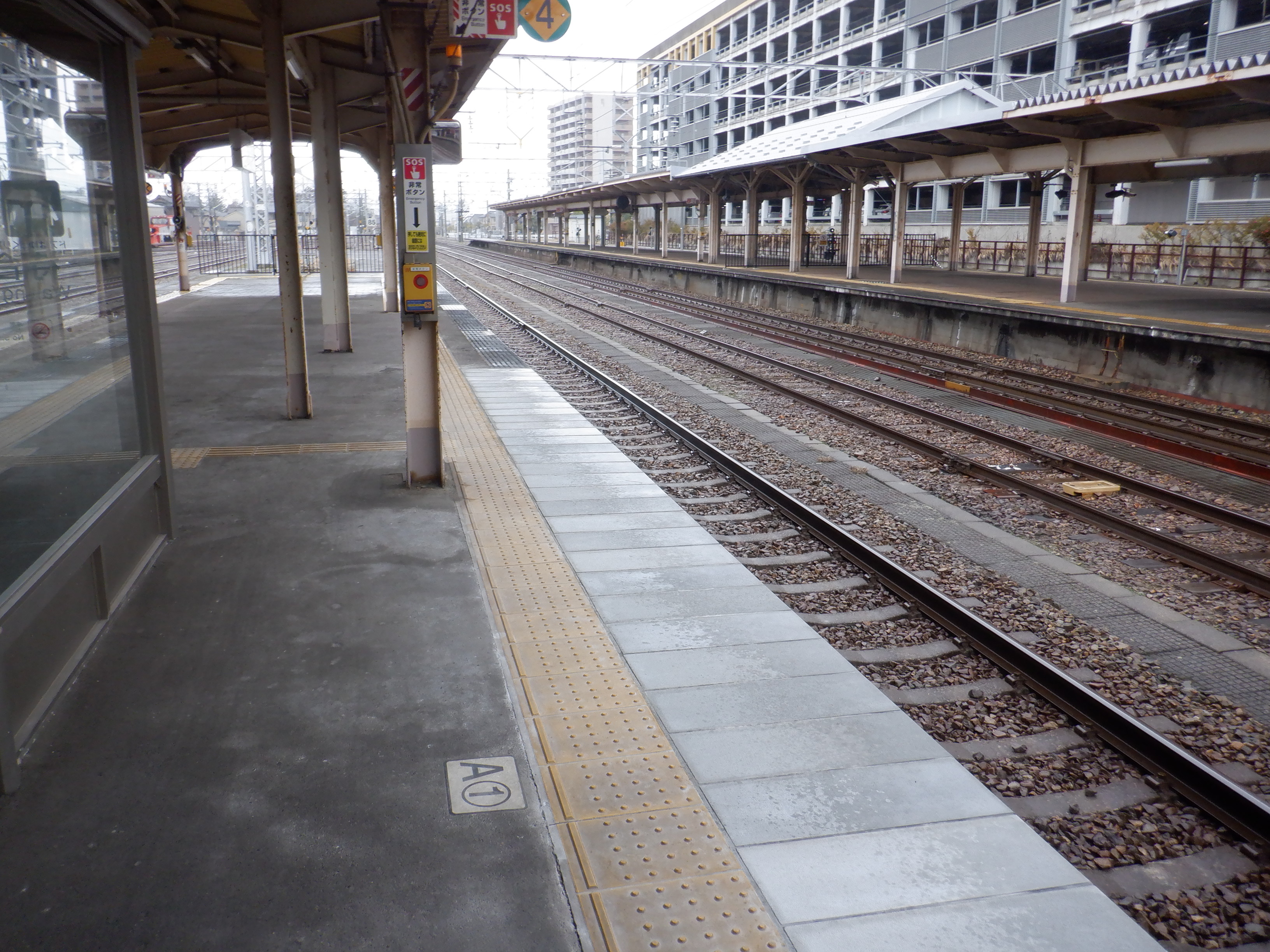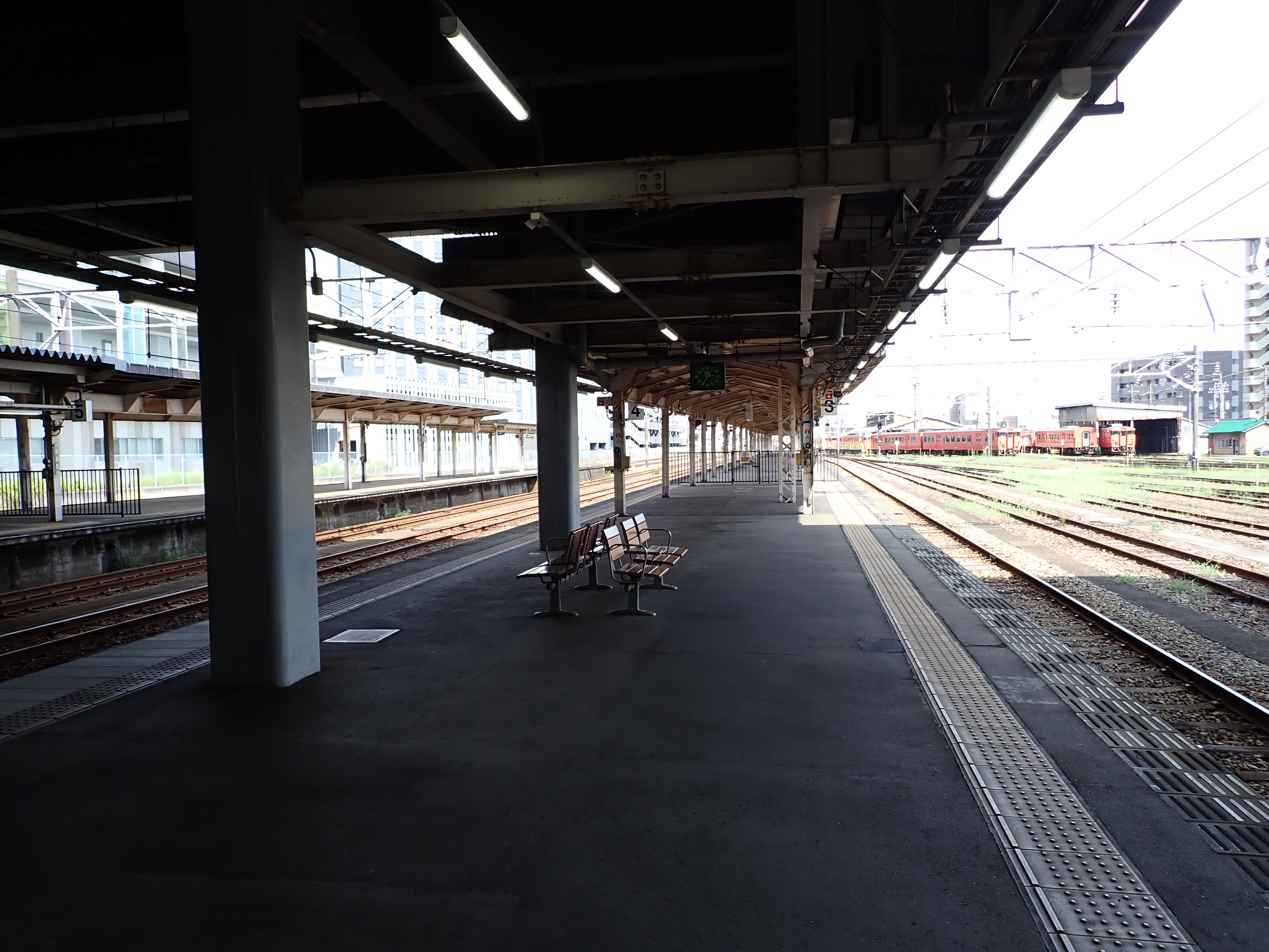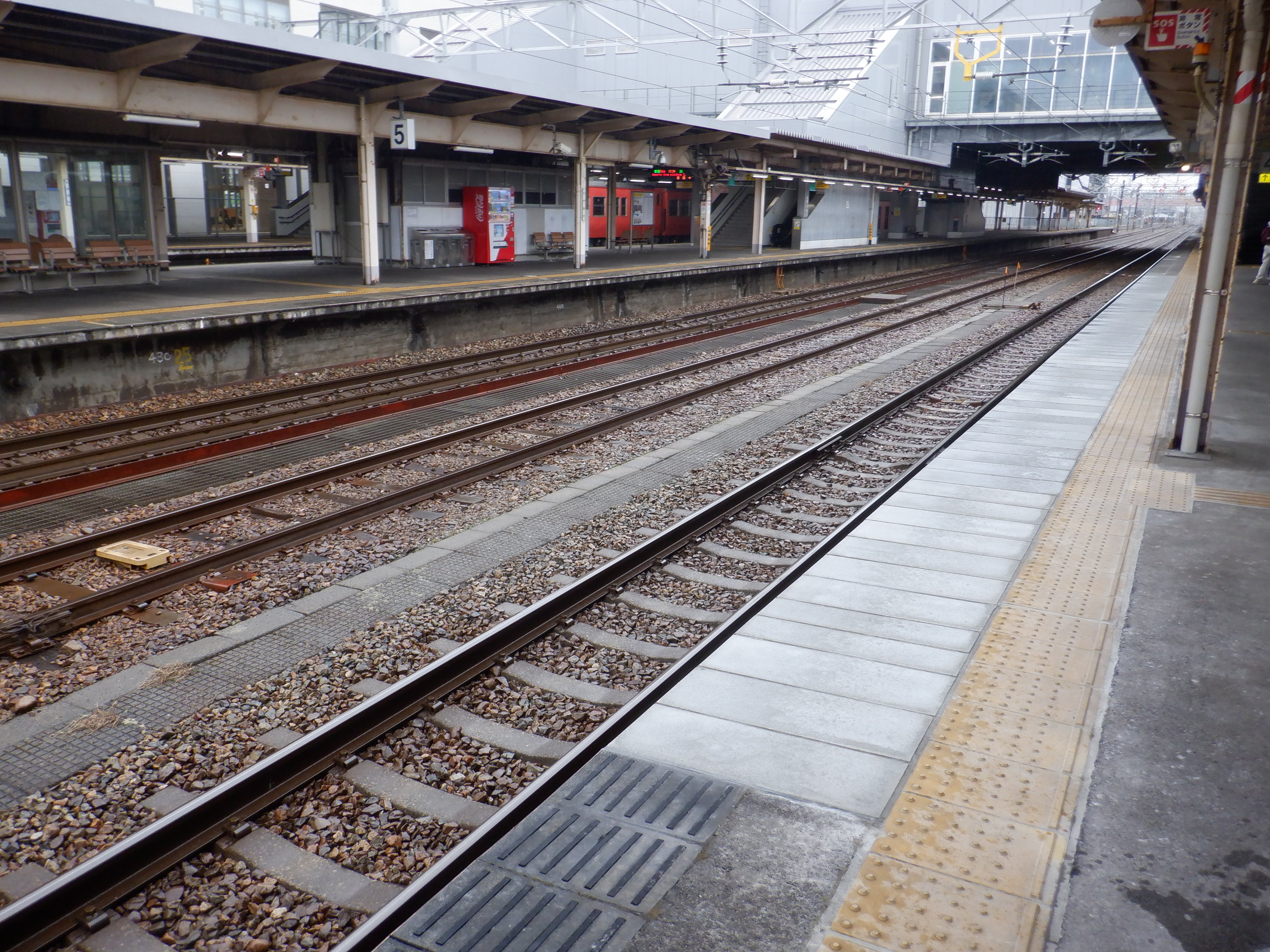 縁部がきれいになった4番のりば。その向かい側、5番のりばの階段のところに柱の番線標が見えませんが、次回変化があります。