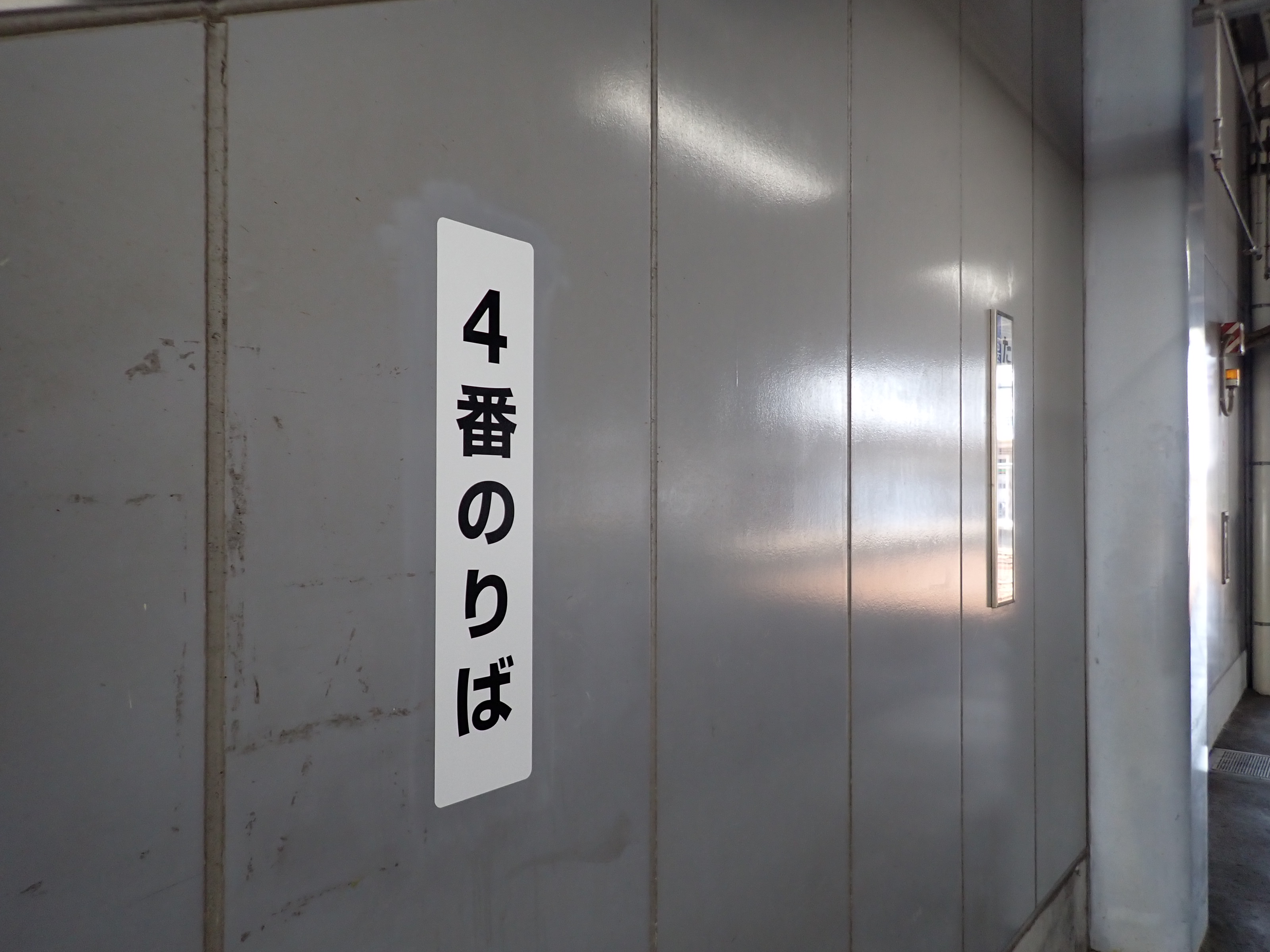 3番のりば・4番のりばともに階段のところに縦型の番線標が貼られています。