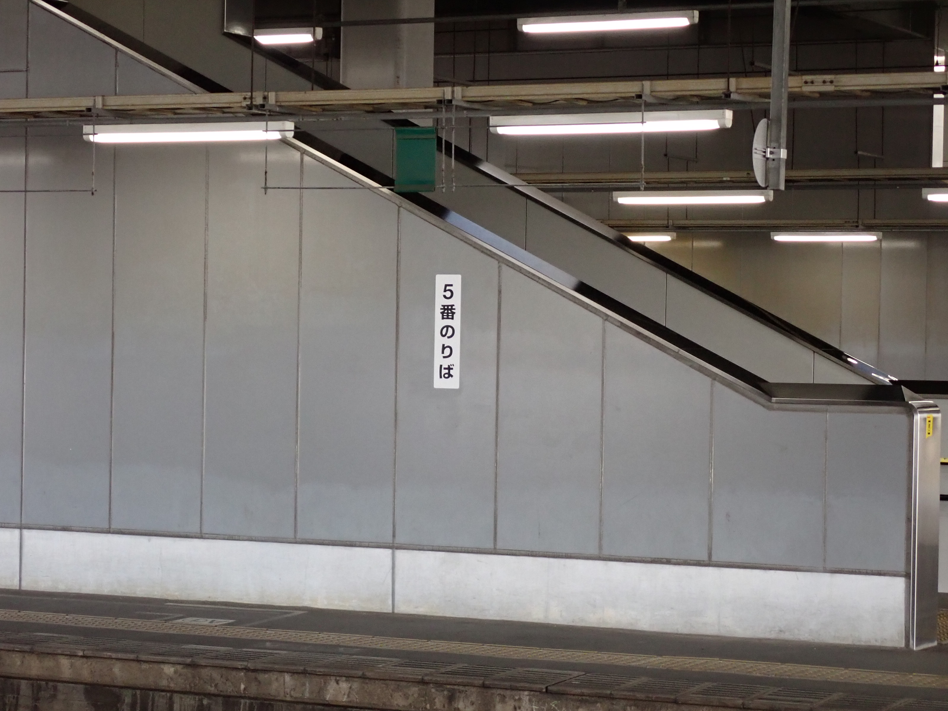 3・4番のりばから見た5番のりばの階段に貼られた番線標。こちらは前回の通り、2週間前にはありませんでした。