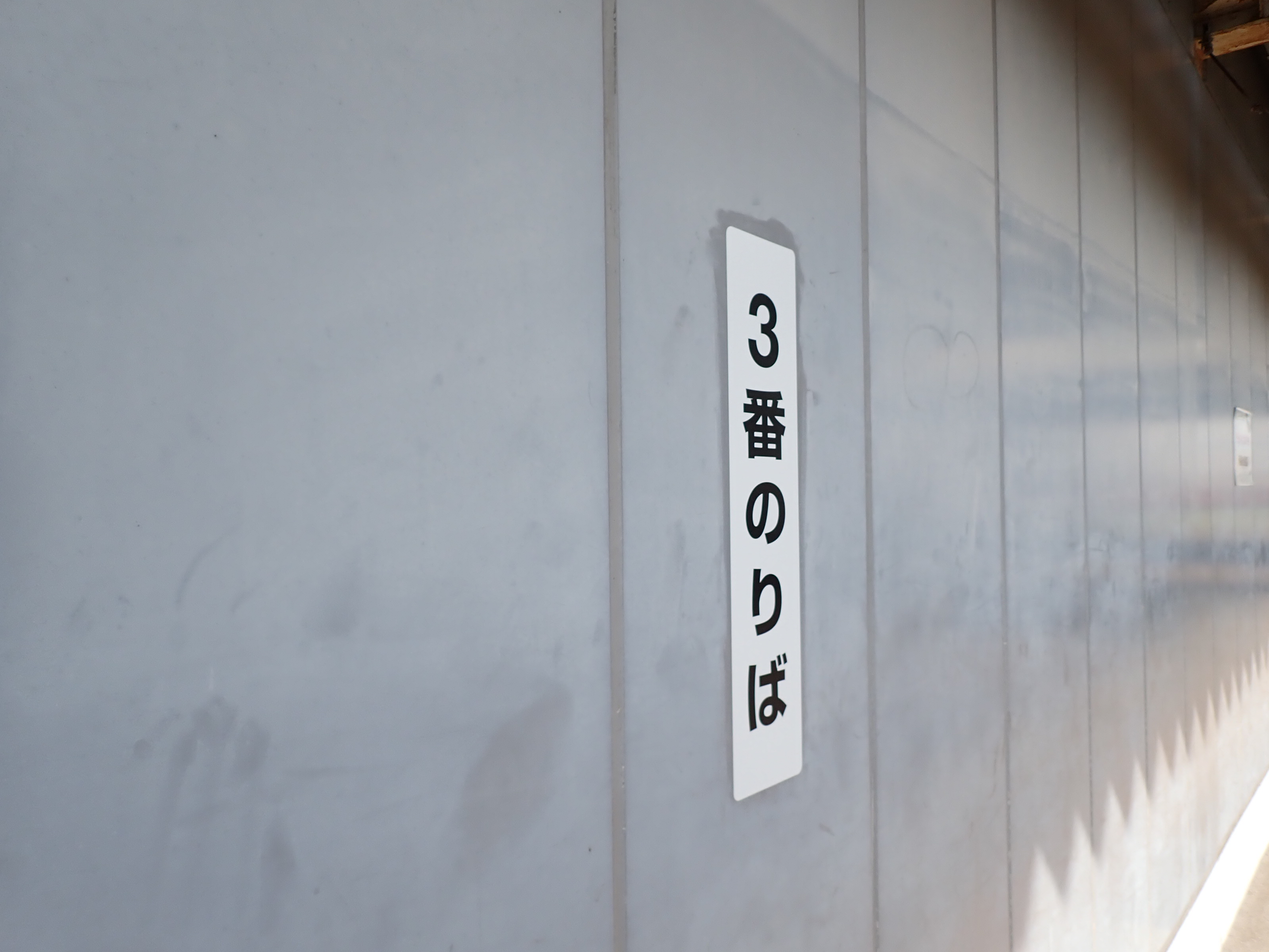 3〜7番のりばに縦型の貼り付けるタイプの番線標が貼られていました。