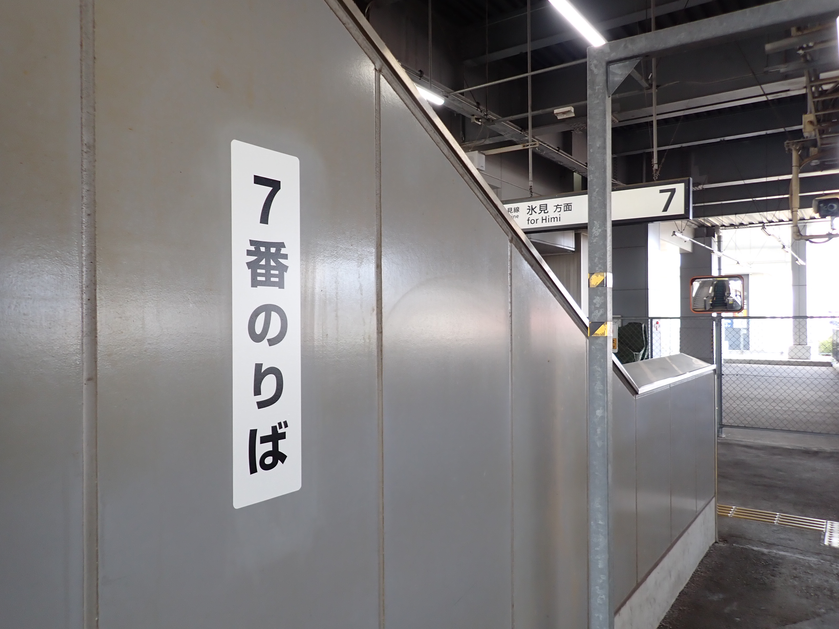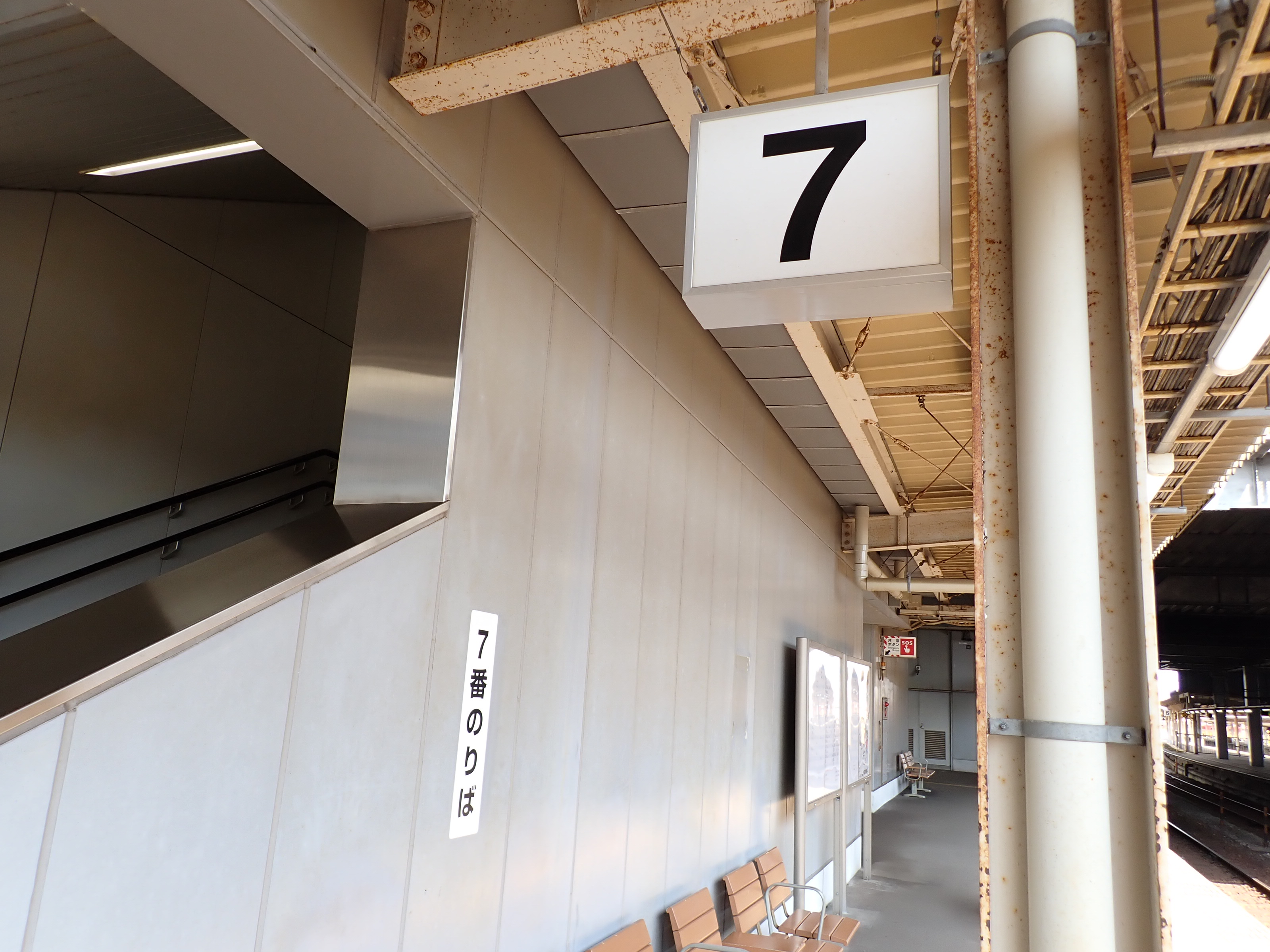 7番のりばの縦型の番線標。