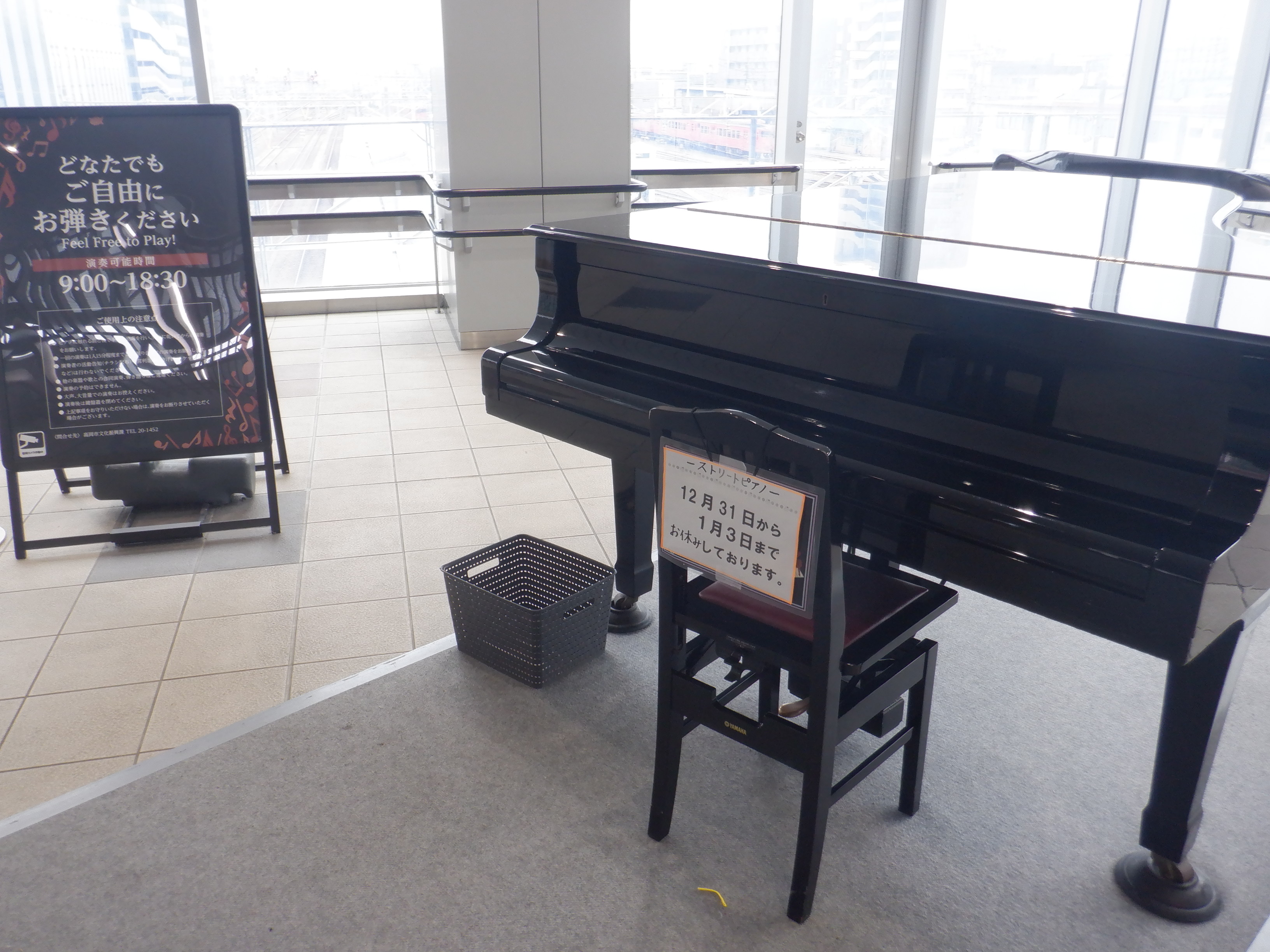 改札口の前にあるストリートピアノ。この日はお休みでした。