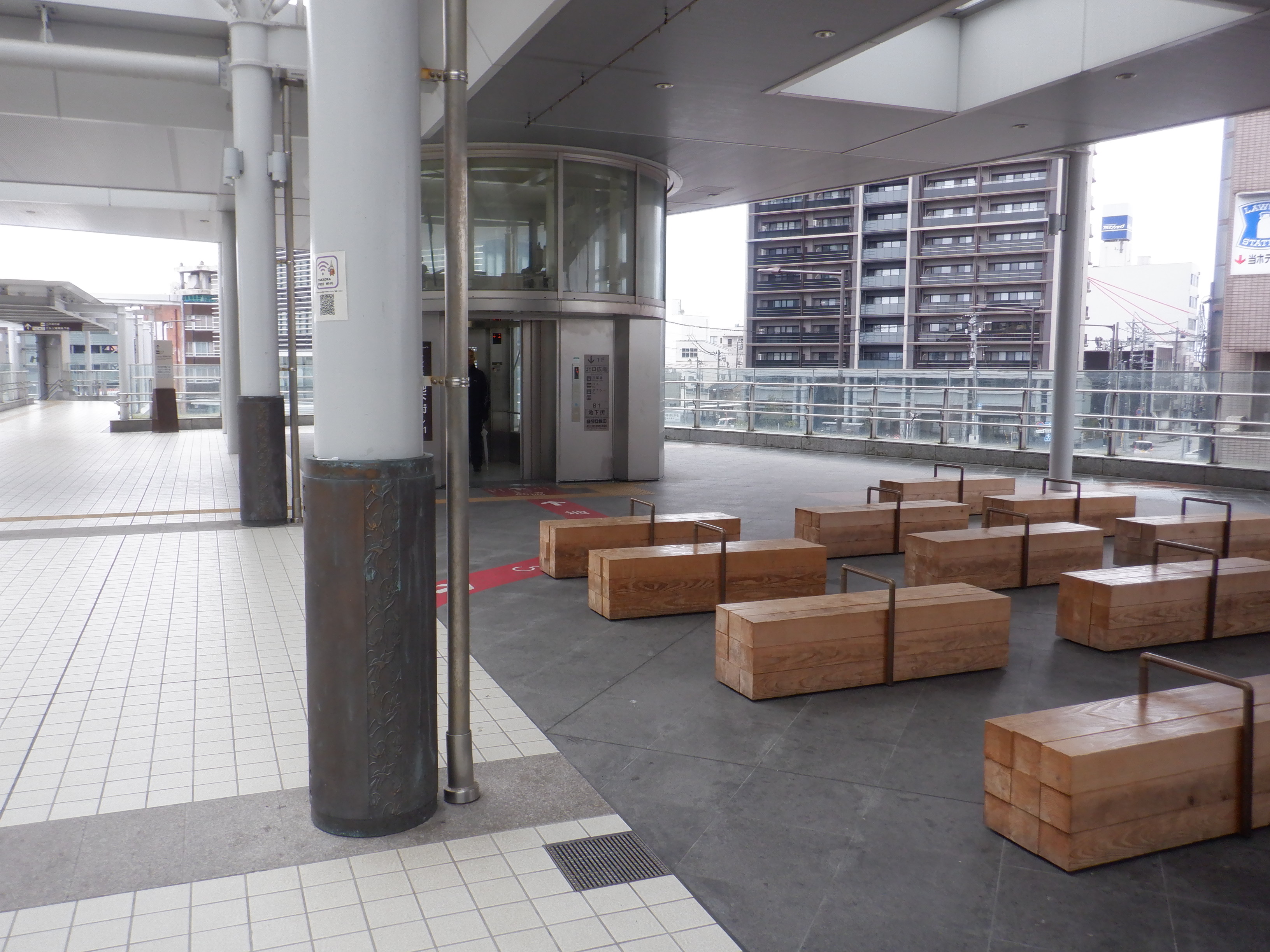 5・6番のりばの高岡やぶなみ駅側から階段付近。