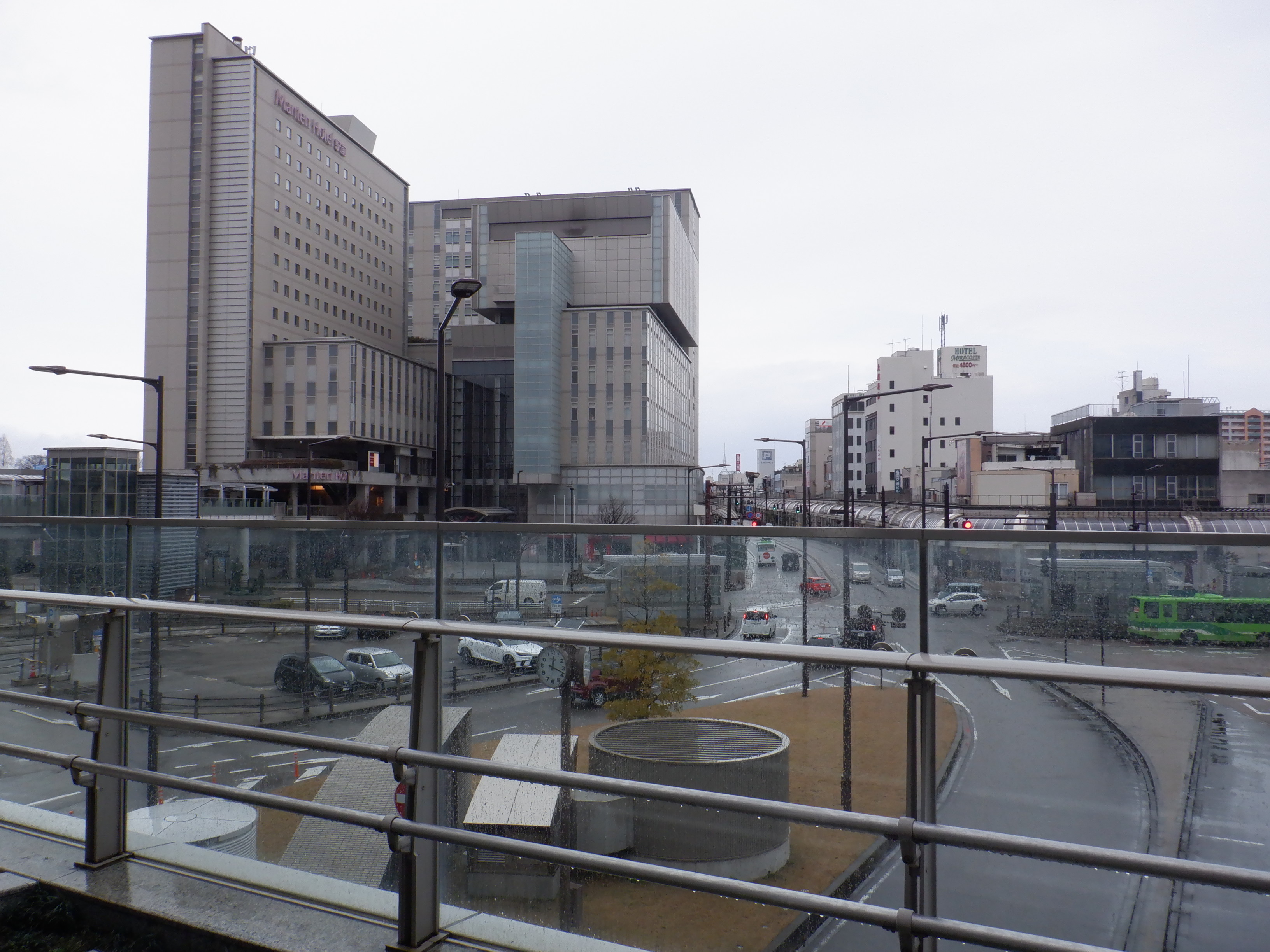 5・6番のりばから見た3・4番のりば越中大門駅側の柵の外に置かれた資材。