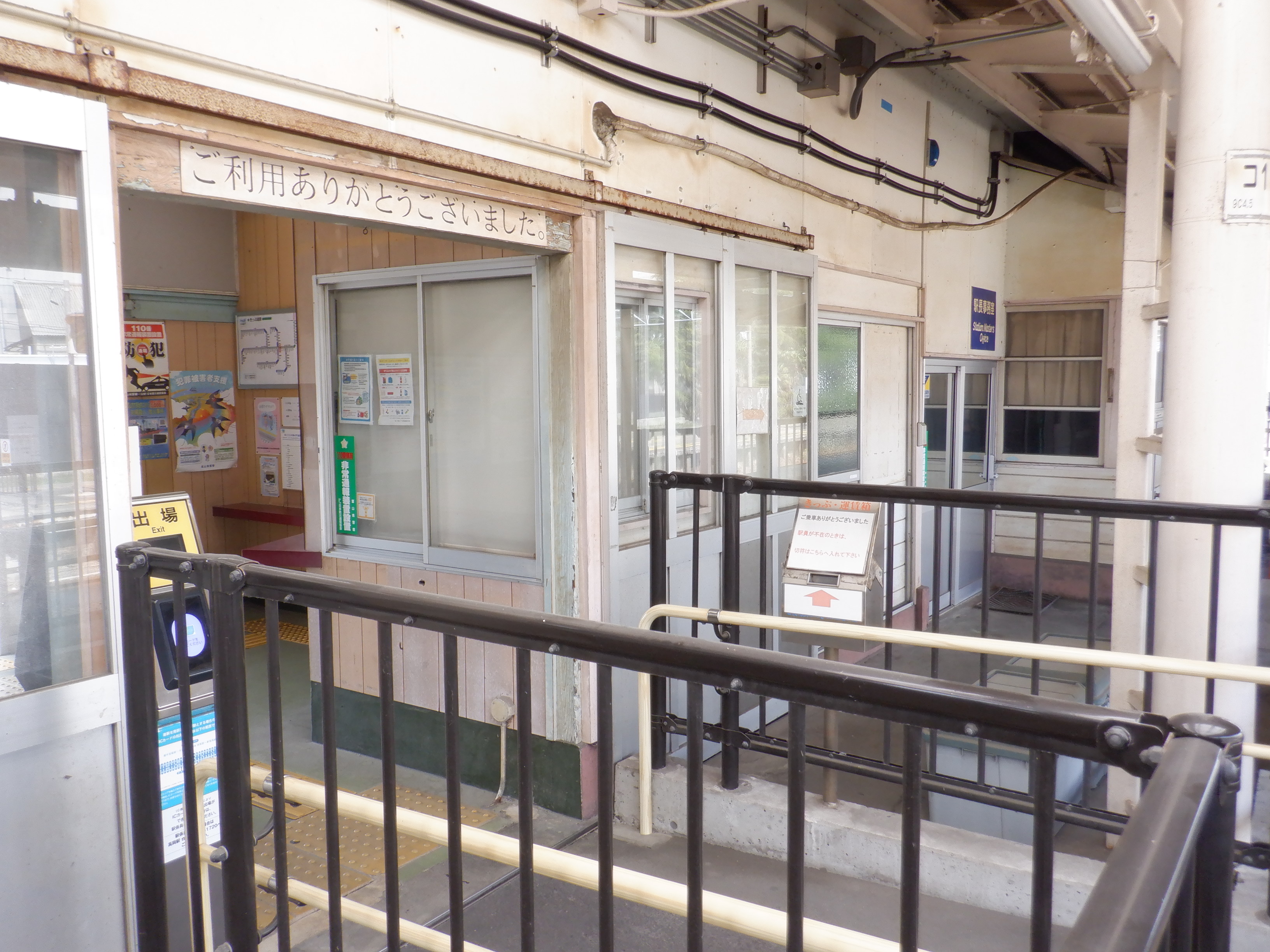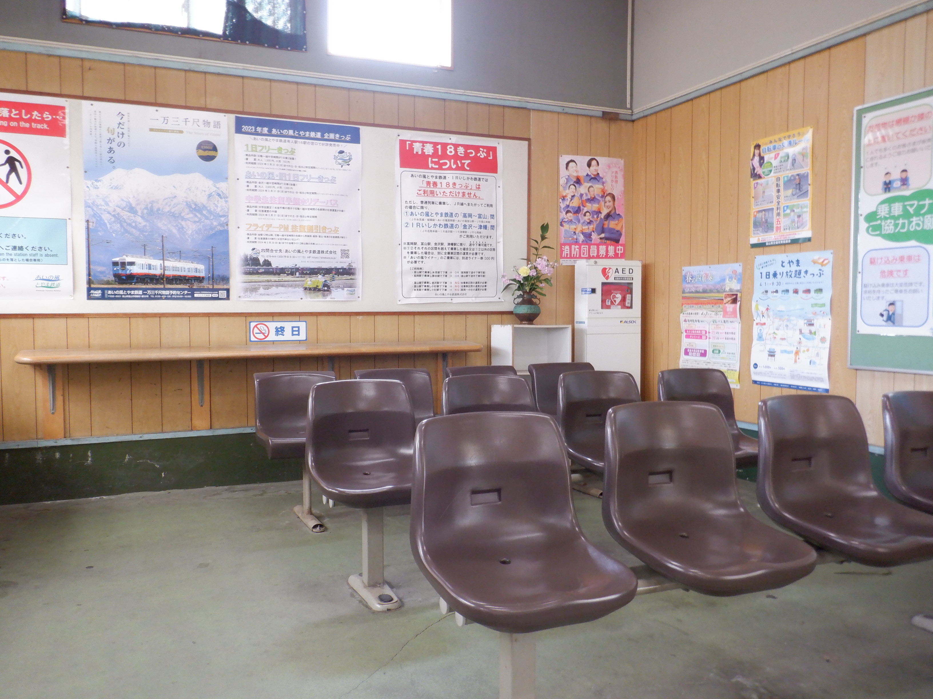お昼時間帯で窓口が閉まっており、特段他の方もいらっしゃらなかったので駅舎内の様子。
