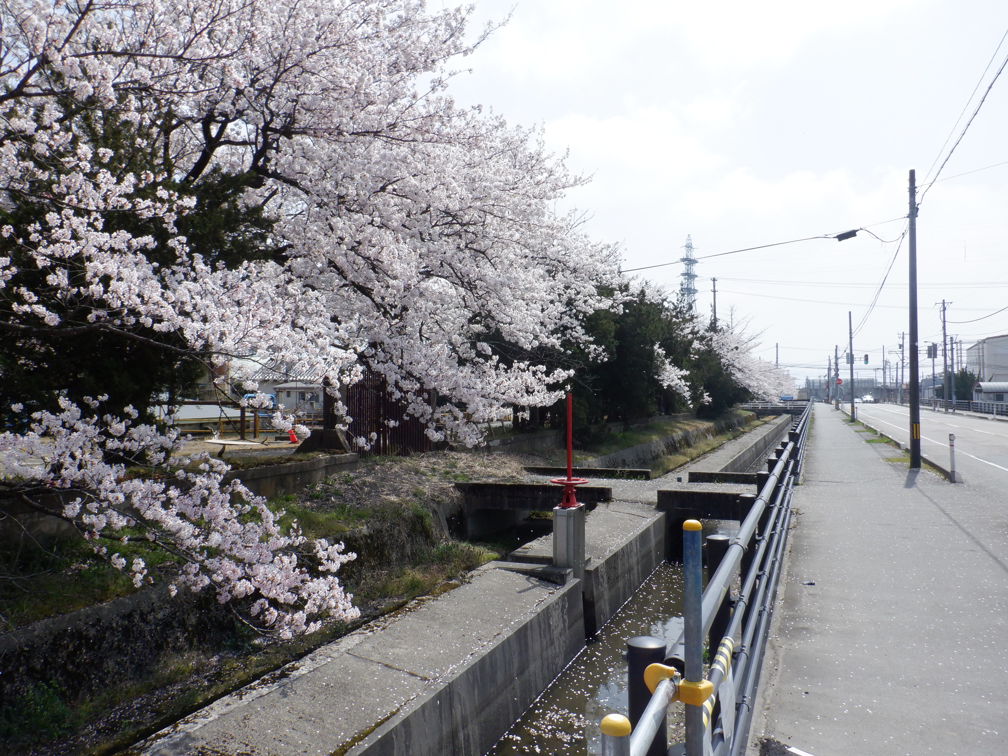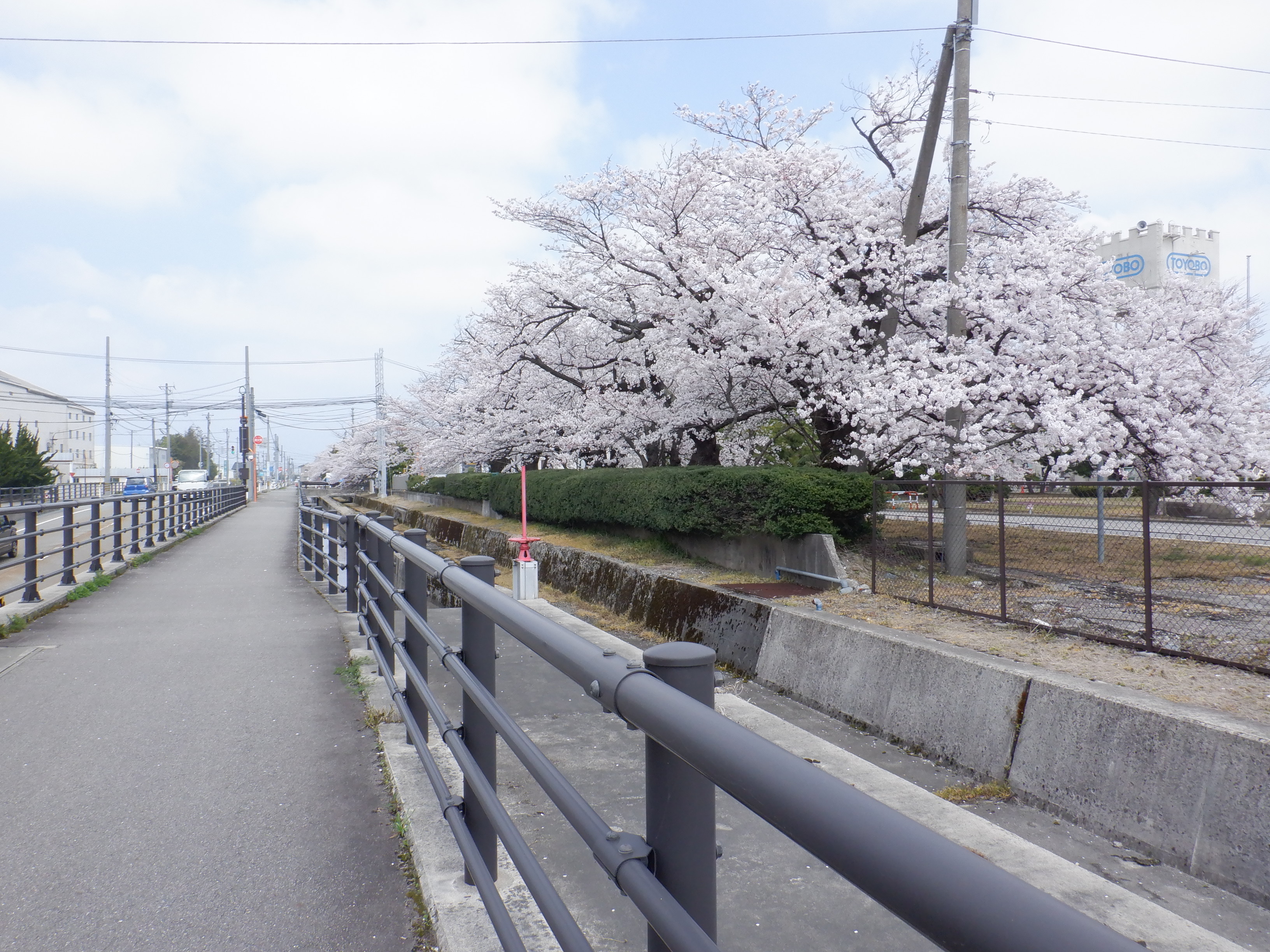 駅前の整備ができてからしばらく経ちました。桜の花の時期なので、東洋紡の工場のそばに見に行って来ました。