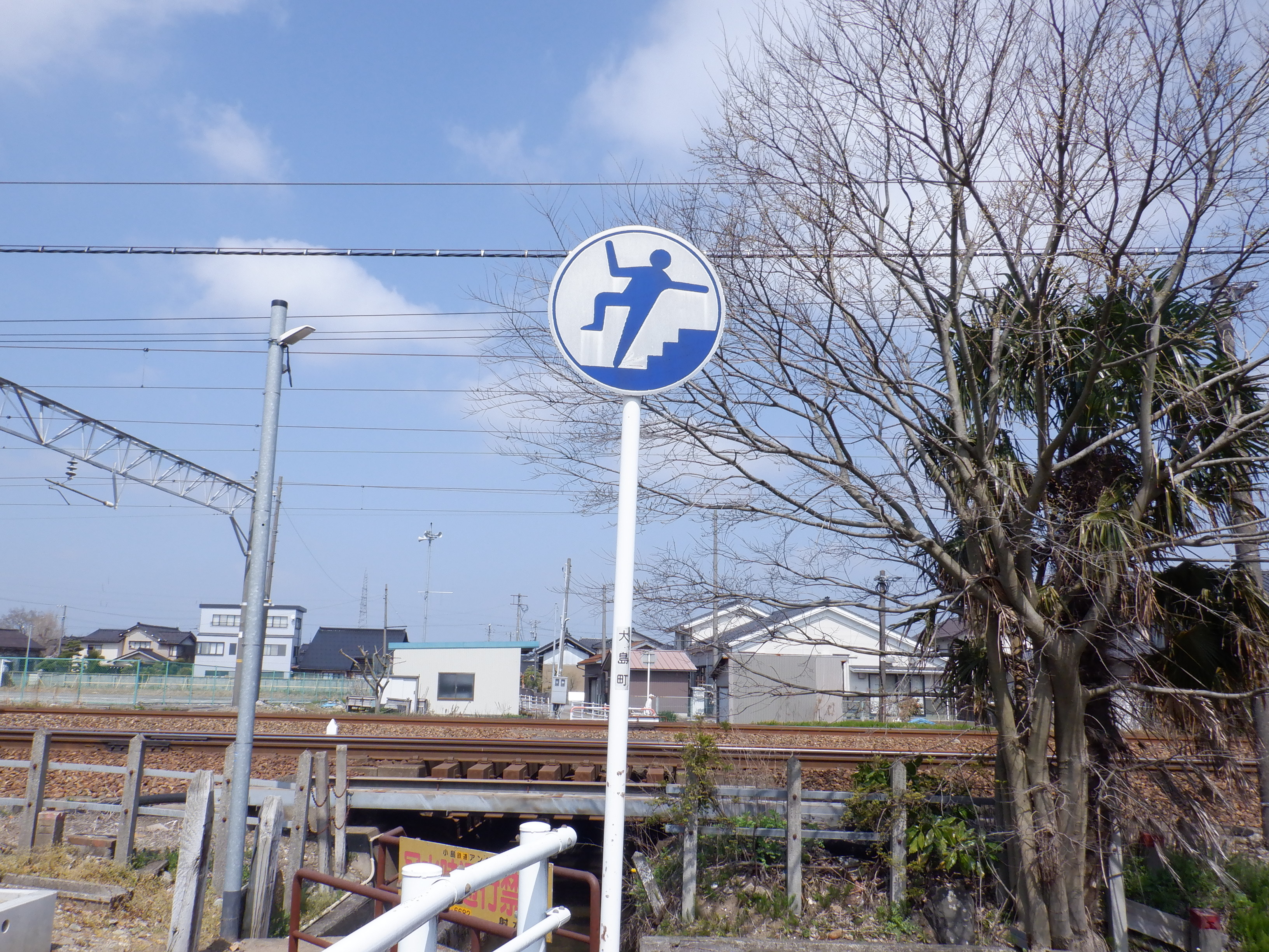 再び踏切の近くへ旧大島町の看板がありました。