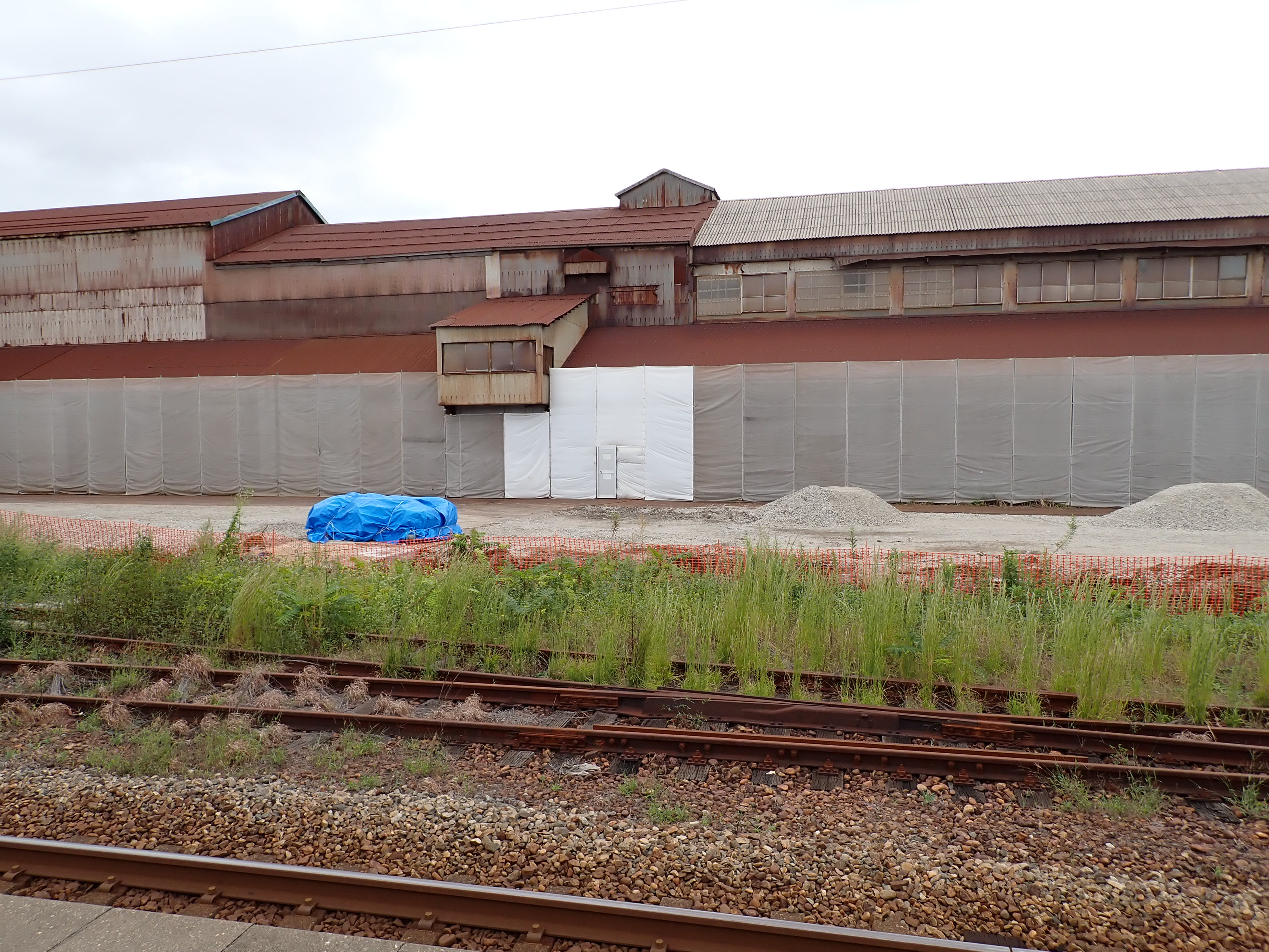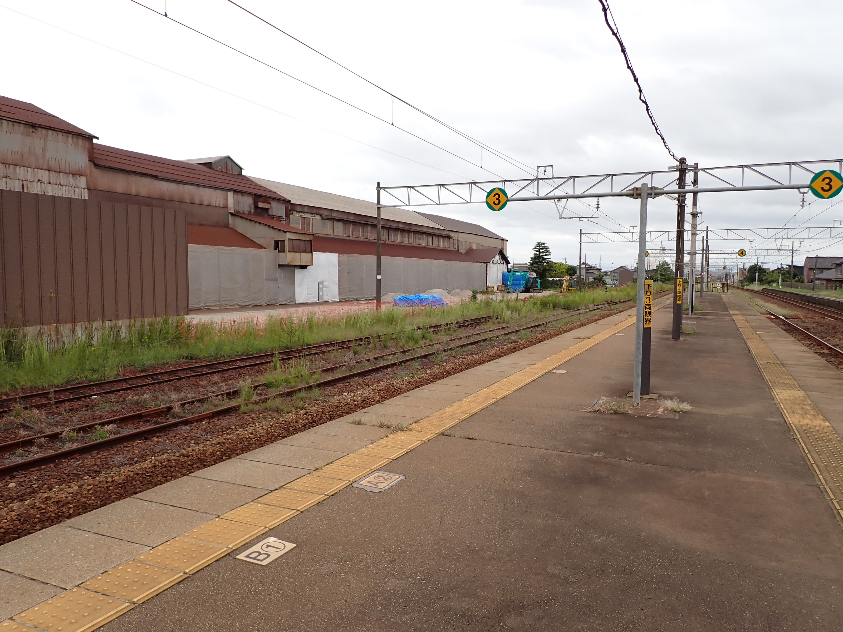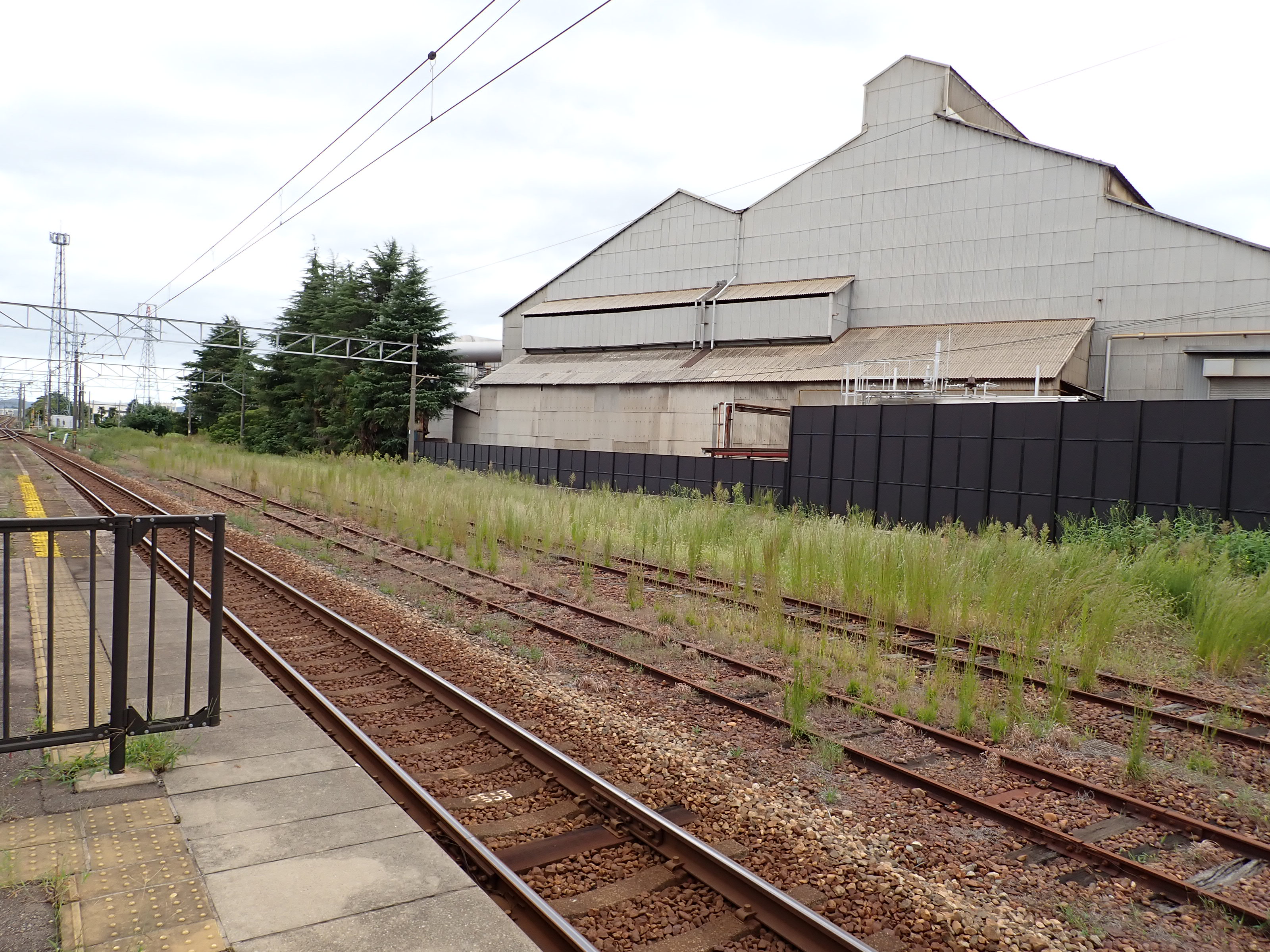 2・3番のりばから見た駅舎と反対側の工場。