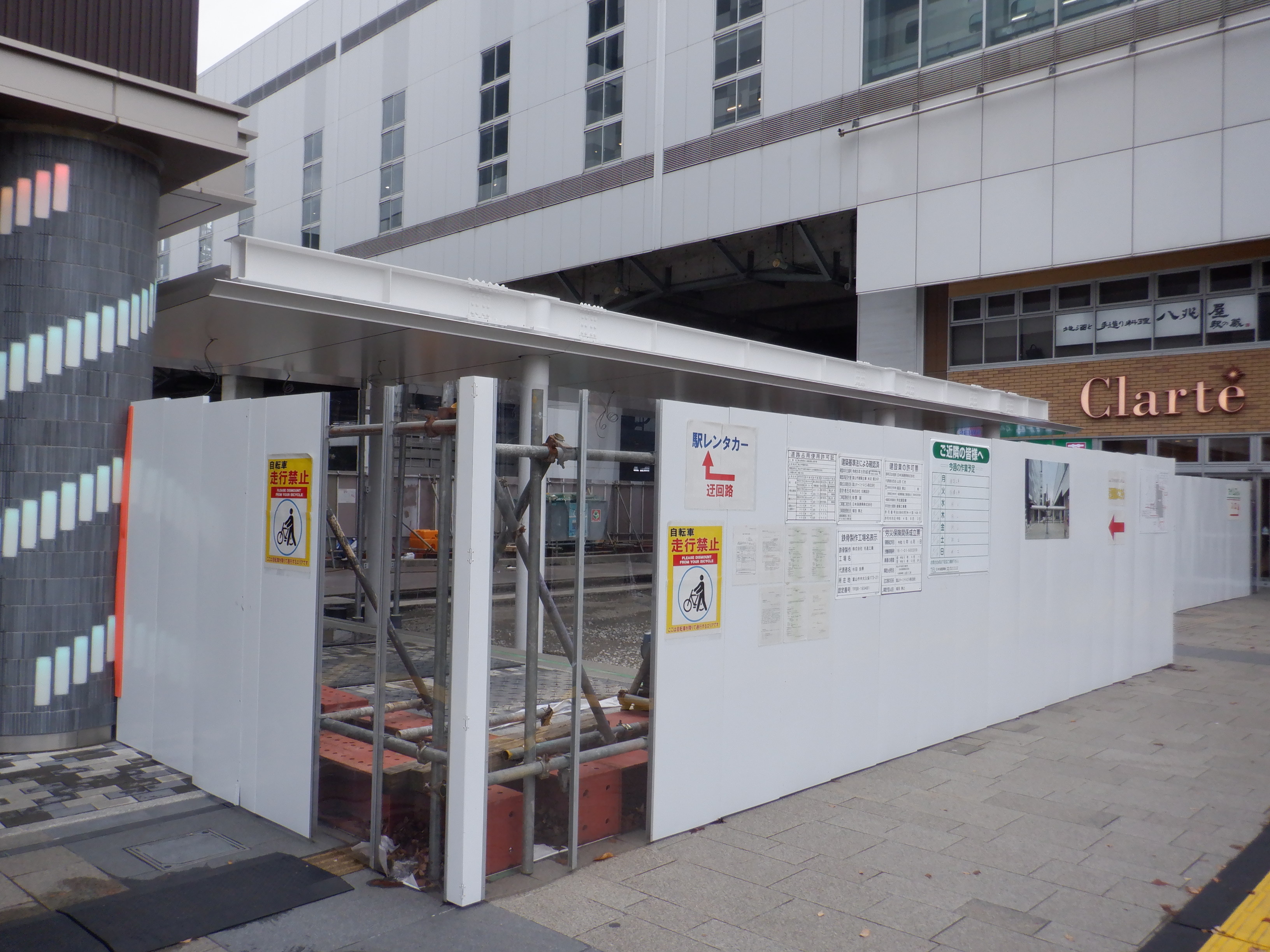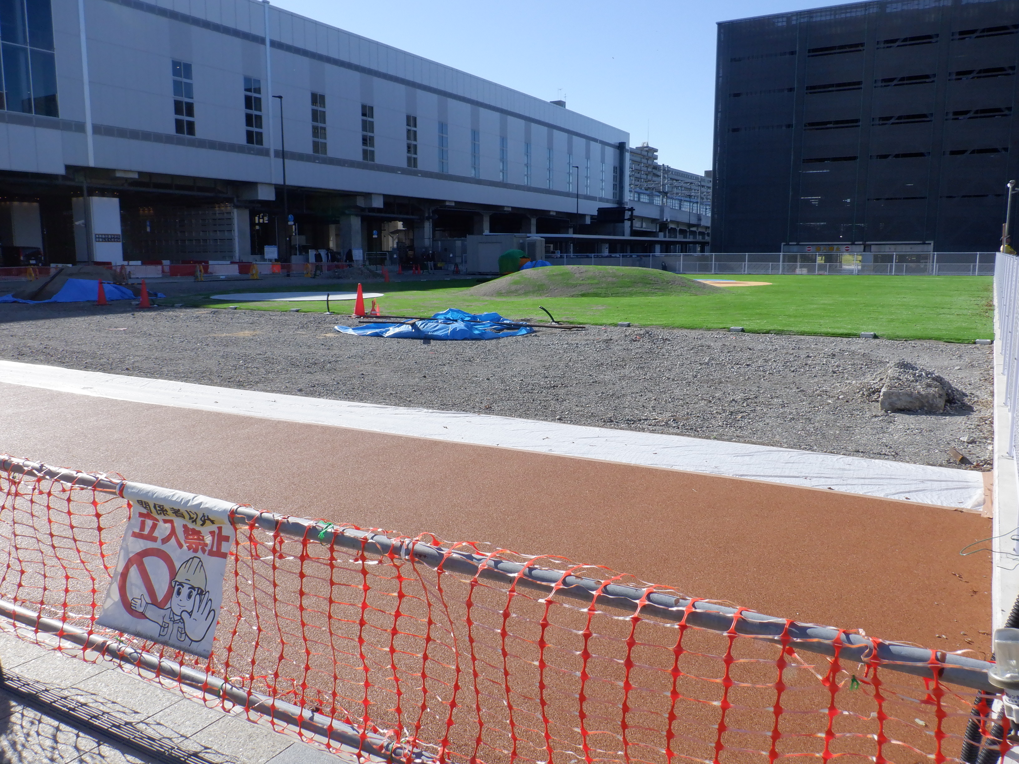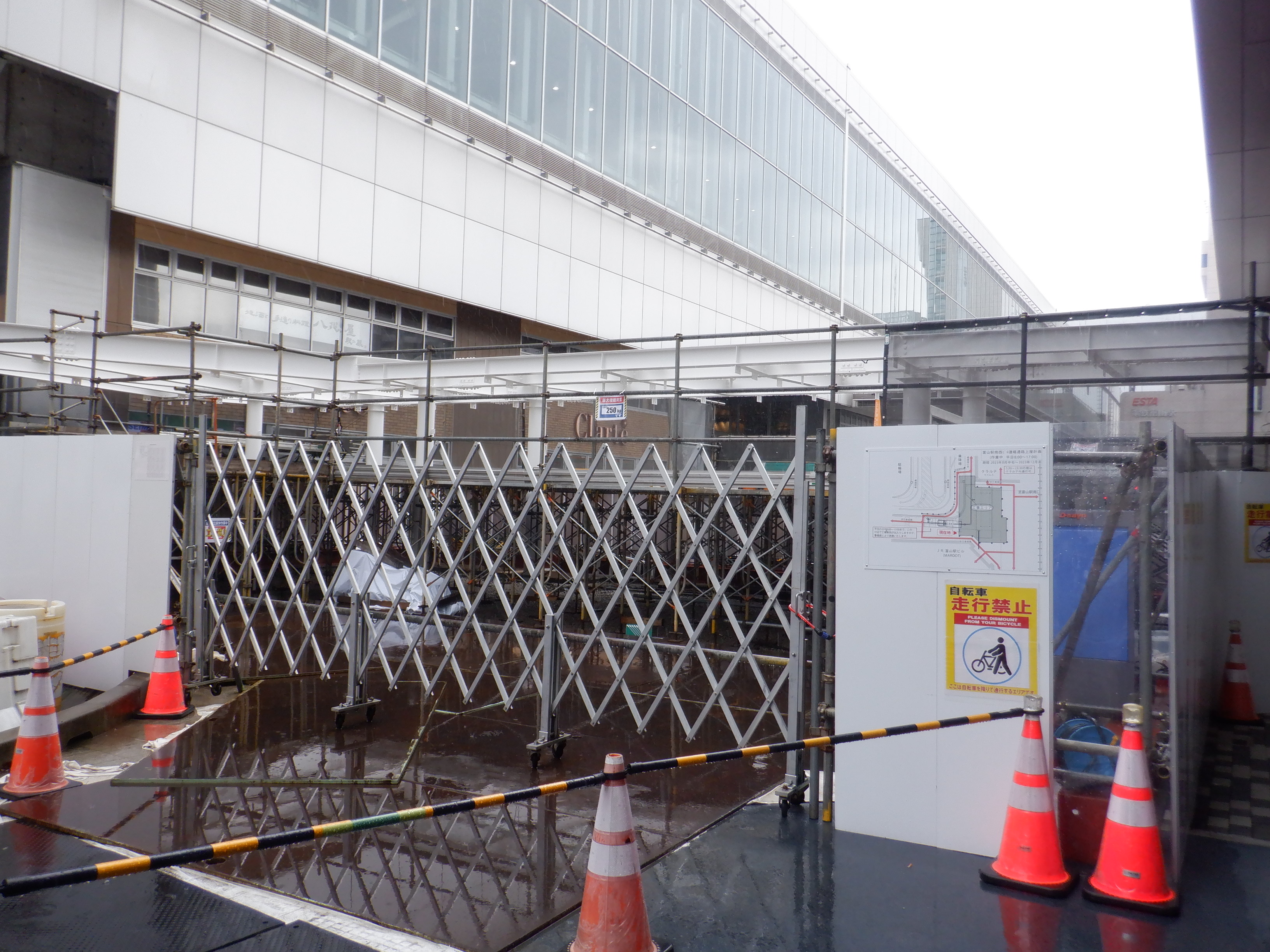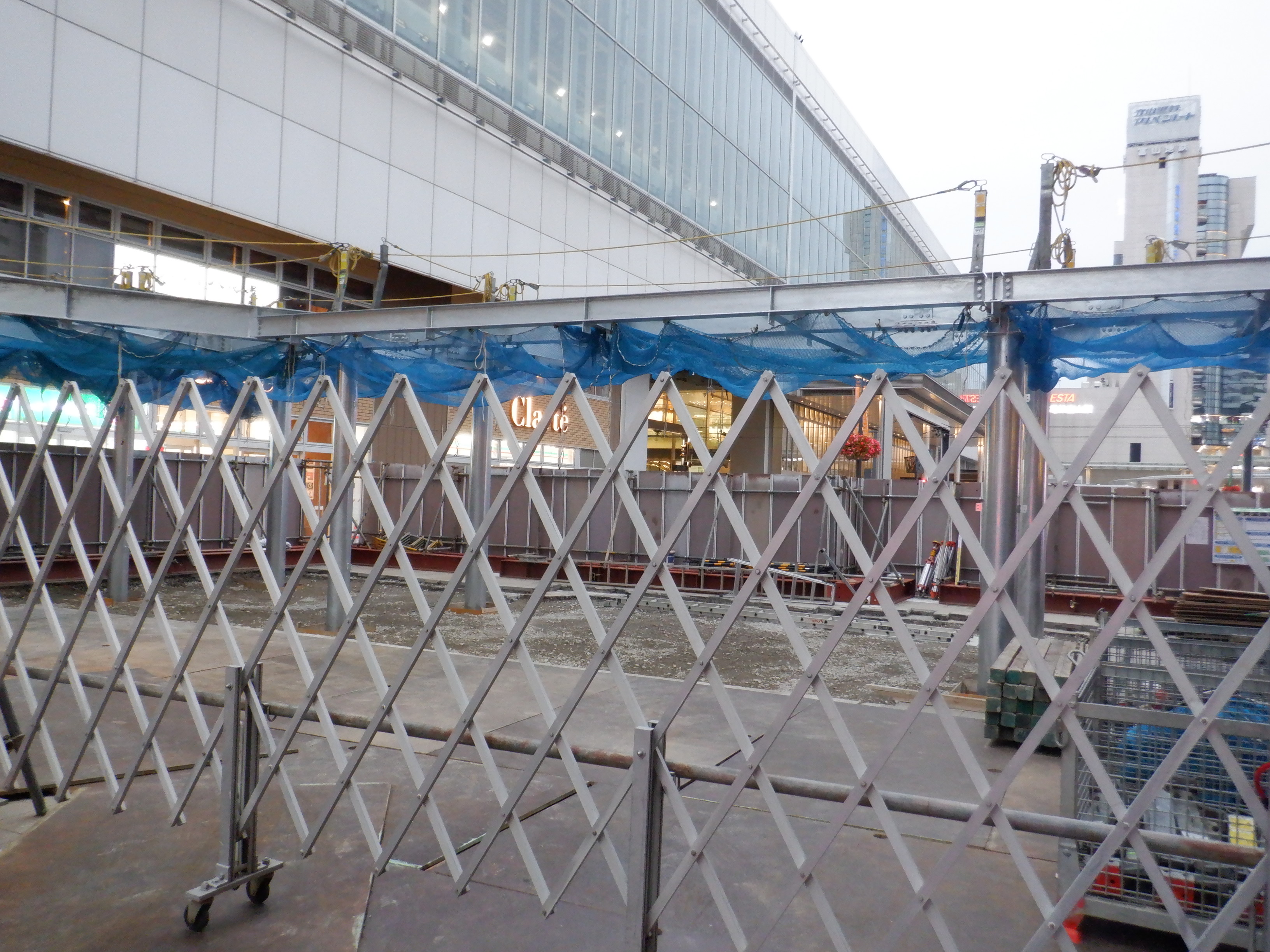 ごっこぱーくが正式にオープンした後です。また、東口とマルートとの間のシェルター建設中のところは建設が進んでいました。