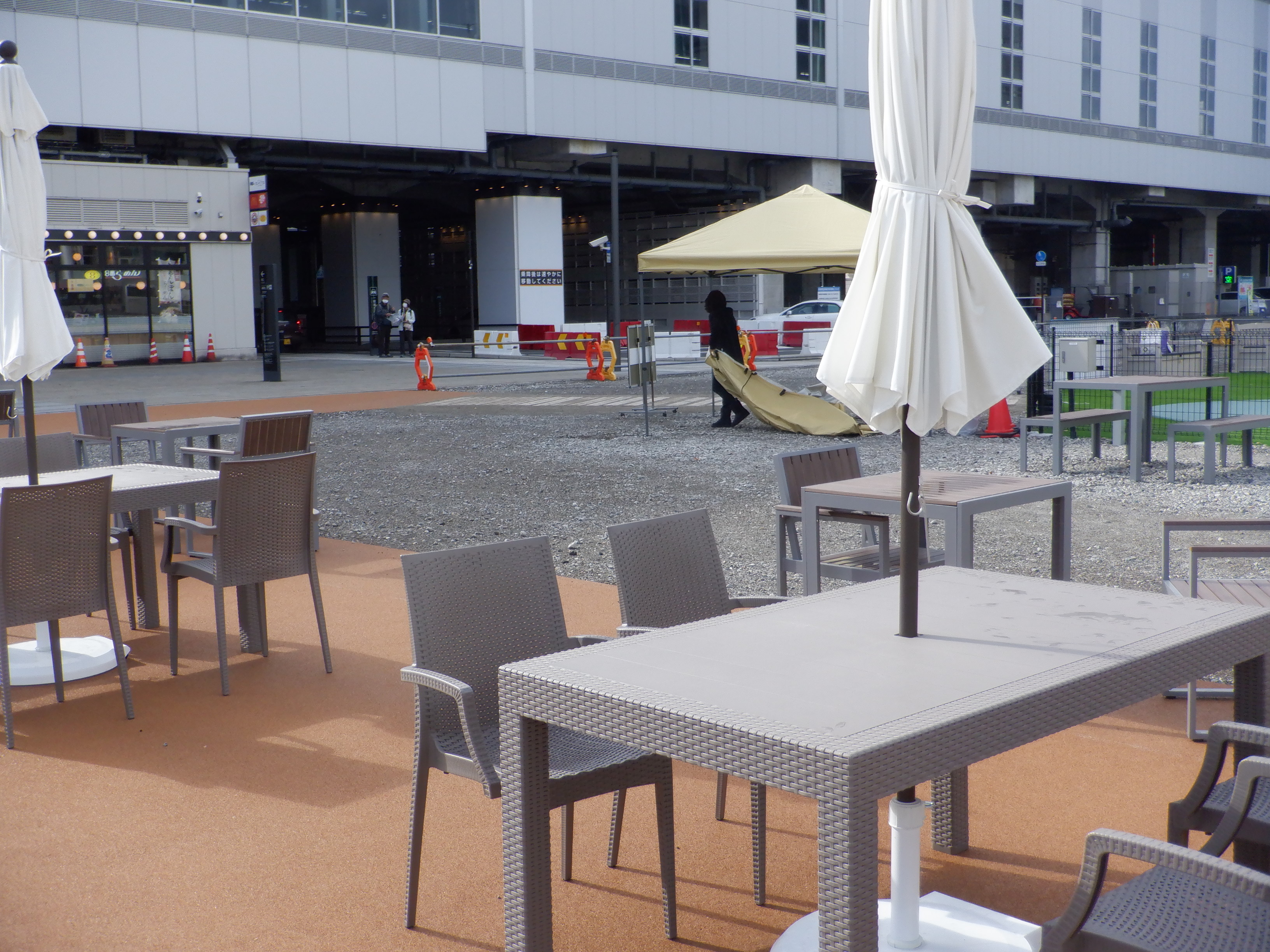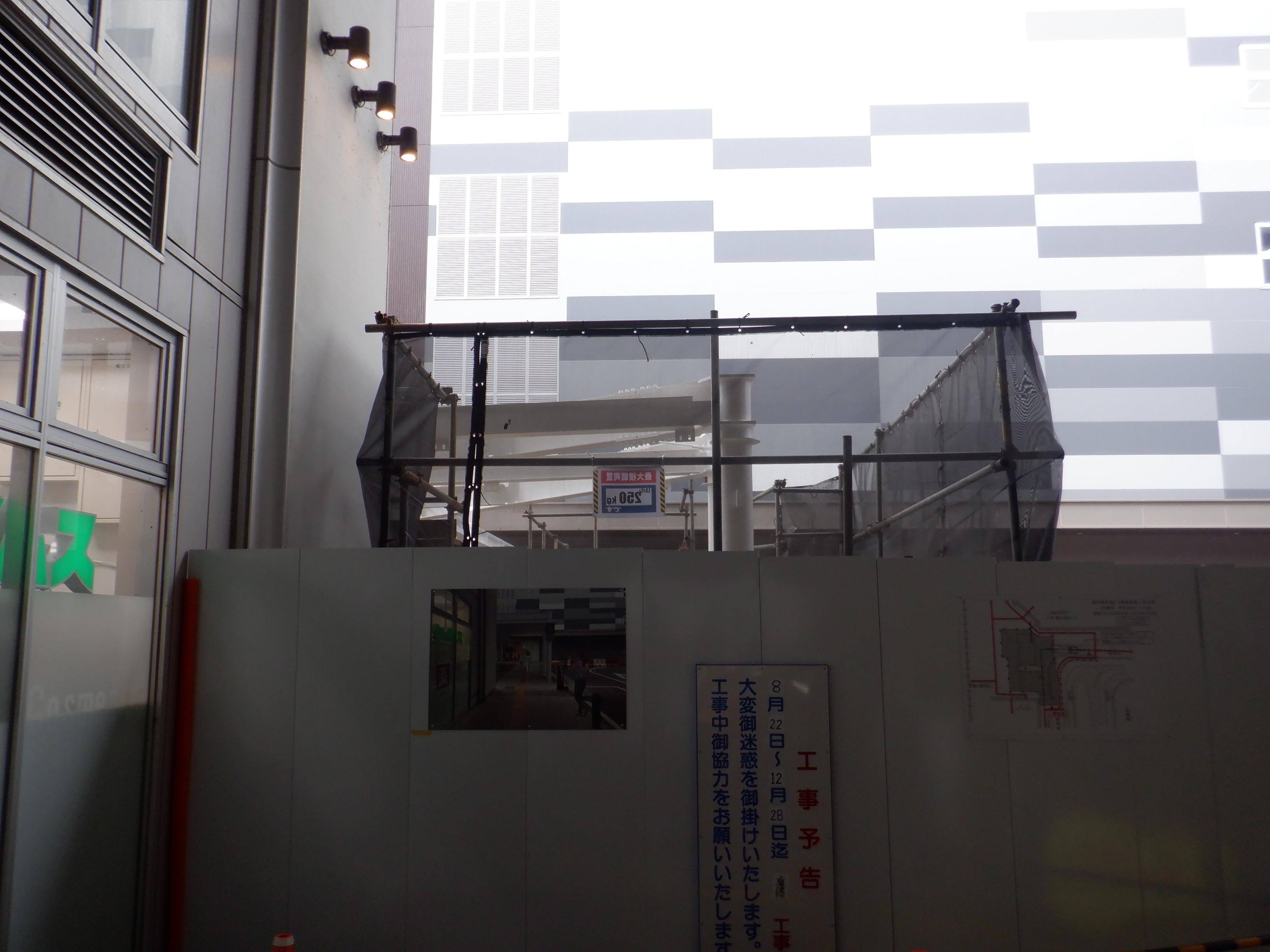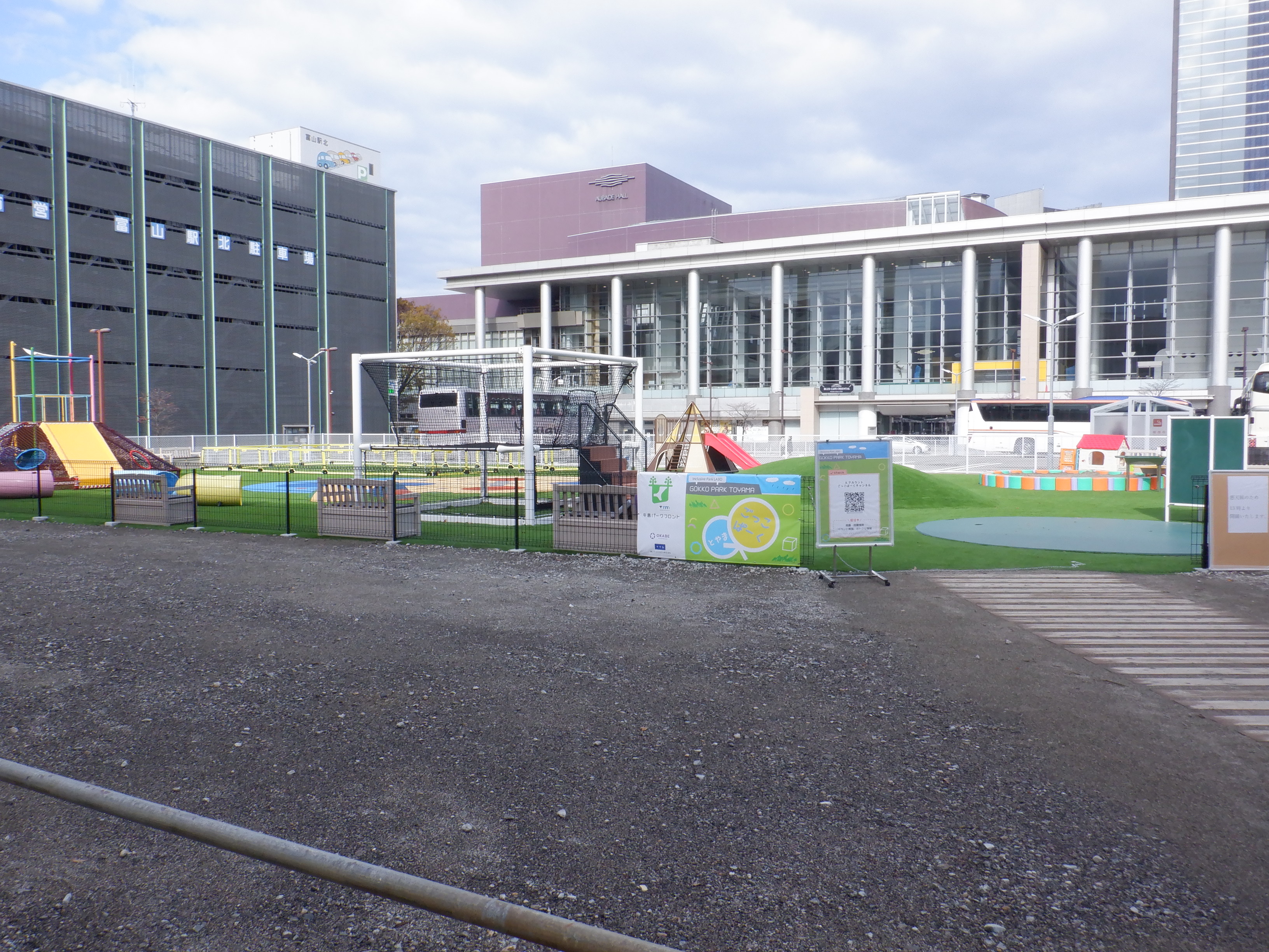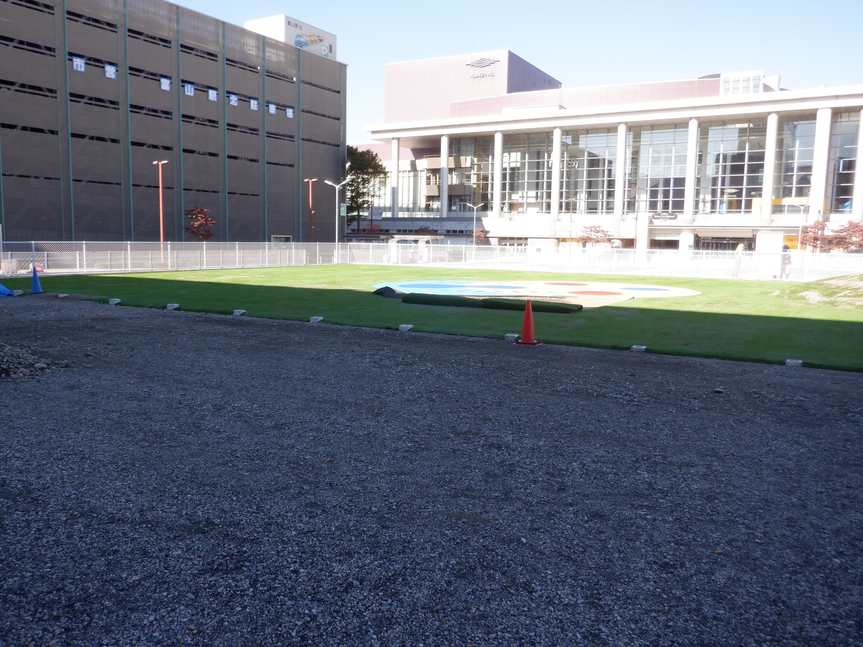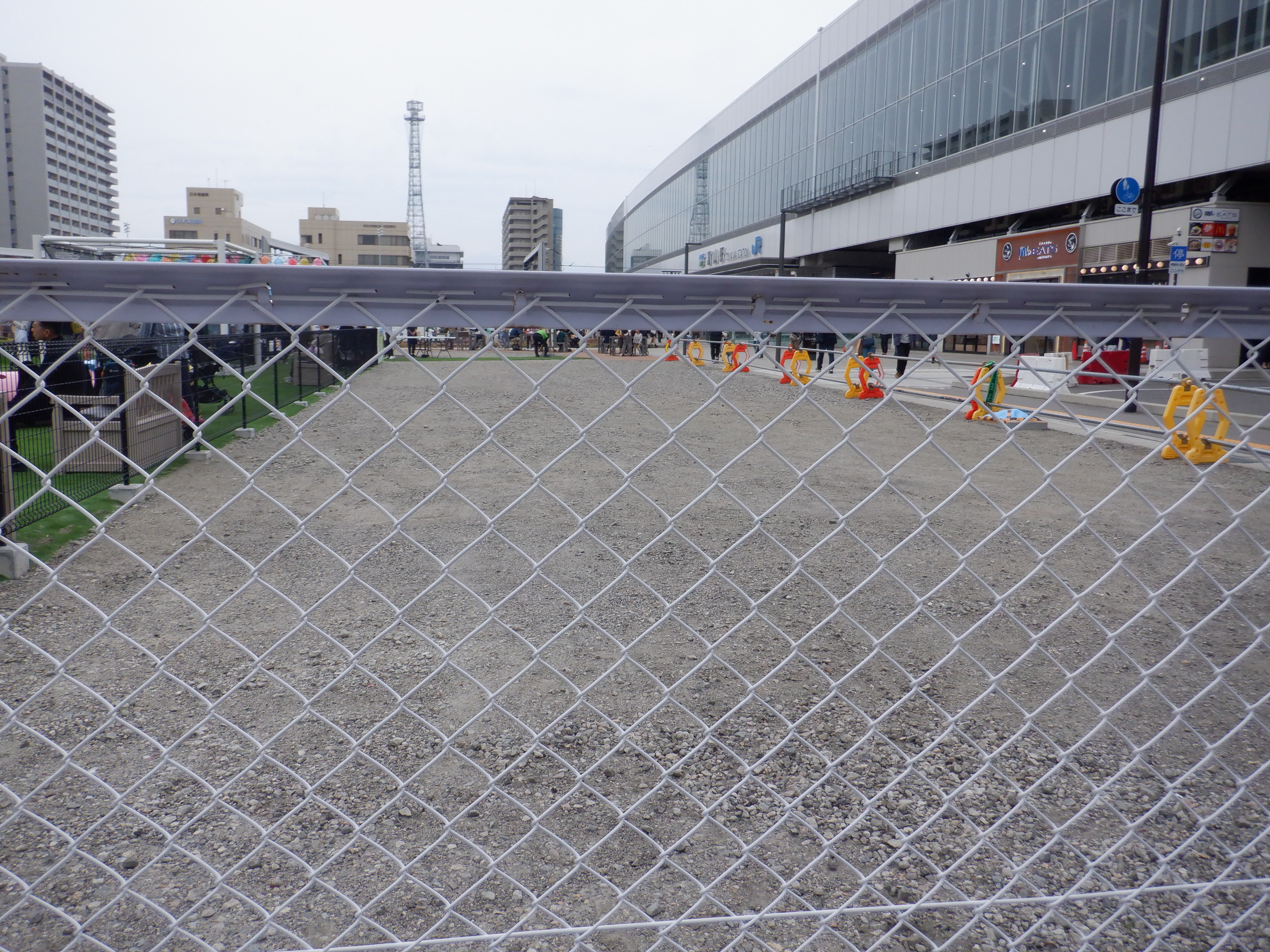 ごっこぱーくが正式にオープンした後です。また、東口とマルートとの間のシェルター建設中のところは建設が進んでいました。