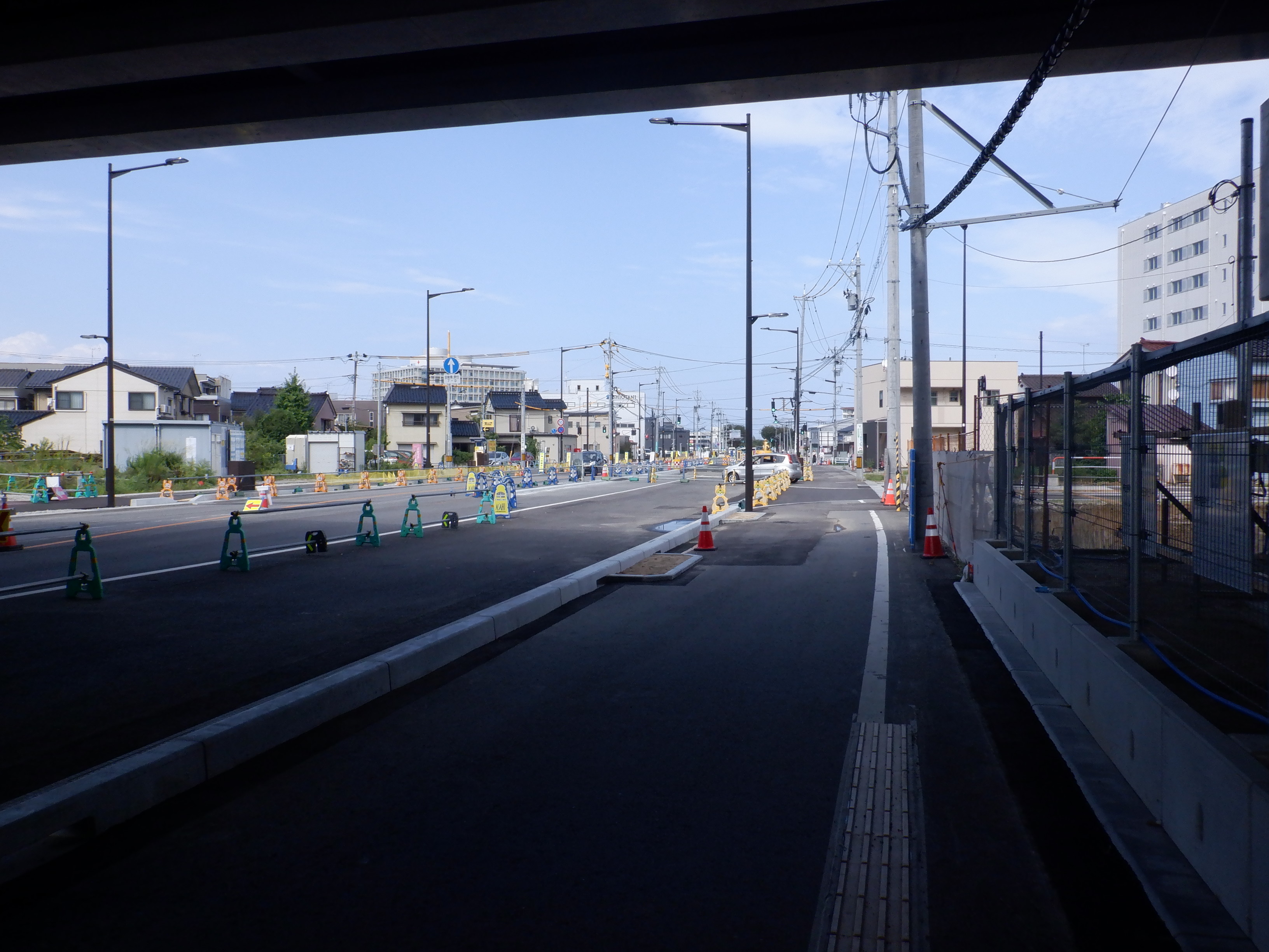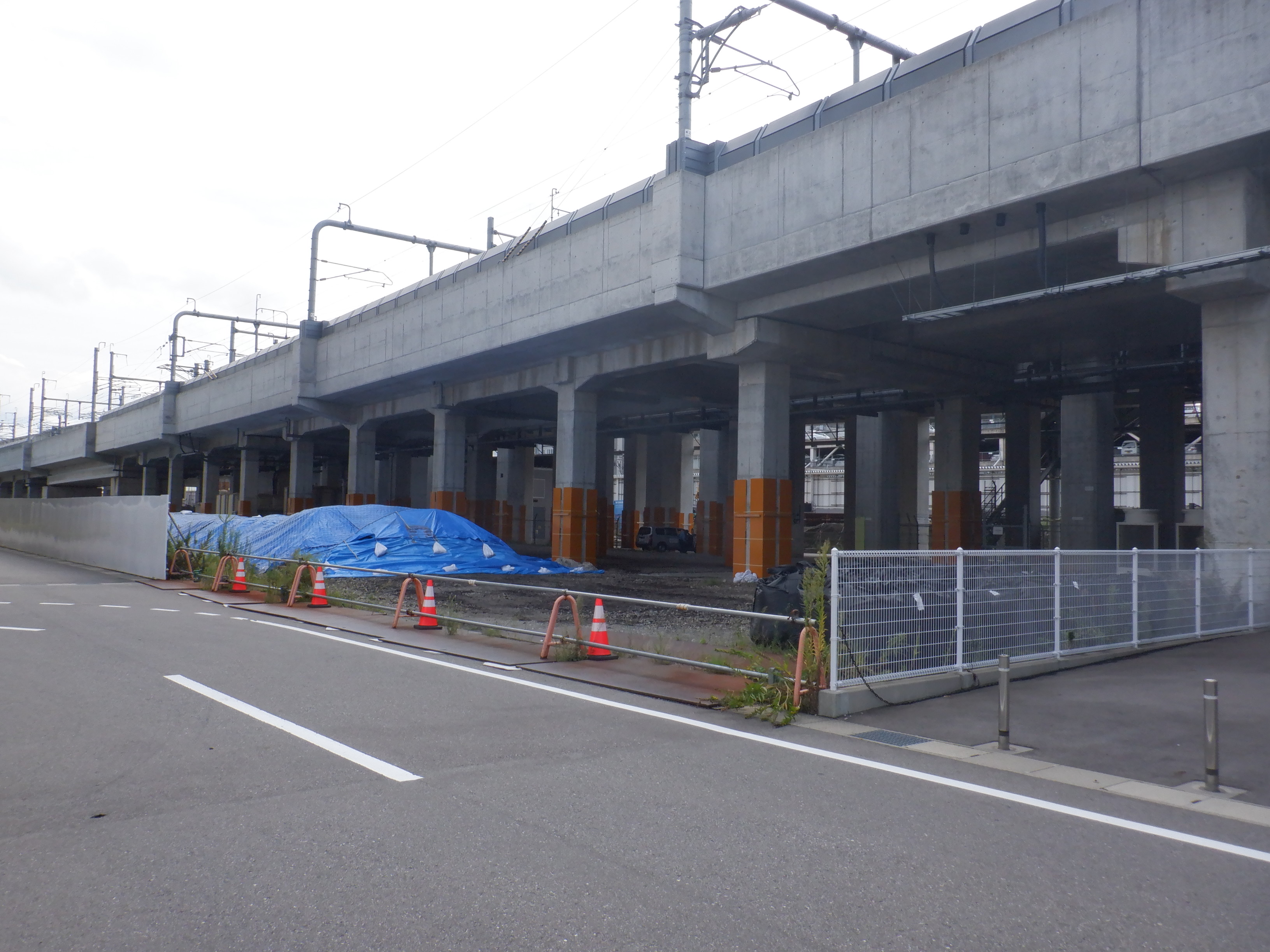 都市計画道路牛島蜷川線から見た商業施設建設中の様子。