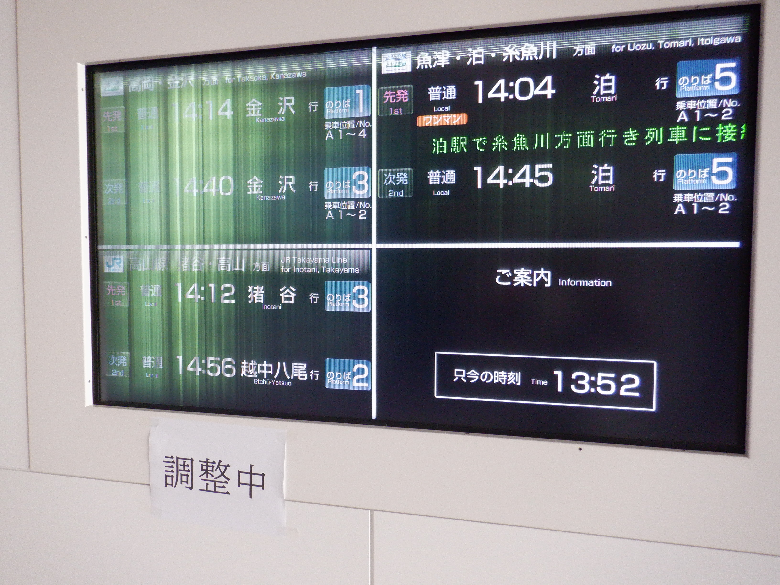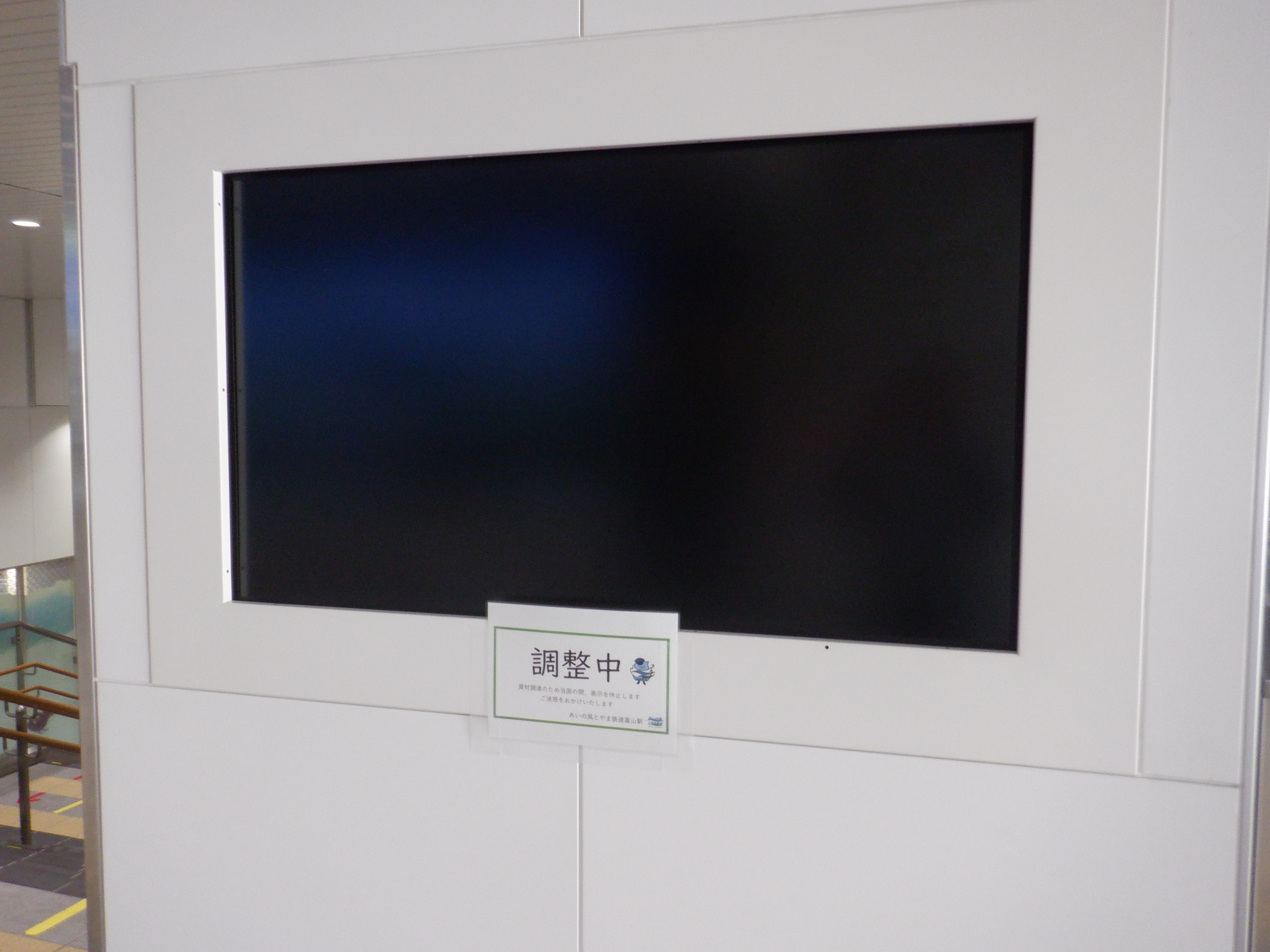 中二階4・5番のりば側のモニターは時間の経過で左側が緑色になってそして急に戻る、ということが繰り返される症状になりました。
