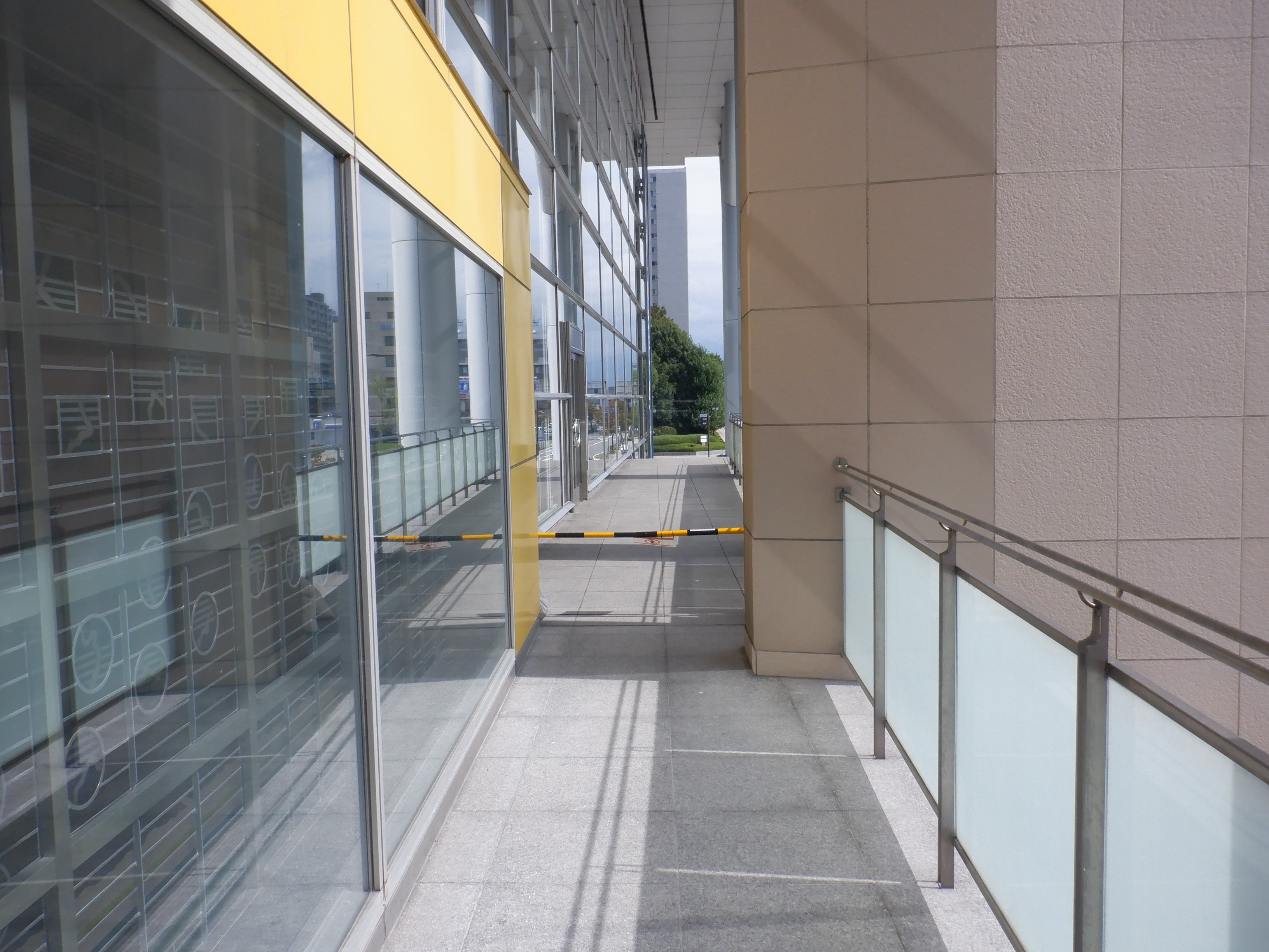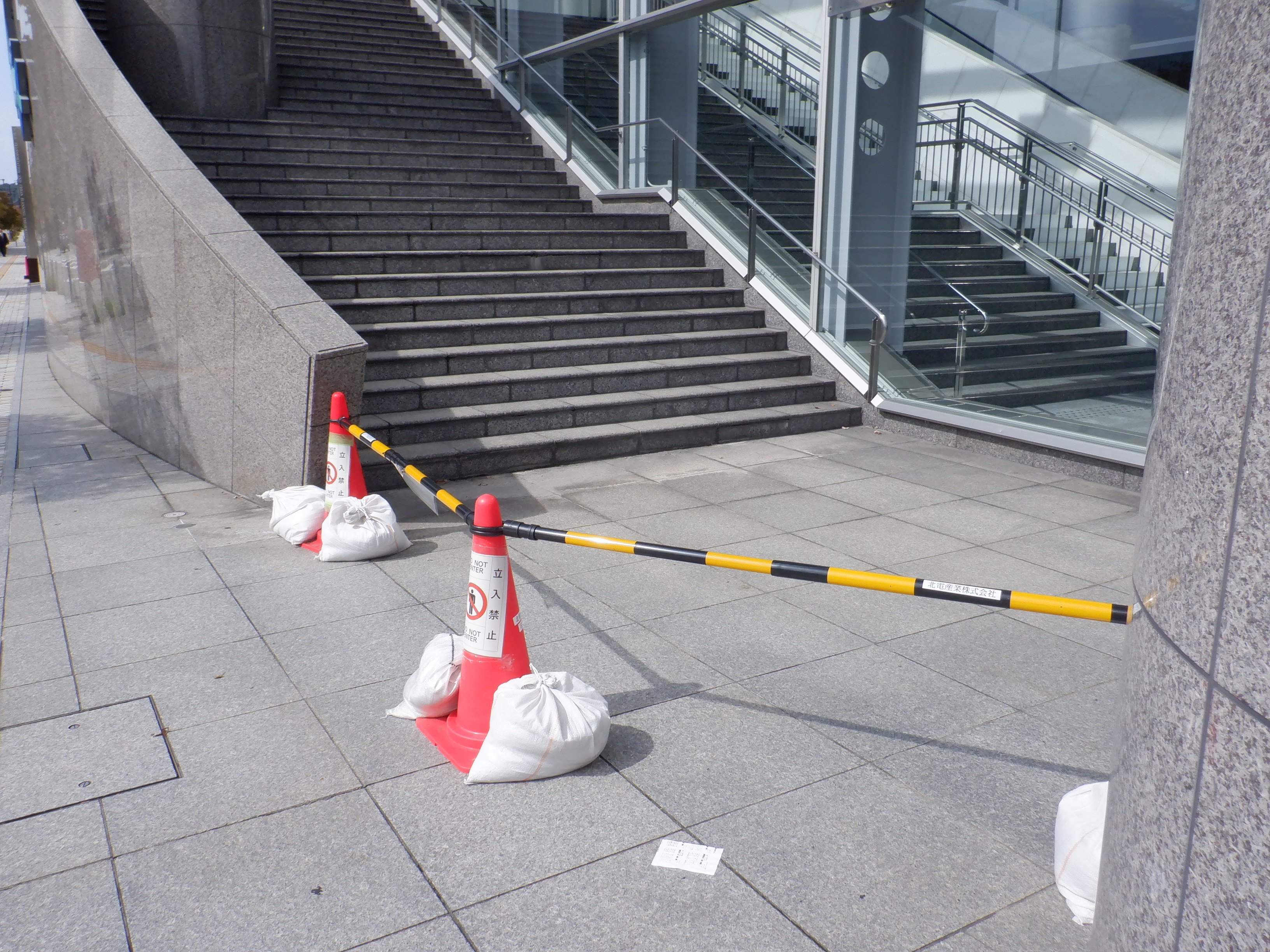 オーバードホールの建物の横への階段は工事中のため上がって行くことができません。