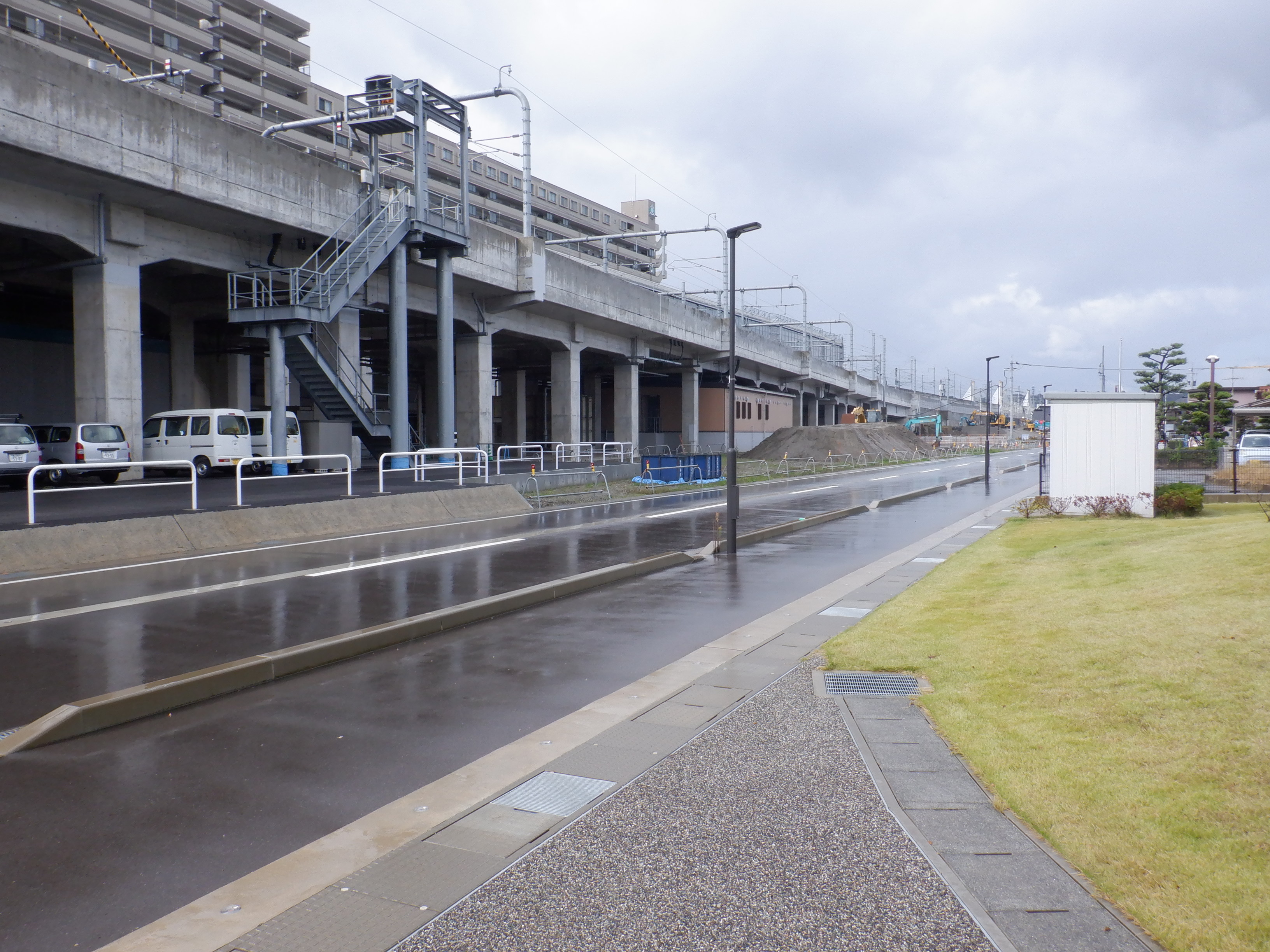 北口の用途保留の土地は、暫定的に「ごっこぱーく」が作られることになり、建設が始まりました。今回岐阜方面からの帰りで「ひだ」で富山駅に入っており、夕方の時間帯となりました。