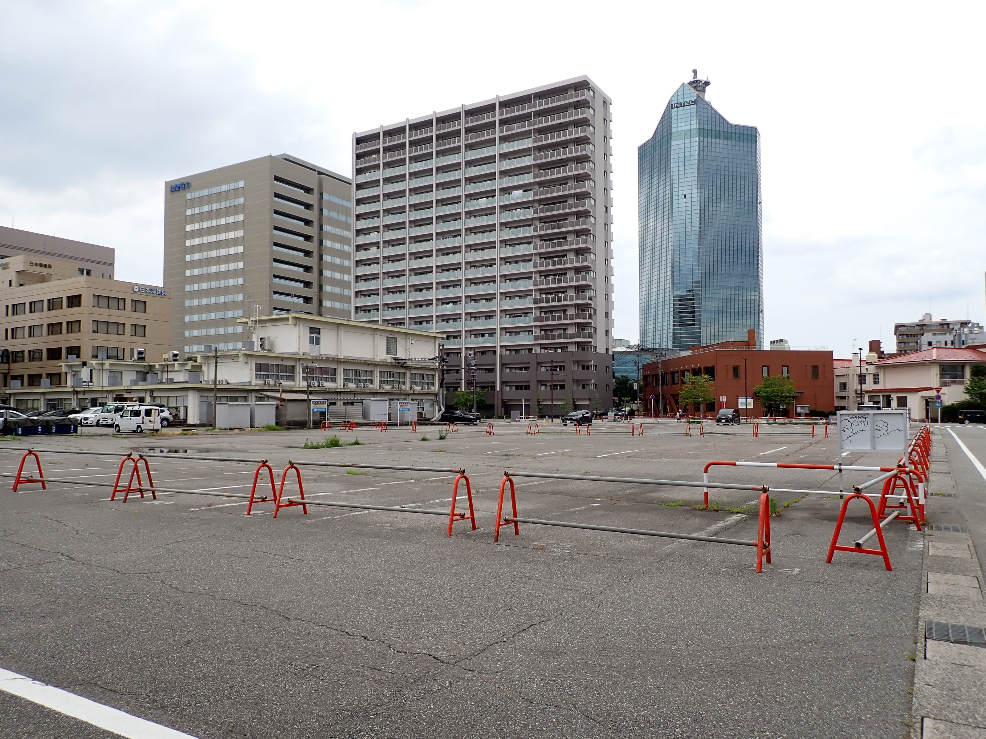 この先、北陸銀行のビルの建設が始まる駐車場。