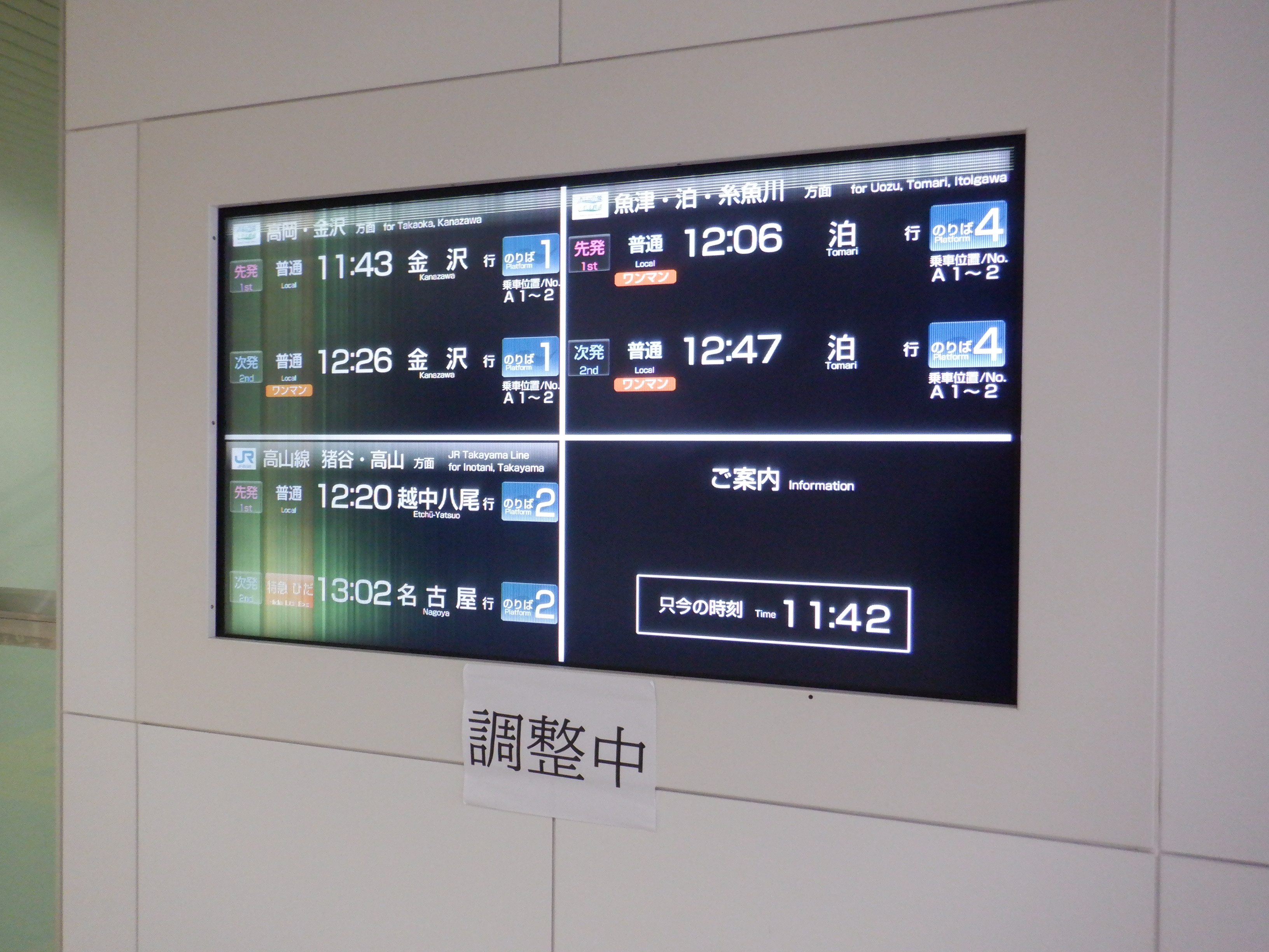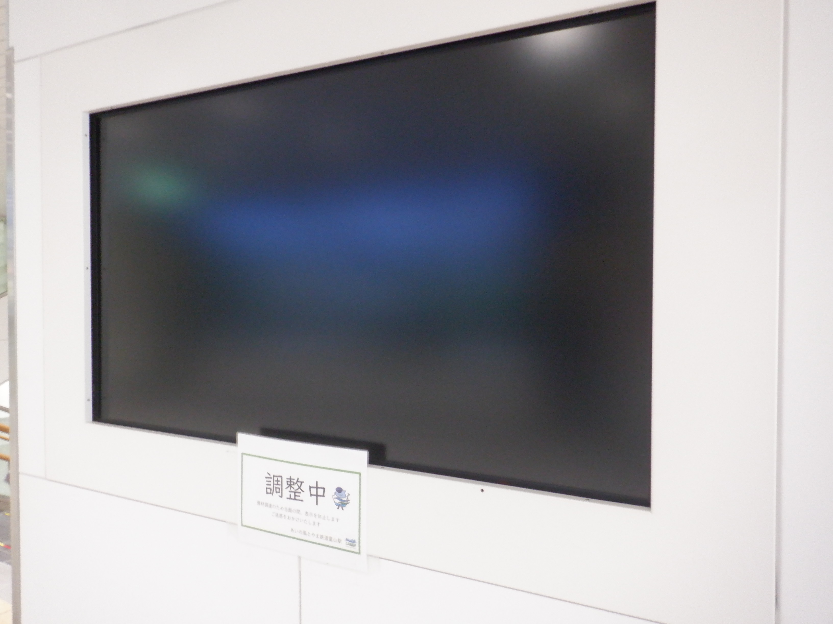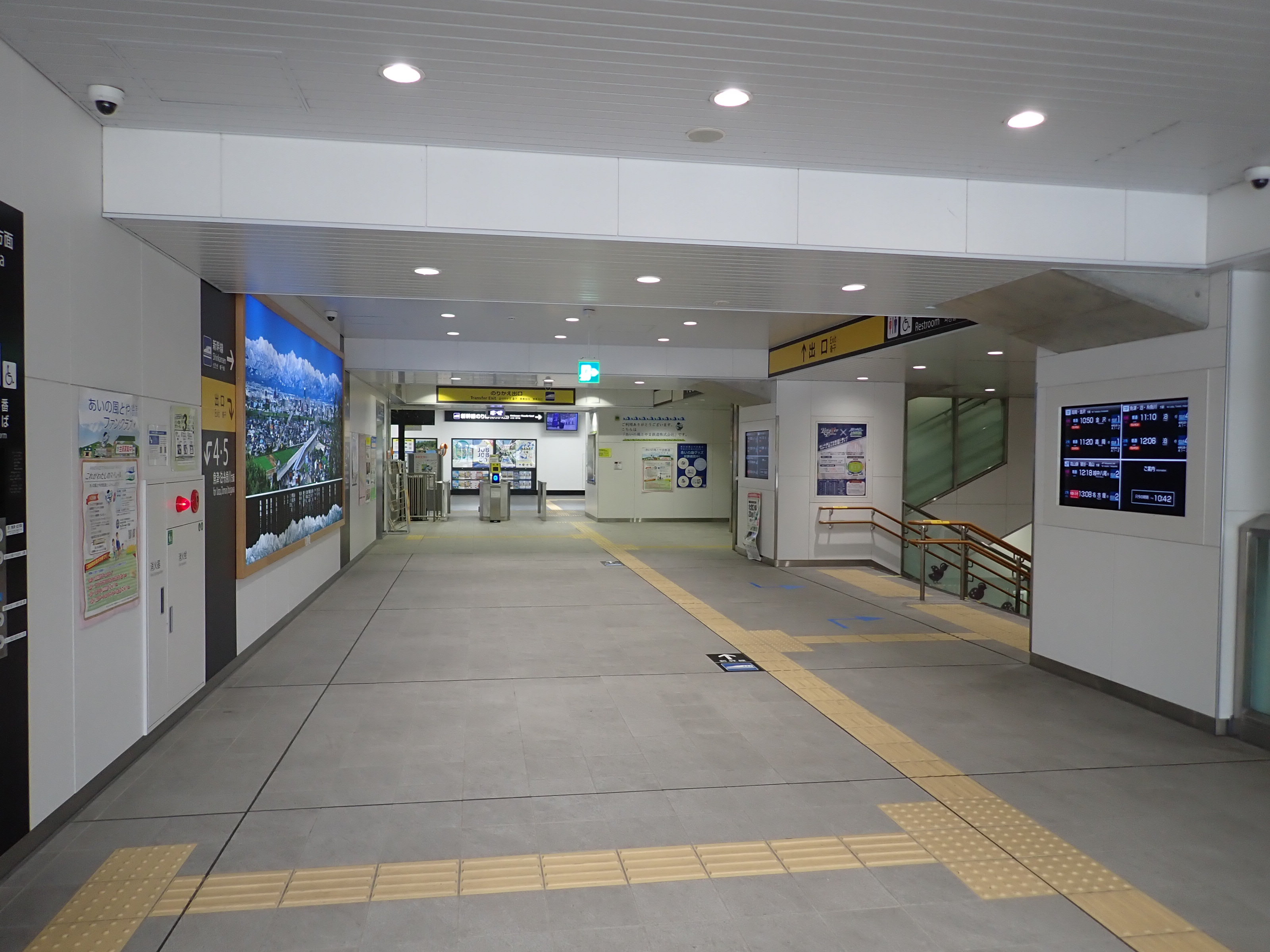 改札口のところの案内。「あいの風とやま鉄道株式会社」の部分は、以前は駅名標や車両同様、山側が緑色でしたが、今回は両側水色になっています。