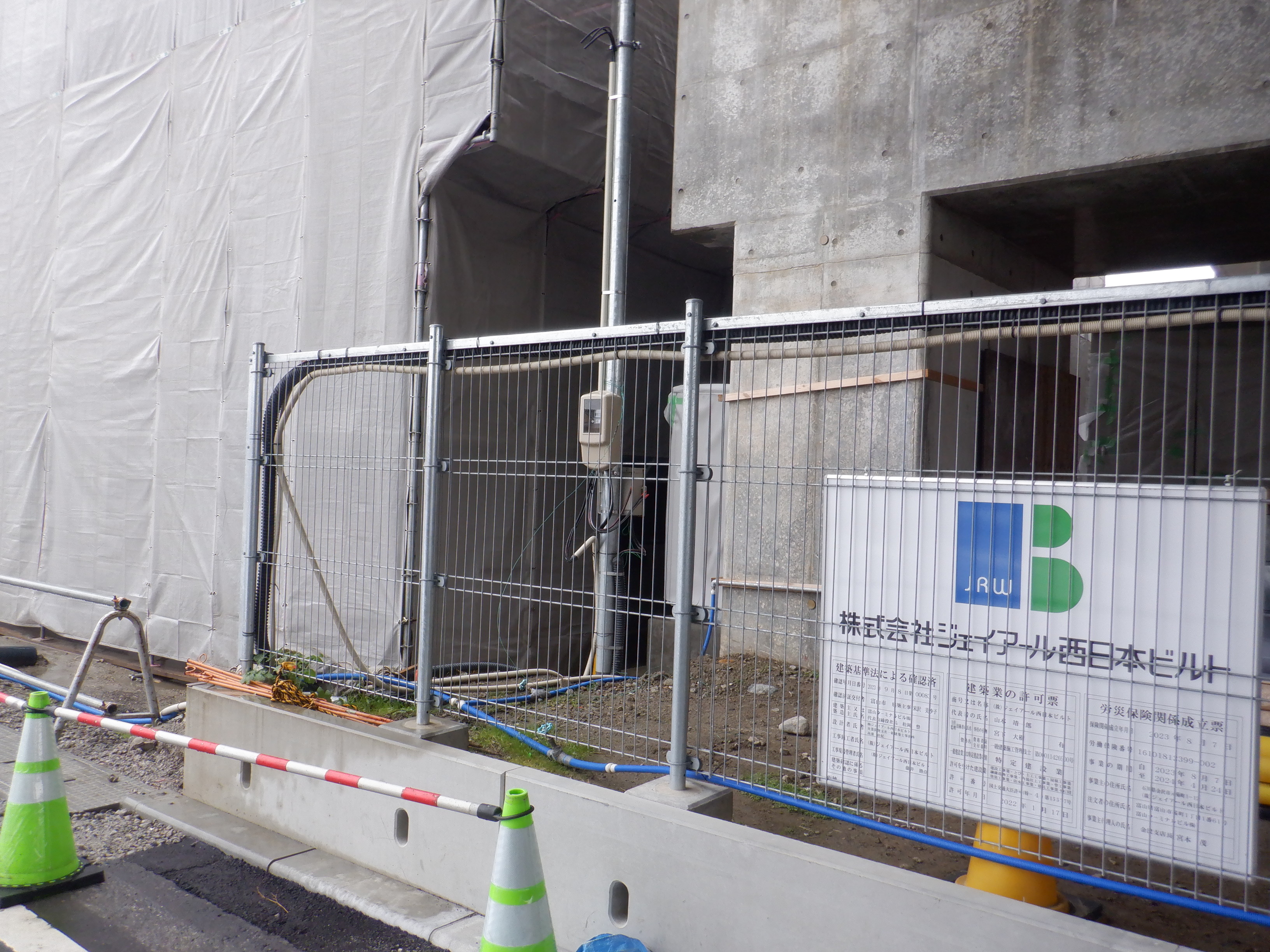 商業施設(牛島パークウエスト)建設中の様子。足場が取れ、外壁が見えていました。ロゴも描かれています。