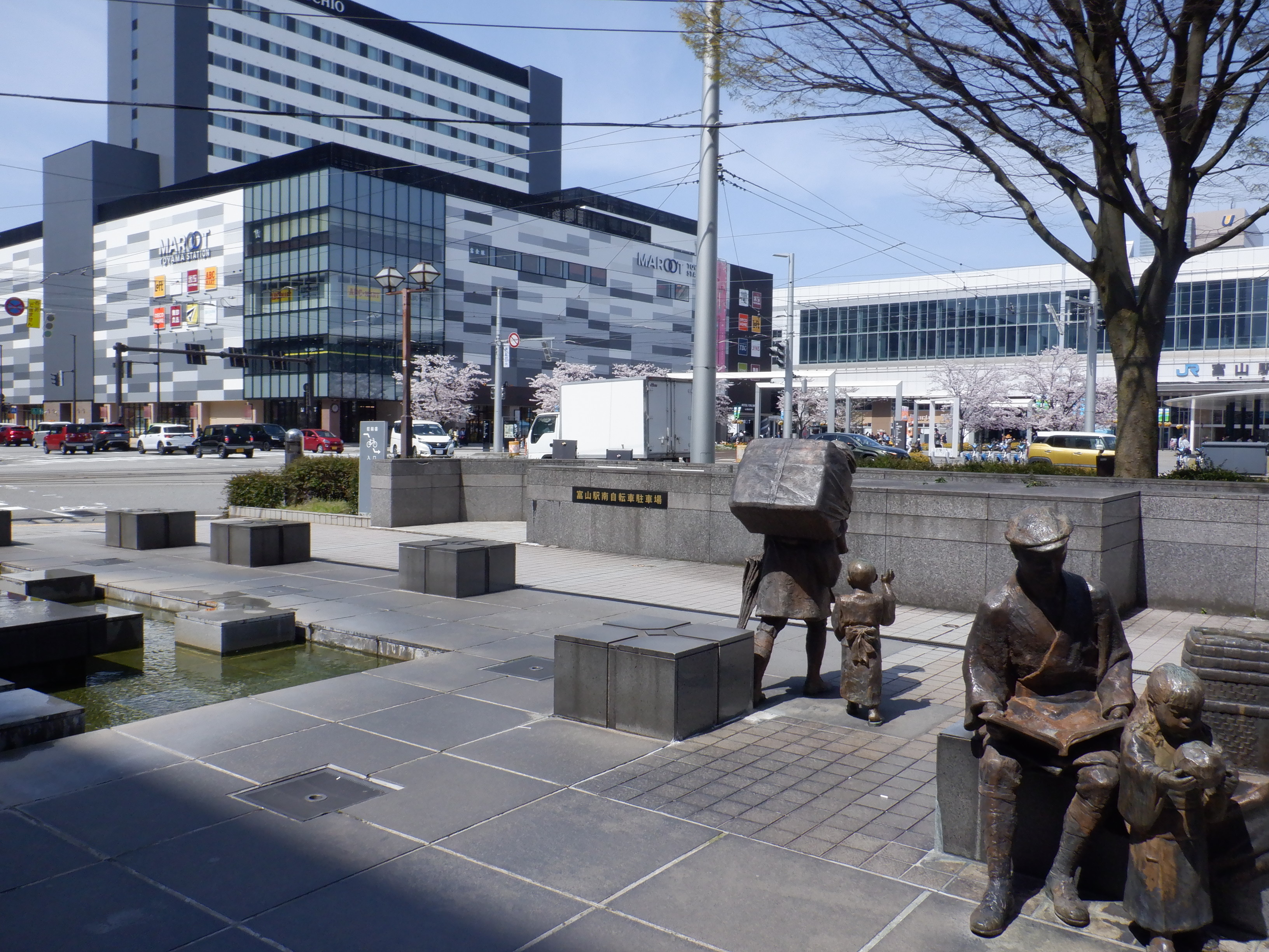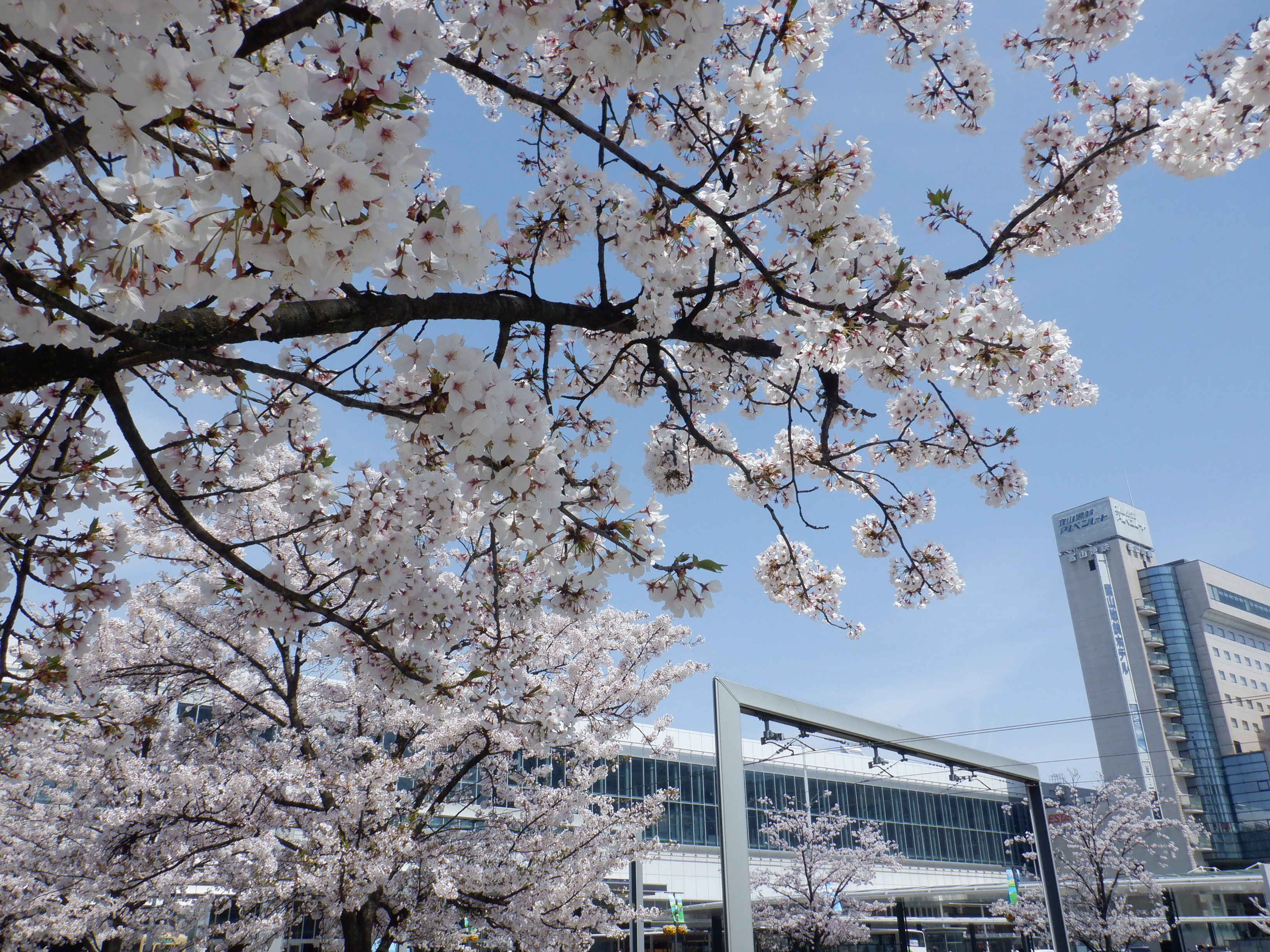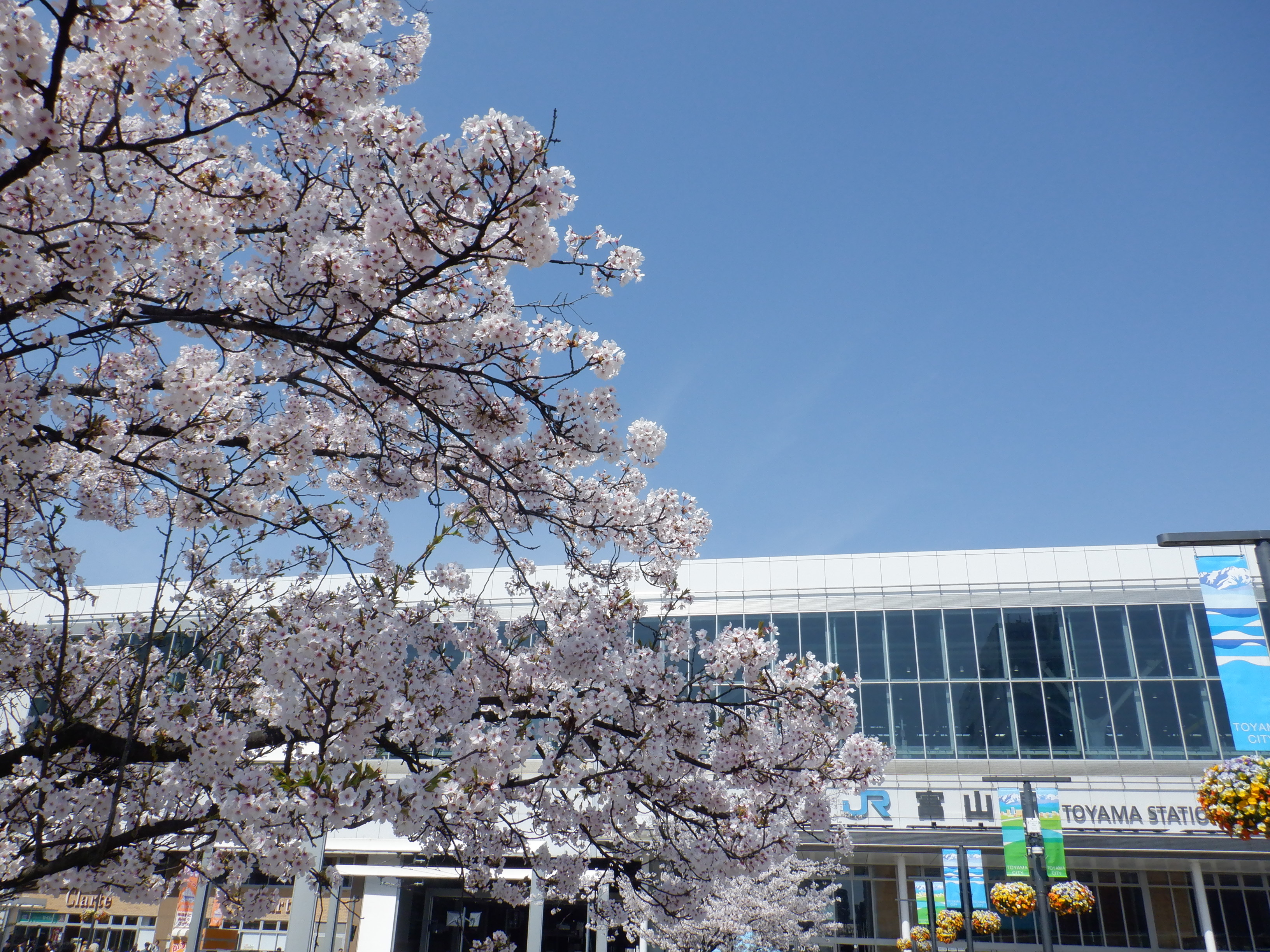 桜が咲いた南口の様子。